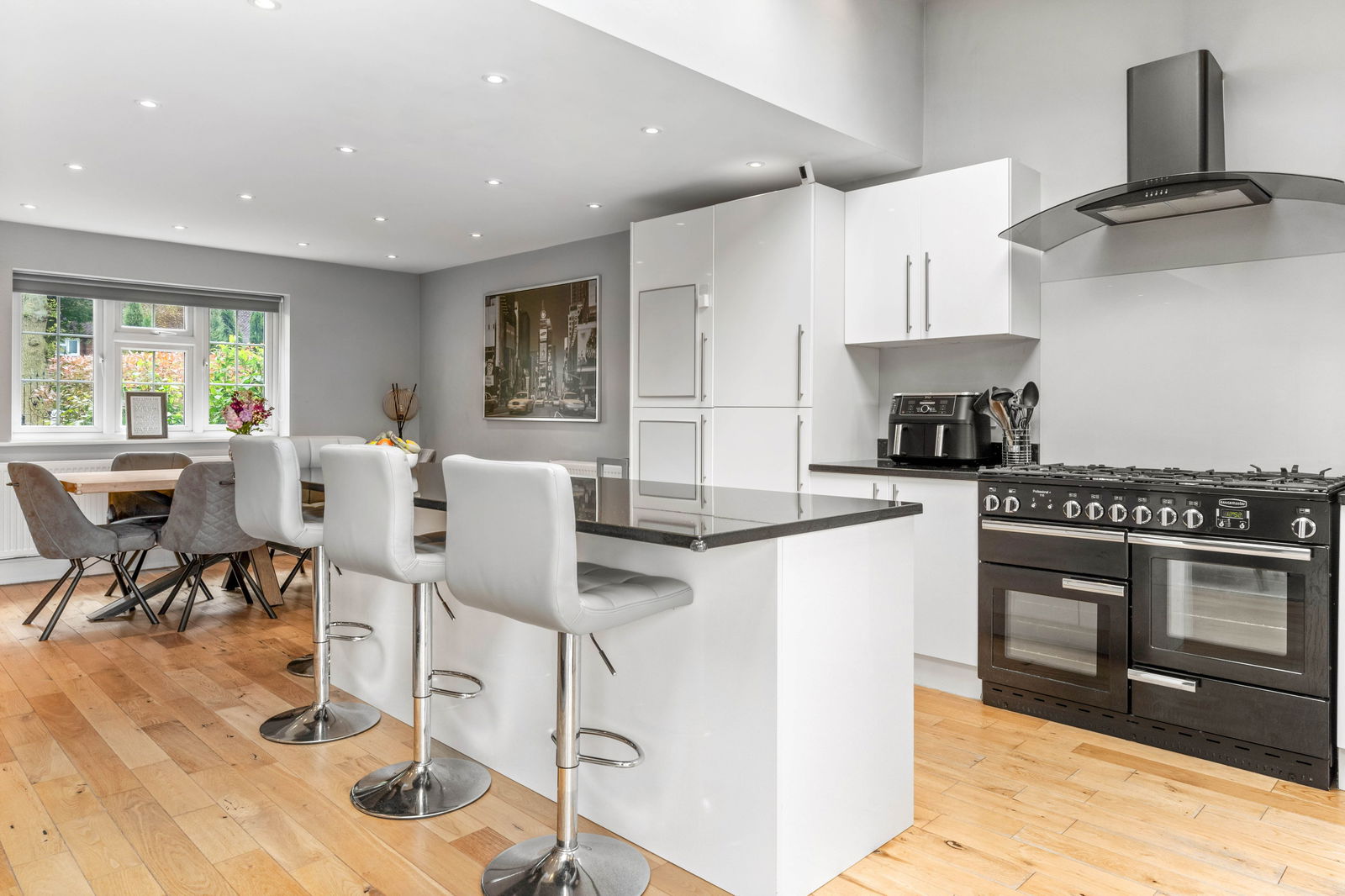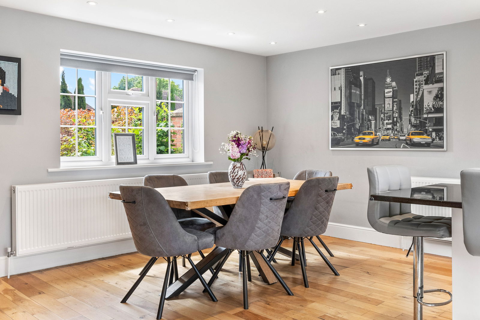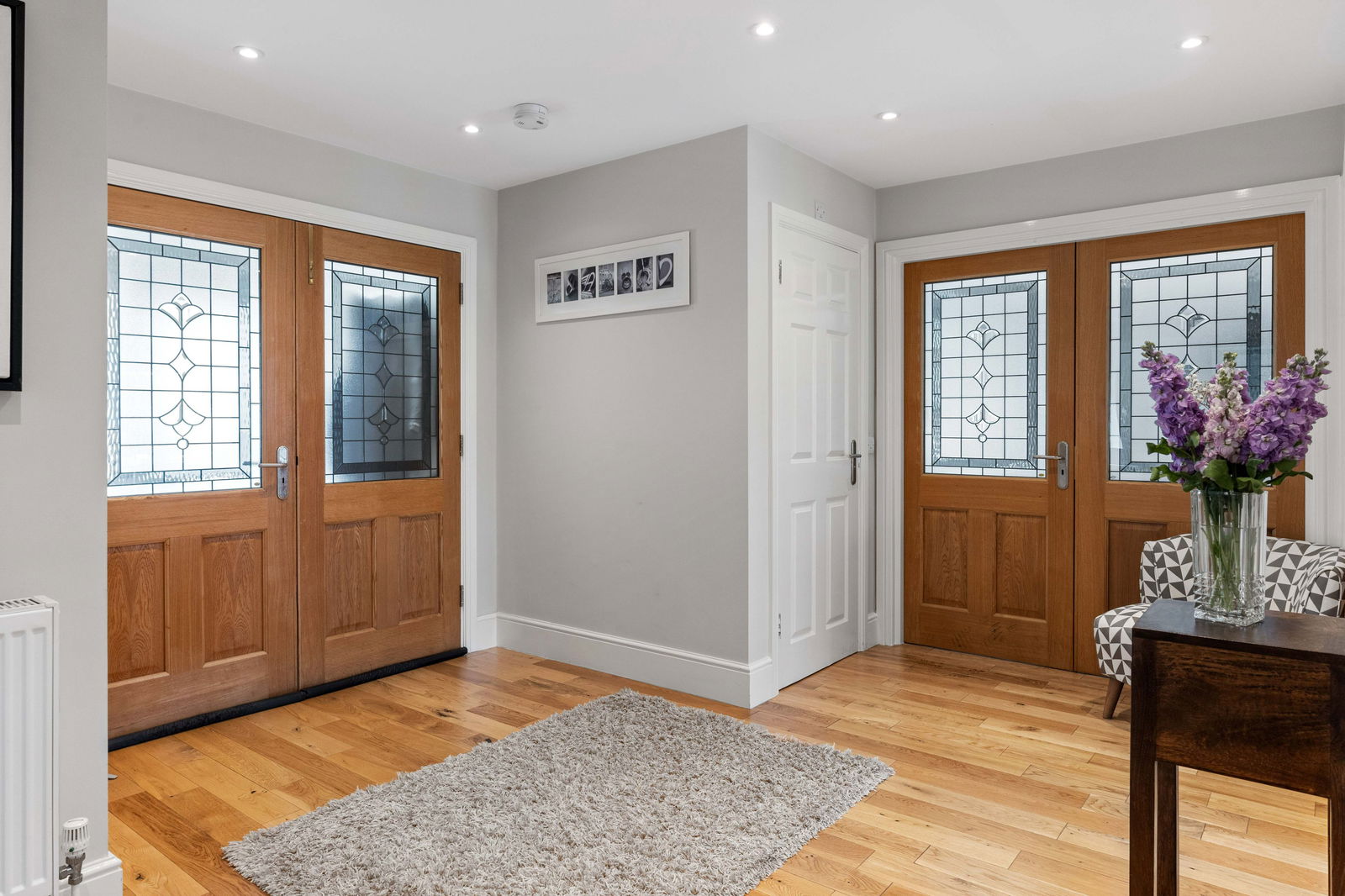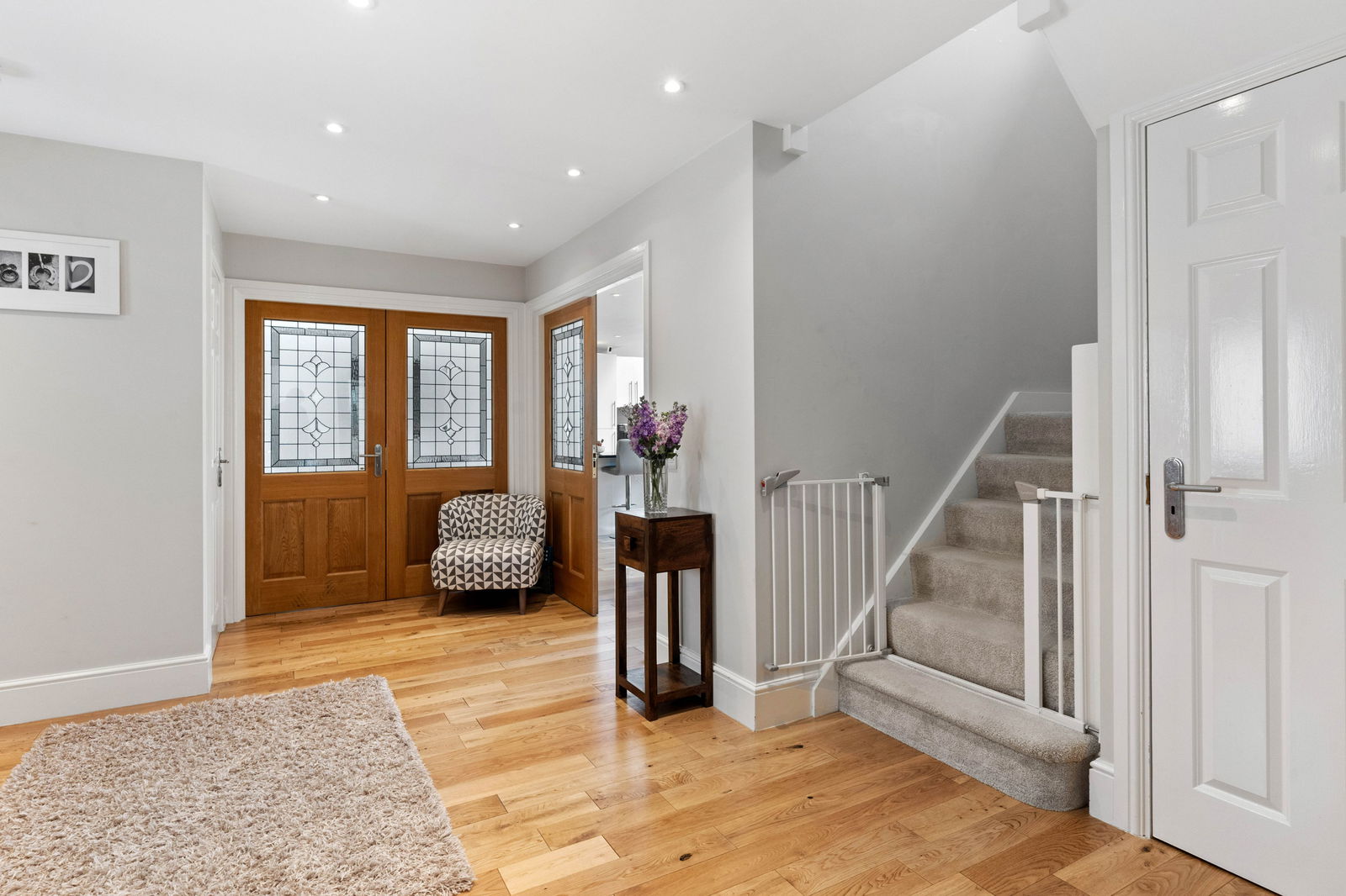 Into a spacious, light, and airy hallway with stunning wooden flooring throughout the ground floor and feature doors leading you through the ground floor accommodation. A modern, open plan kitchen dining area with family room and doors straight out to the garden. This is a great entertaining space, connecting all the family and making it the heart of the home. The kitchen is light and contemporary