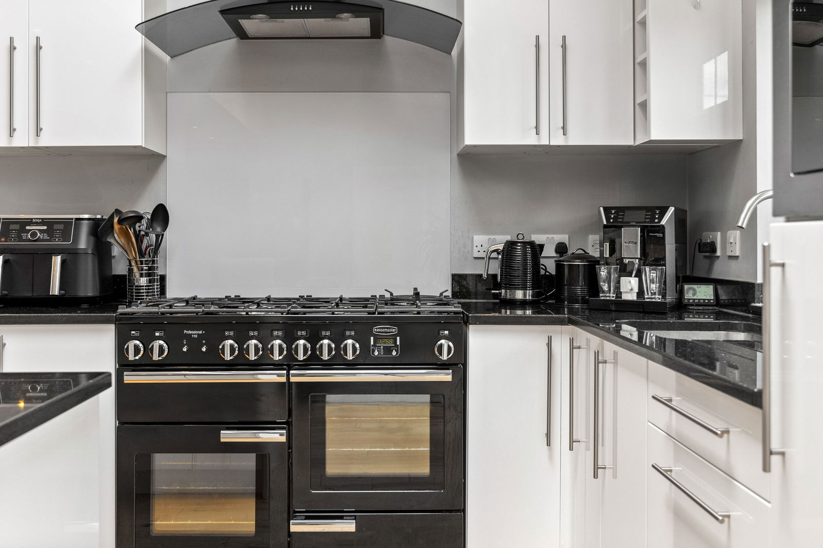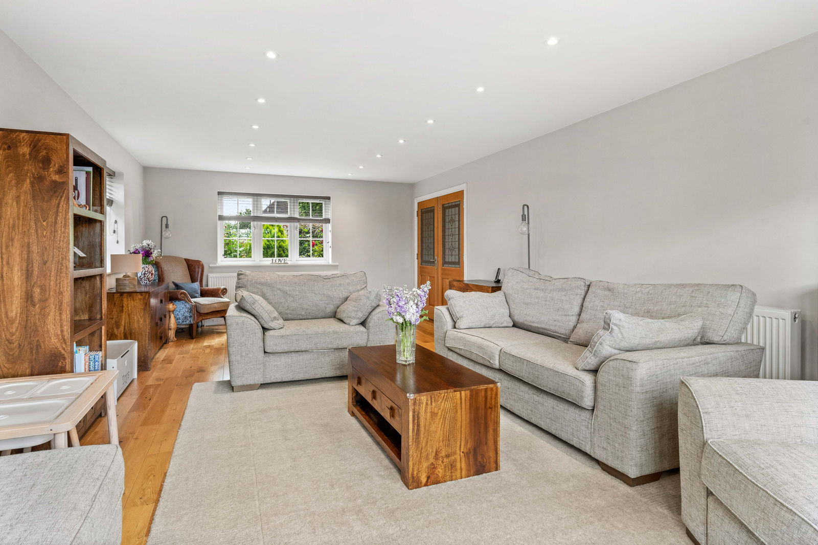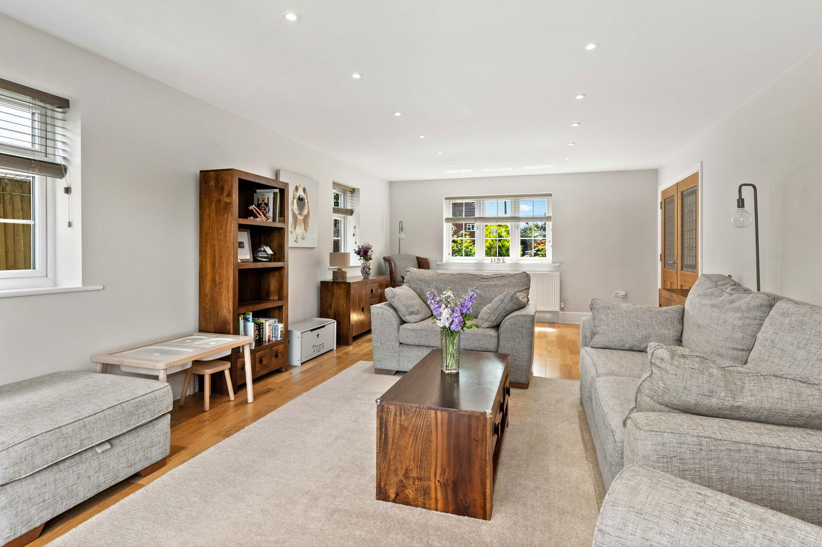 with various built-in appliances and rangemaster oven. A great dining area with a family sitting area so all the family can be in one place. There is a separate utility room just off the kitchen and cloakroom off the hallway. The living room is a generous size with dual aspect windows and French doors leading out to the garden. On the first floor a stunning master bedroom with dual aspect windows, built in