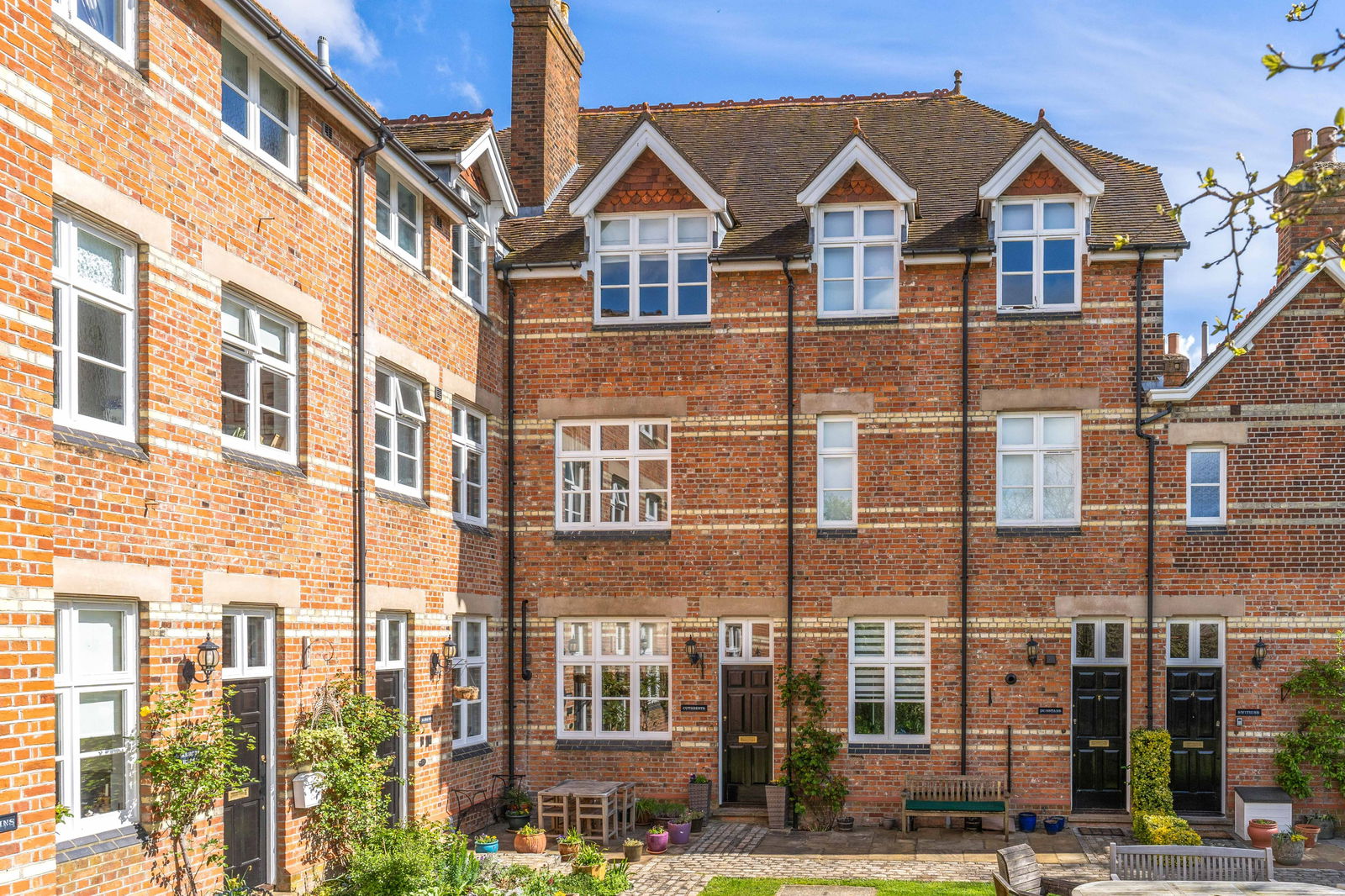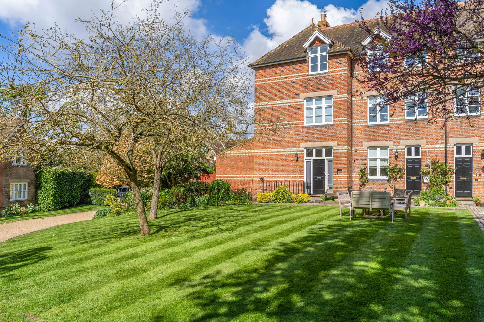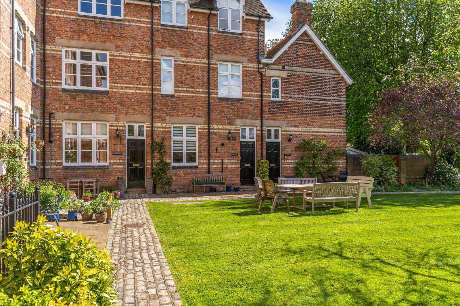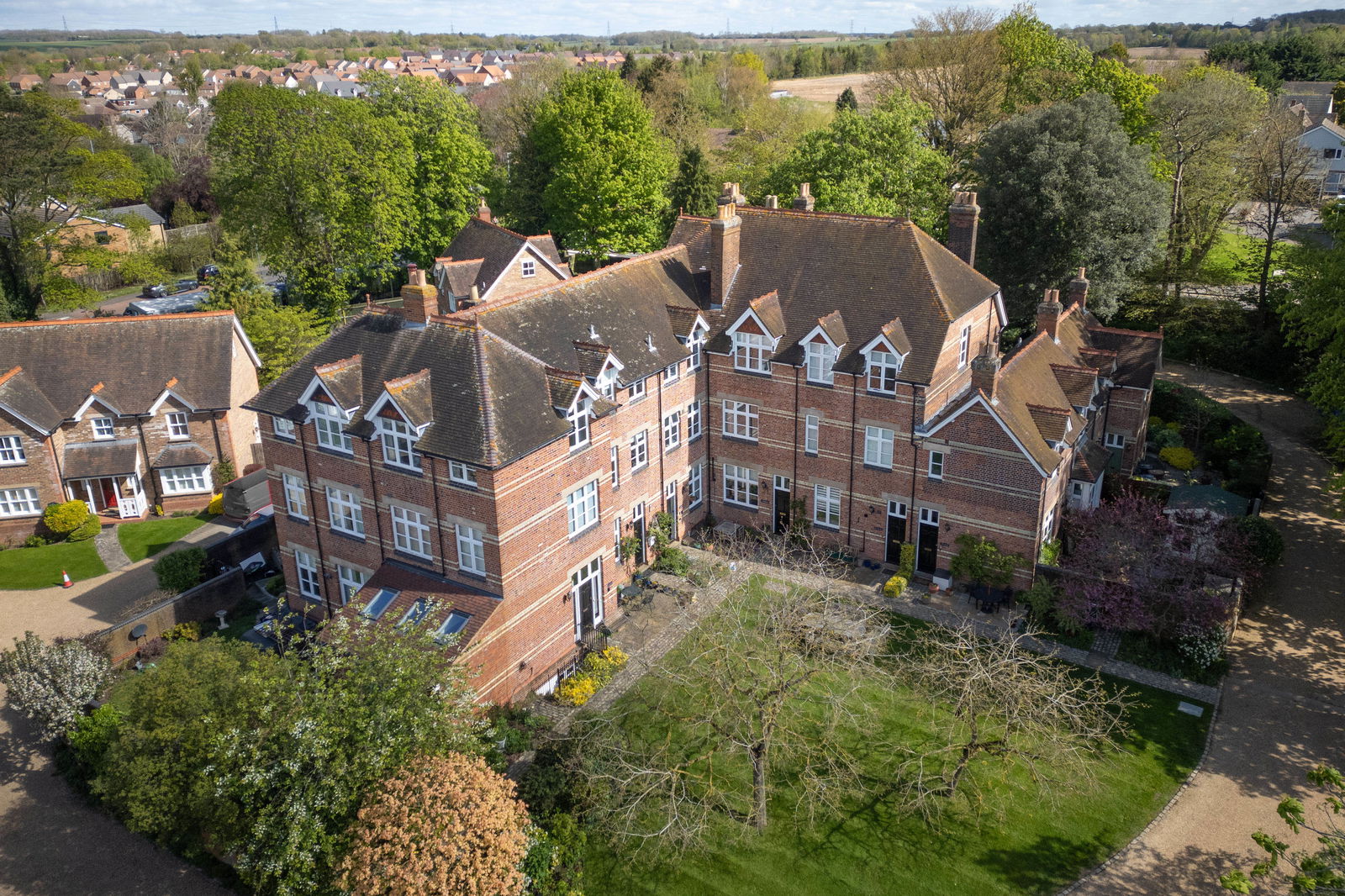 A stunning four-bedroom, Victorian town house, originally built in 1878 as a grammar school and converted in 1996 by Grange builders to create a private secluded development situated on the outskirts of Buntingford. Situated in a private road, surrounded by well-maintained grounds with plenty of visitor parking for guests, Cuthberts has two allocated parking spaces. This delightful home offers approximately 1414sq.ft or accommodation and is set over three levels with high ceilings, feature fireplaces and a beautiful sunroom to the rear backing onto a private garden. There is gas central heating and double-glazed windows, EPC band C, council tax band F and no onward chain.