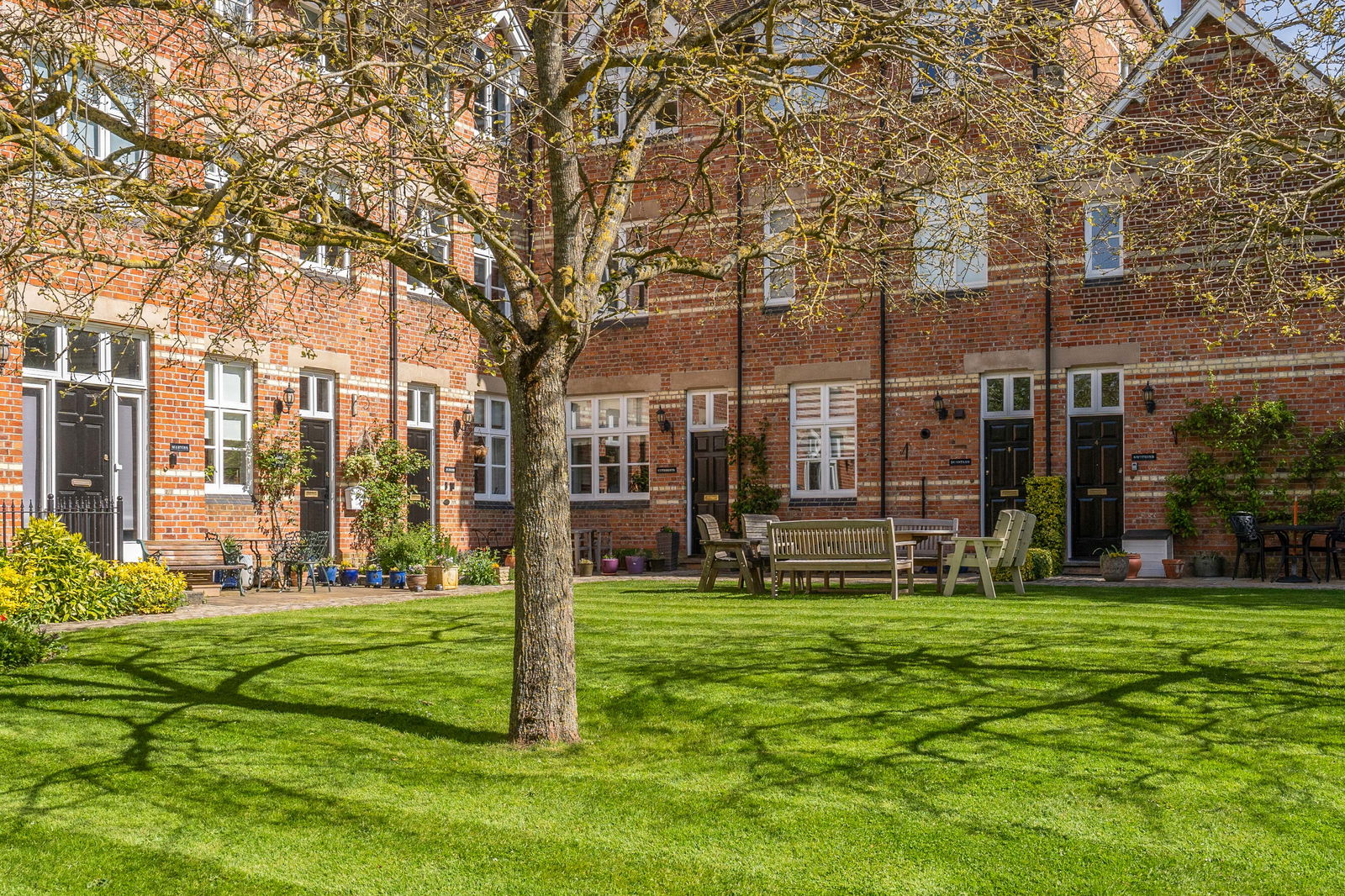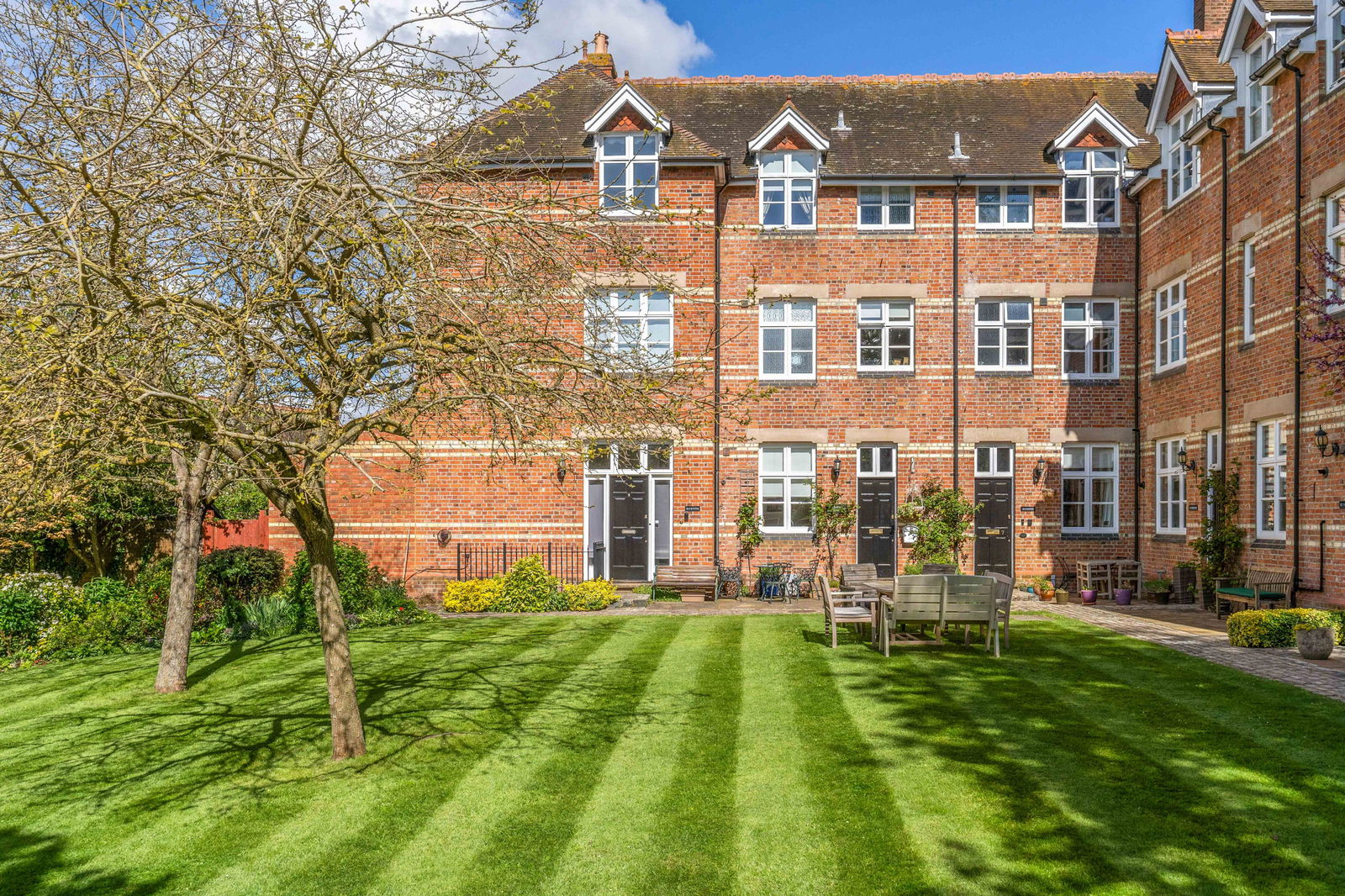 There is a private rear garden with flower and shrub borders and patio area with gate to rear. Set within a private development, the property is surrounded with well-maintained grounds, lawn and various flower borders that are maintained by the estate.