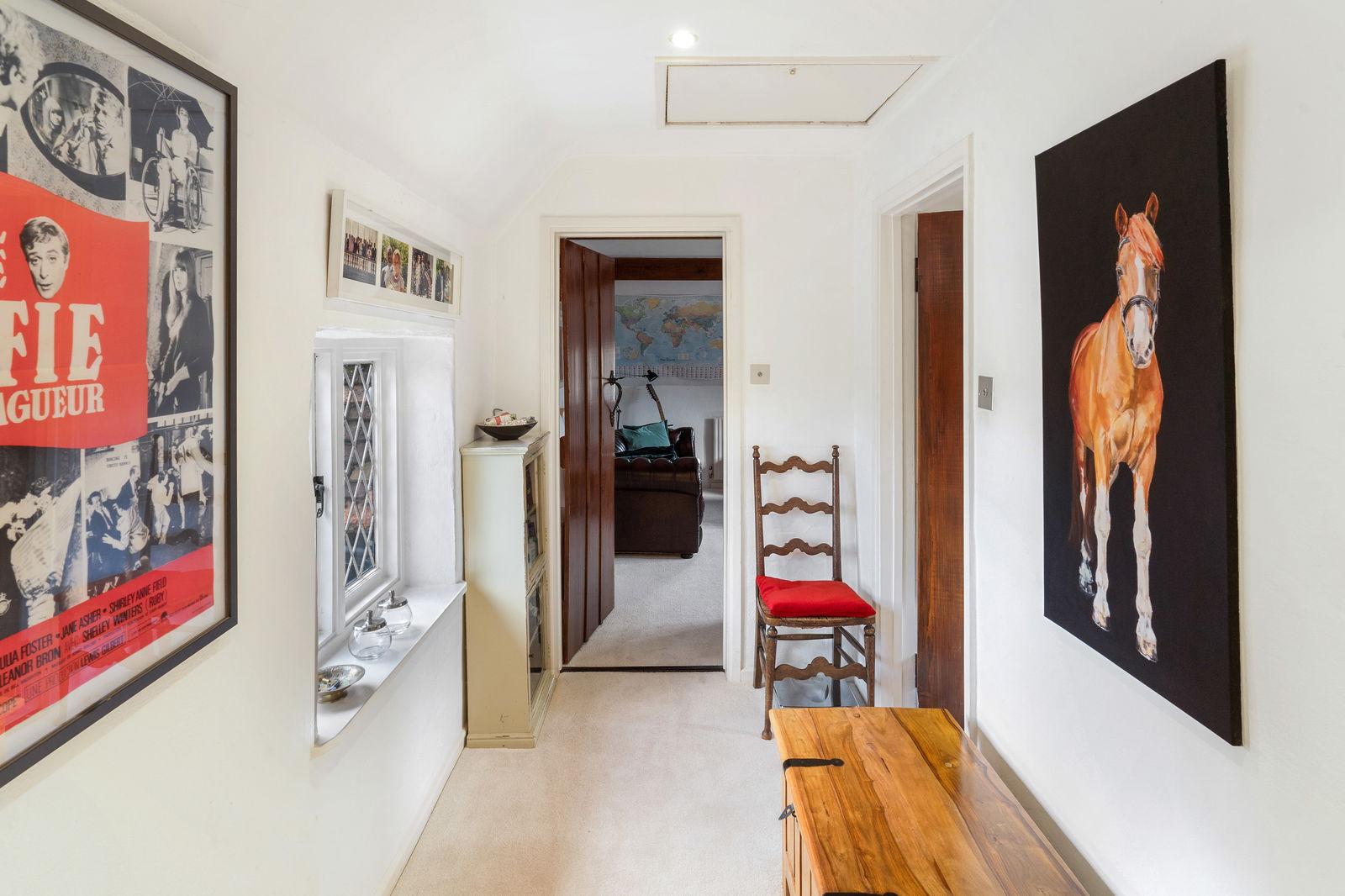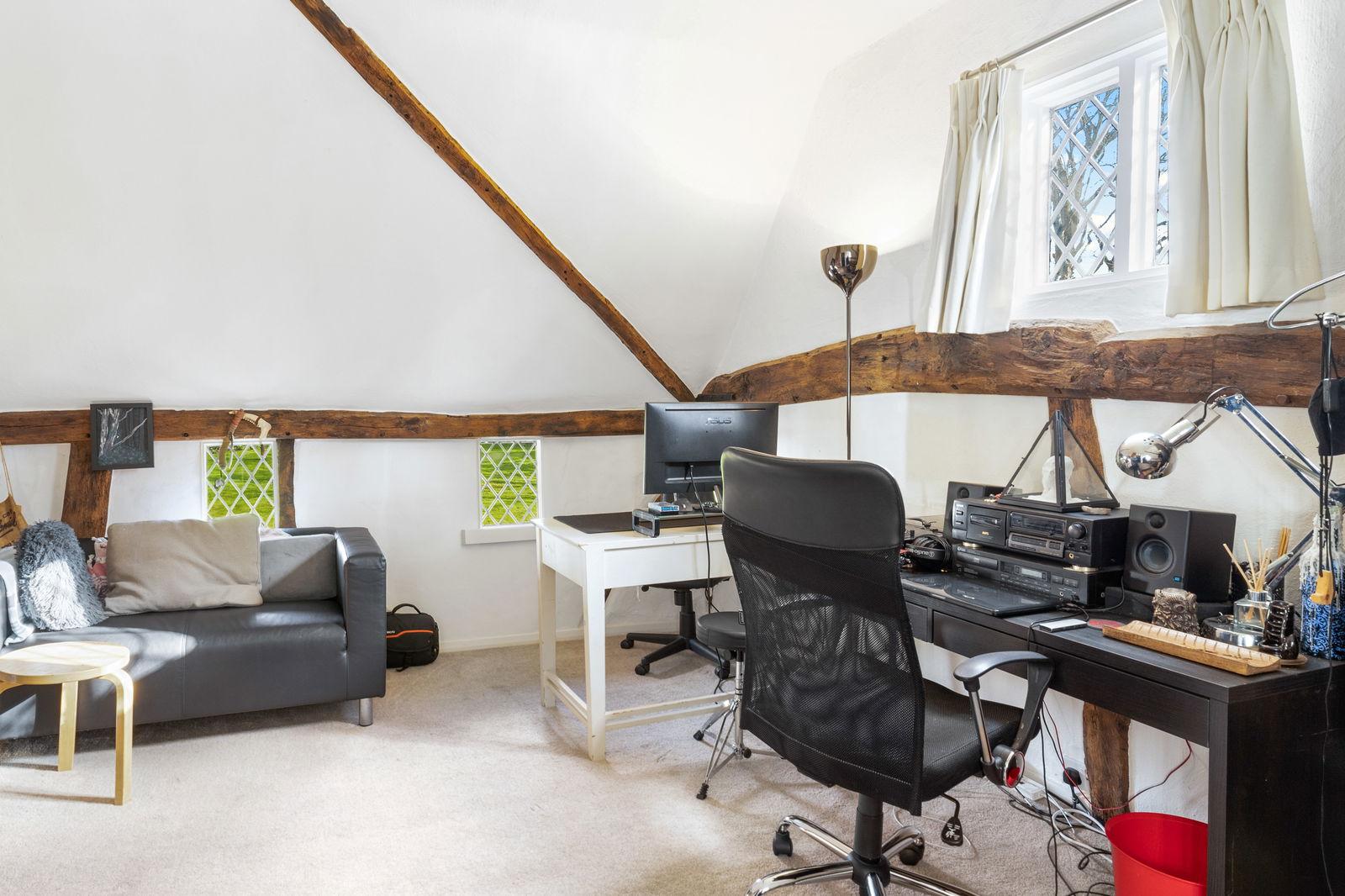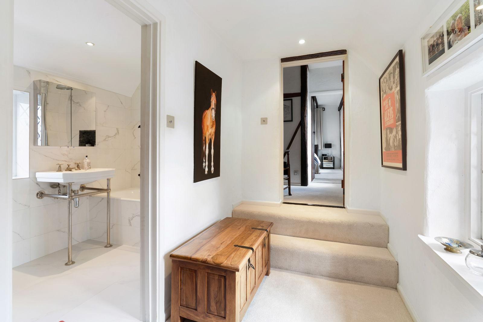 In the late twentieth century the house was cleverly and sympathetically extended to the rear adding a further family room and a study. Both lovely rooms that look out onto the garden with French doors found in the study. There is also an attractive, newly refitted, luxurious shower room. Upstairs is a spacious split level landing off which is the principal bedroom, a guest bedroom and the family bathroom. The principal bedroom is a charming room enjoying a triple aspect with exposed timbers and a good range of fitted wardrobes. The bathroom has been attractively refitted and tiled with a deluge shower over the bath. Ideal to relax and unwind. There is a further double guest bedroom with windows to the front and side.