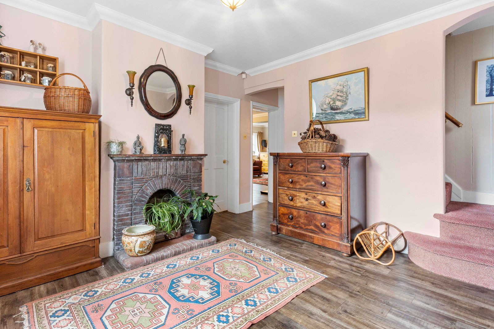 The hallway is a lovely welcoming room with stairs up to the first floor, a brick fireplace and large sash window to the front. Also found at the front of the house is a wonderful light and large reception room, presently used as the dining room but could also be a living room. Being double aspect this is a bright room, full of character with Victorian fireplace with cast iron and tiled surrounds and a square bay window to the front aspect. The living room is a really good size and also benefits from two large windows to the side aspect and a feature fireplace. Adjoining the living room is the garden room, a lovely addition to the house with windows to three aspects and French doors opening onto the the gardens. From here one can sit at anytime of the year and enjoy the garden, the adjoining Heath and the wildlife that ventures in. The hub of the home is the kitchen/breakfast room that has been refitted in recent years and includes granite work surfaces, fitted units and cupboards, sky light window and built-in appliances. The breakfast area enjoys a feature fireplace and there are views to the side and over the garden at the rear. A door leads to the utility room with access to the garden and ground floor cloakroom/WC.