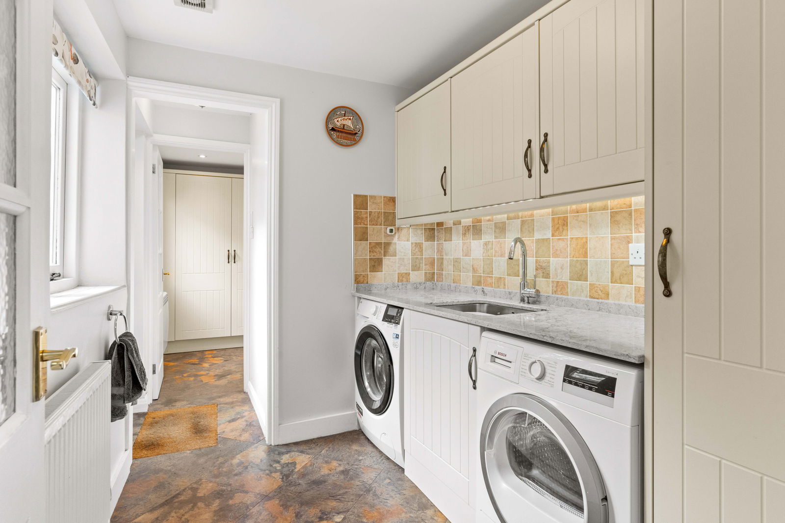 Upstairs one finds a spacious landing and five lovely sized bedrooms, all but one with built in wardrobe/cupboards. The principal bedroom is a beautiful double aspect room with outlook to the front and over the adjoining nature reserve. Off the landing one also finds a separate WC together with the family bathroom that is well fitted and large with bath, wc, basin and a separate shower cubicle.