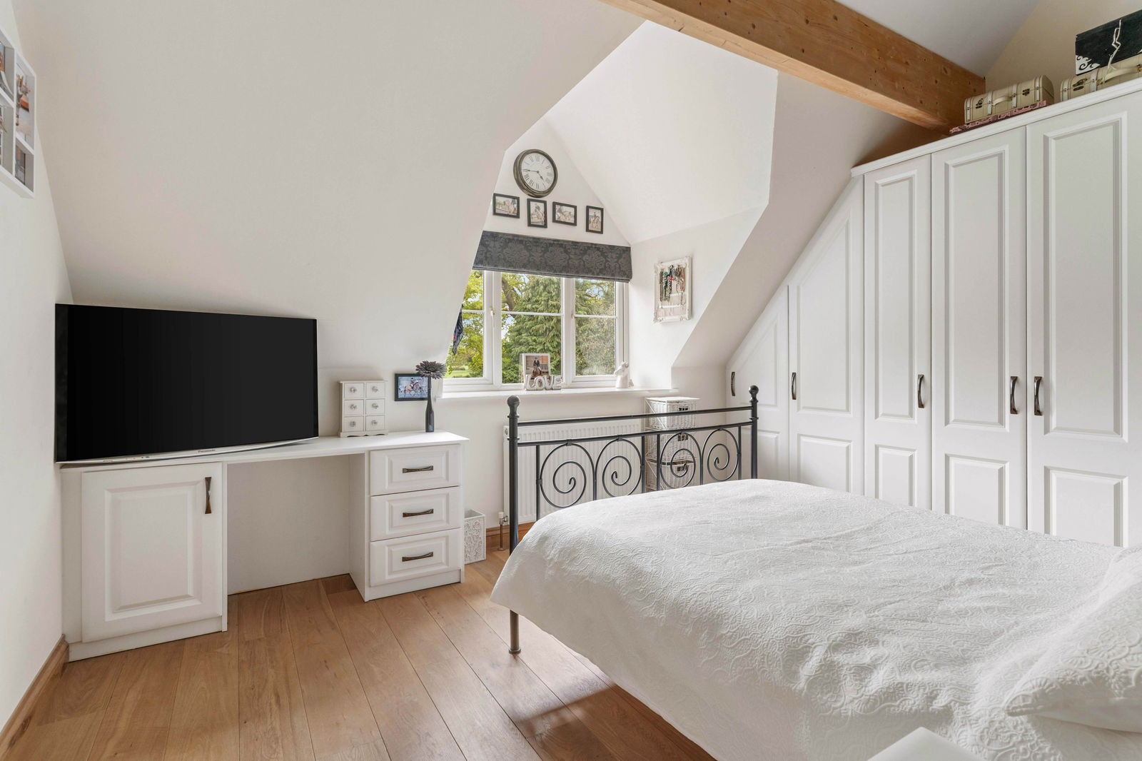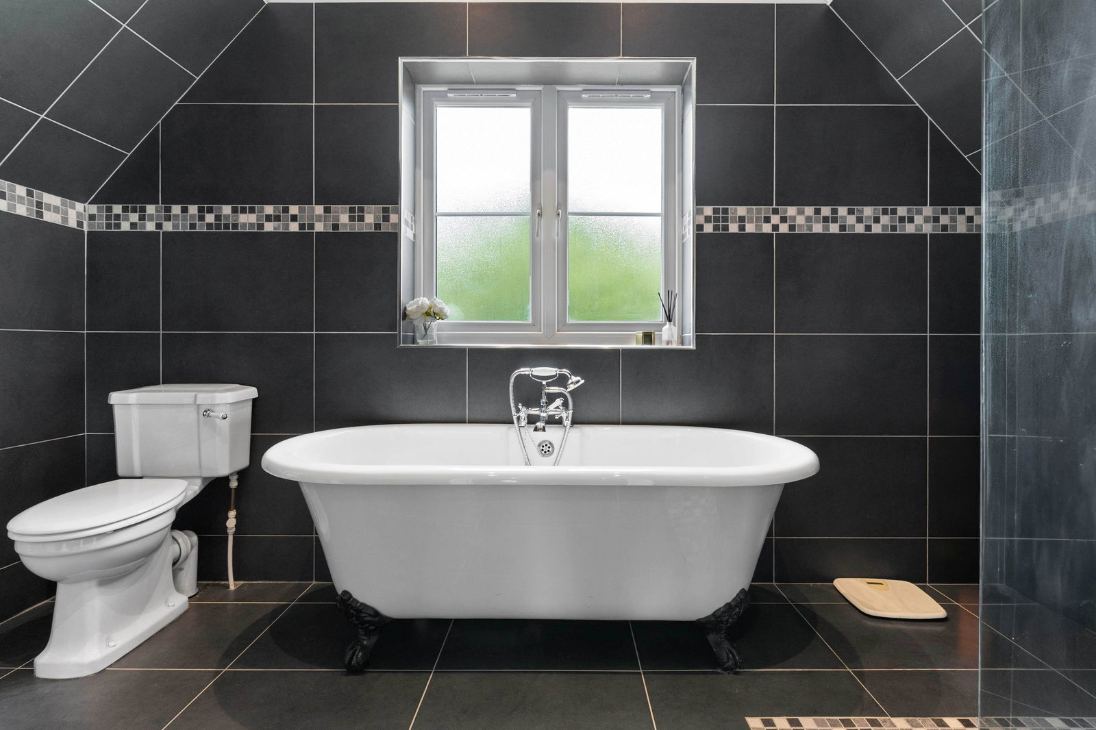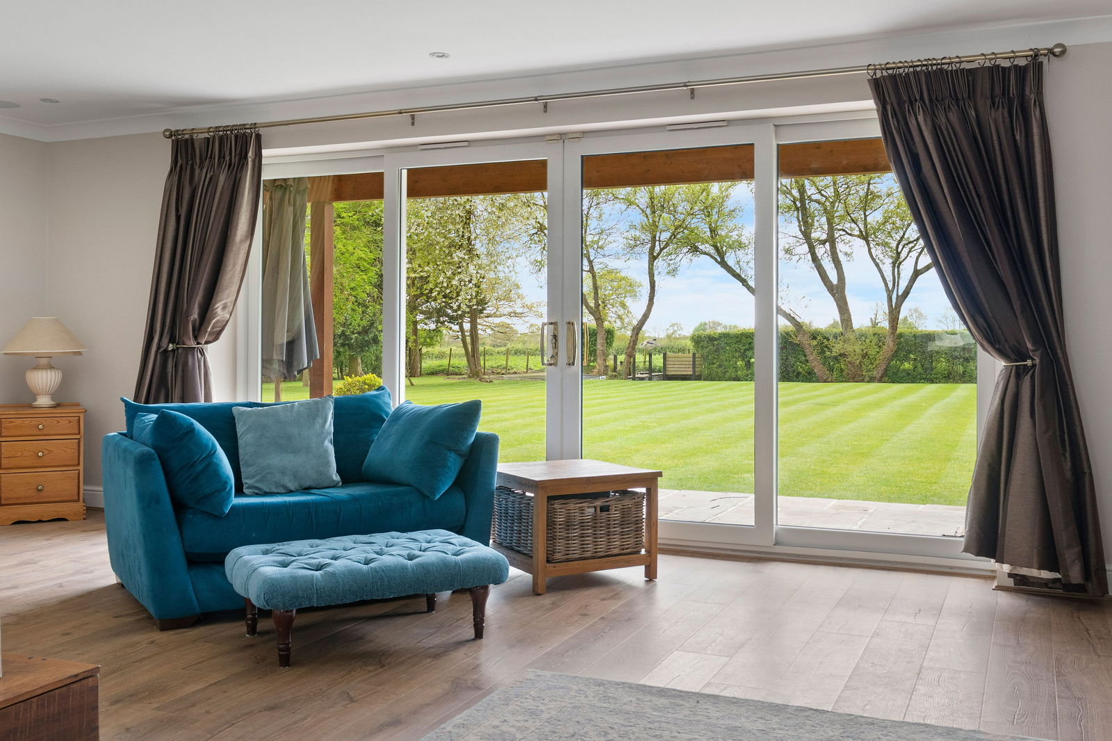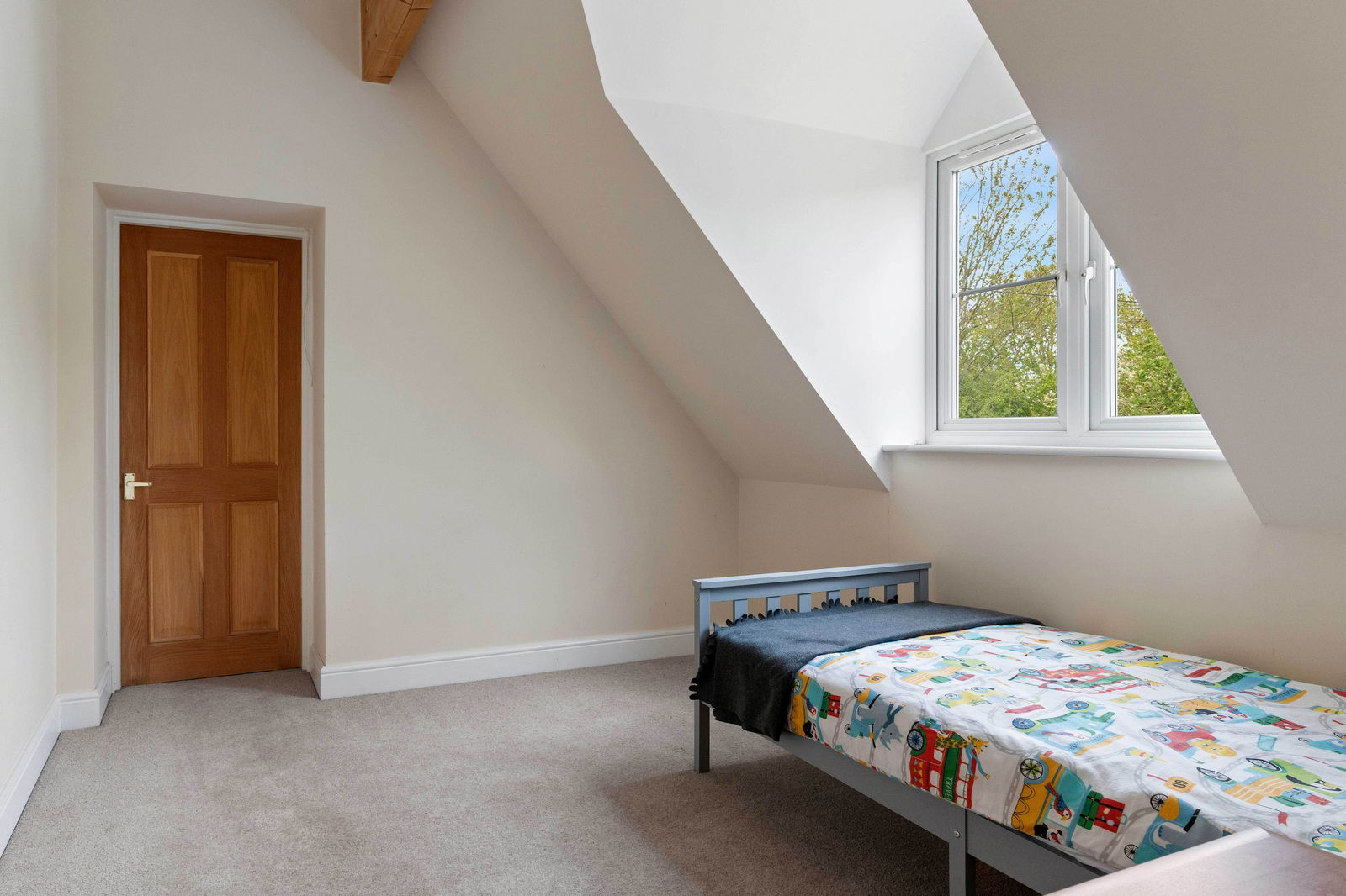 The first floor offers a spacious principal bedroom with vaulted ceilings and exposed beams and French doors with Juliet balcony to maximise the wonderful views of the garden and countryside every morning and evening. There is a large dressing area with plenty of built in wardrobes and a bathroom suit with roll top bath and walk in shower.