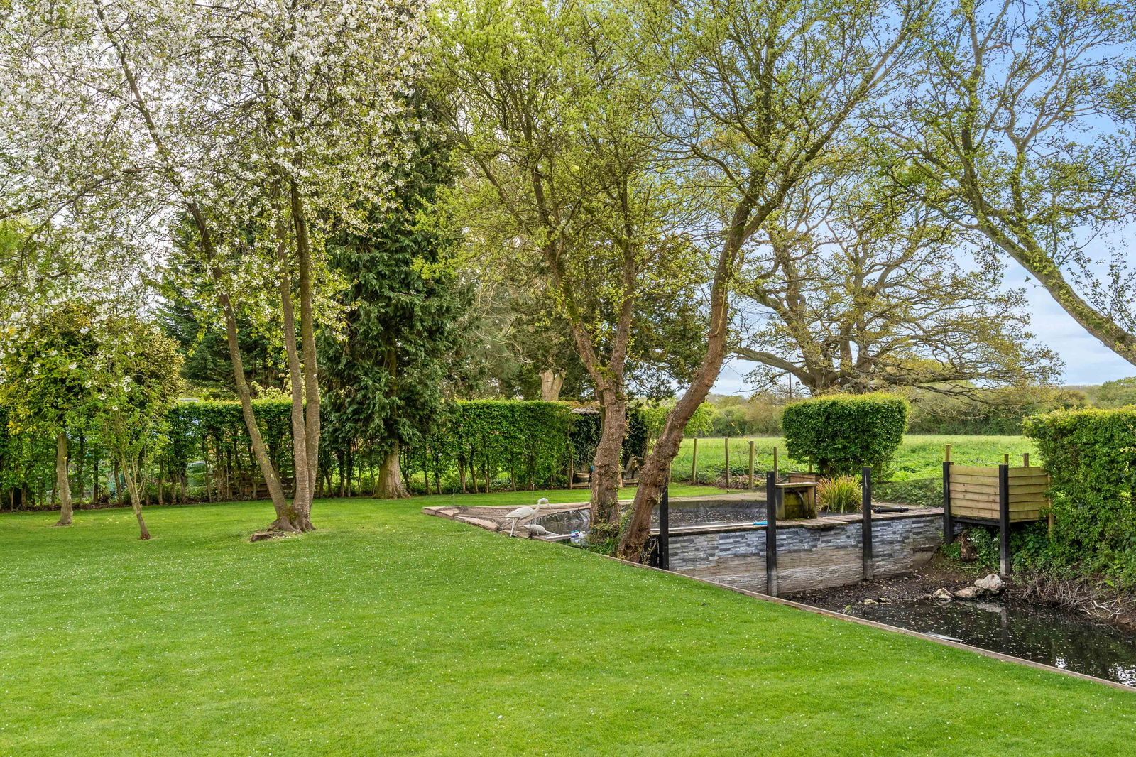 The gardens are just stunning with various mature trees and an immaculate lawn, leading you to the rear of the garden where there is a private moat and often you will see ducks and ducklings enjoying the water, a pond with bridge and water feature complete the relaxing tranquil setting. This is a delightful spot to sit and watch the sunset in the evenings overlooking the countryside or just looking back at this wonderful home and grounds.