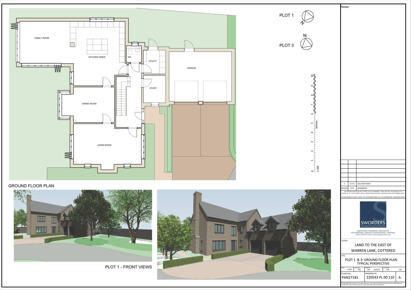 Land for sale with planning permission approved to build four dwellings, full planning information can be found on the East Herts planning site ref 3/22/1830/FUL. The plot is in a most desirable location in Cottered, Buntingford.
