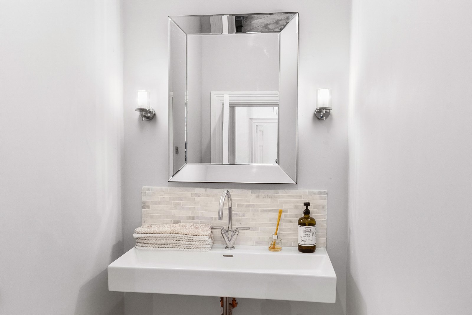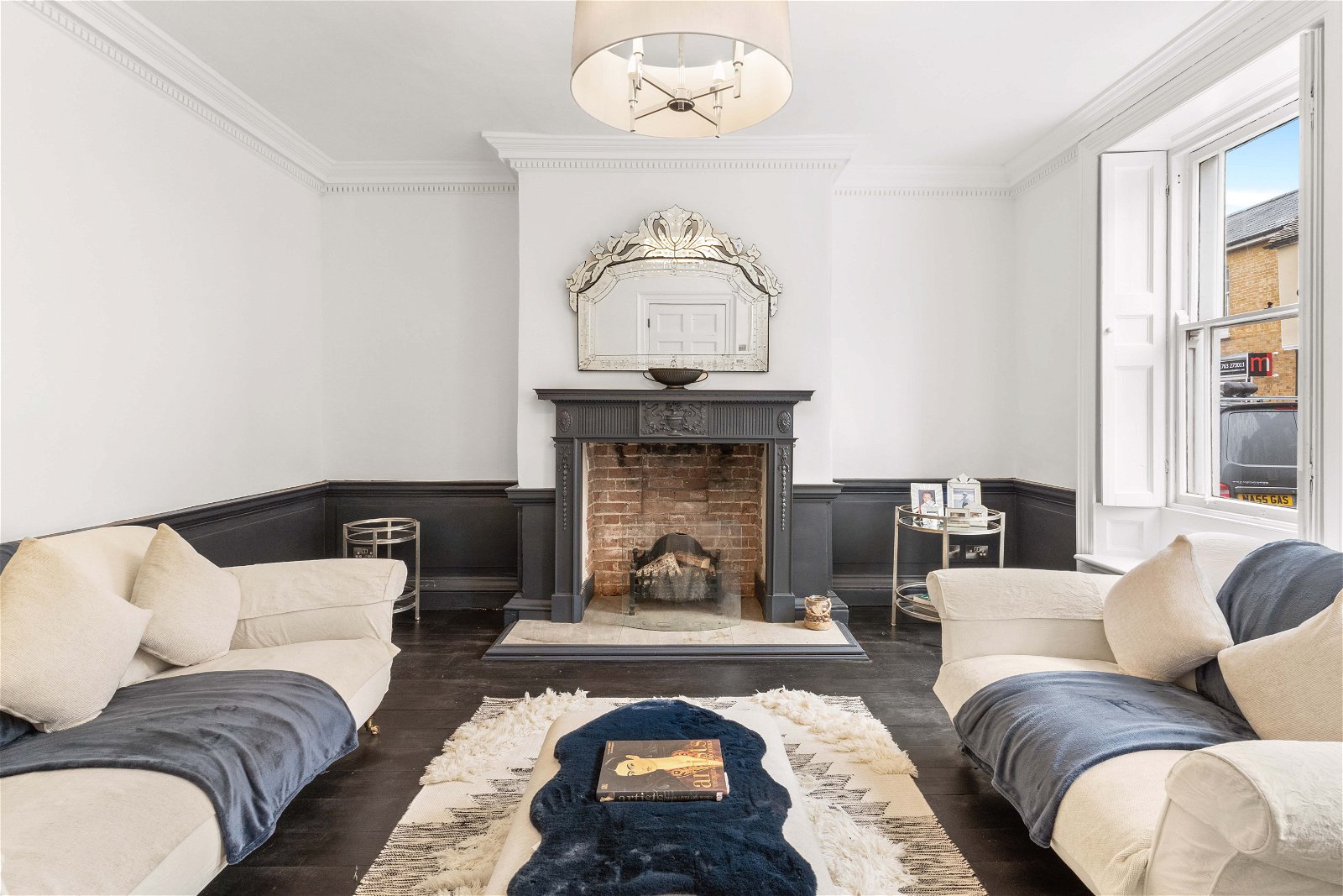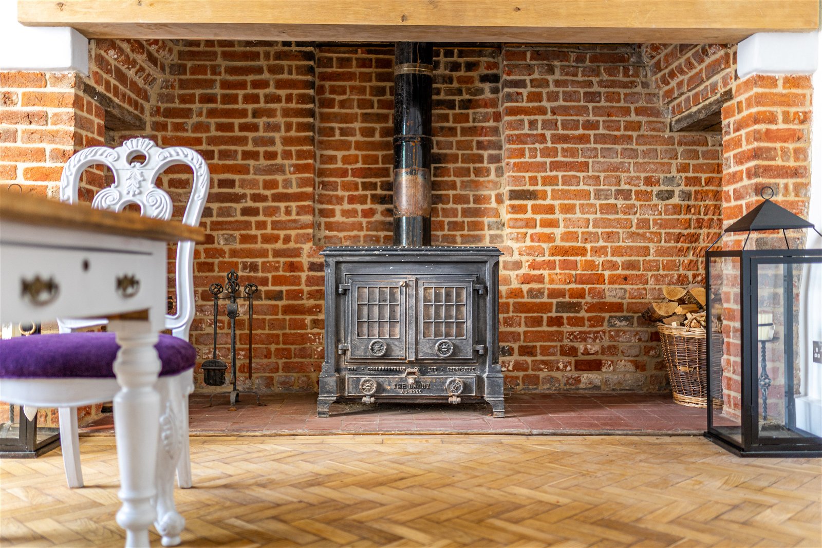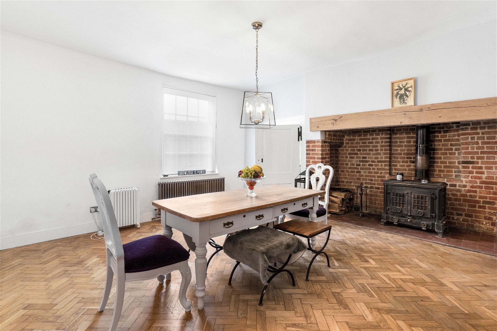 STEP INSIDE As you enter the hallway it simply takes your breath away. Centrally placed with the reception rooms off to each side the hallway stretches to the rear with a most impressive staircase rising up to the first floor. The drawing room is found at the front of the house with large sash windows with original shutters and a fine open fireplace. High ceilings with cornices add to the elegance of this beautiful room. Across the hallway is a dining room, again with sash window to the front with original shutters, high ceiling and a fireplace. The main living room is a quite beautiful room with a large, glazed bay window opening to the garden at the rear. Another room with fireplace and high ceilings. Off the rear hallway is also a cloakroom with contemporary suite. There is a further reception room, currently used as a gym, and a door and steps that lead down to the extensive cellar where one finds the new gas fired high pressure central heating and hot water system and water softener. At the rear one finds a large breakfast room with a very impressive and recently restored inglenook with wood burning stove. Woodblock flooring and a large sash window add to the character of the room. A door leads through to the large farmhouse style kitchen with high vaulted ceiling and exposed timbers. There is a large red brick fireplace with Aga. The kitchen was the next project on the present owners list and requires refitting and bring up to date. Adjoining the kitchen is another WC and an outside storeroom/boot room which could be brought into the kitchen or be a utility room or similar.