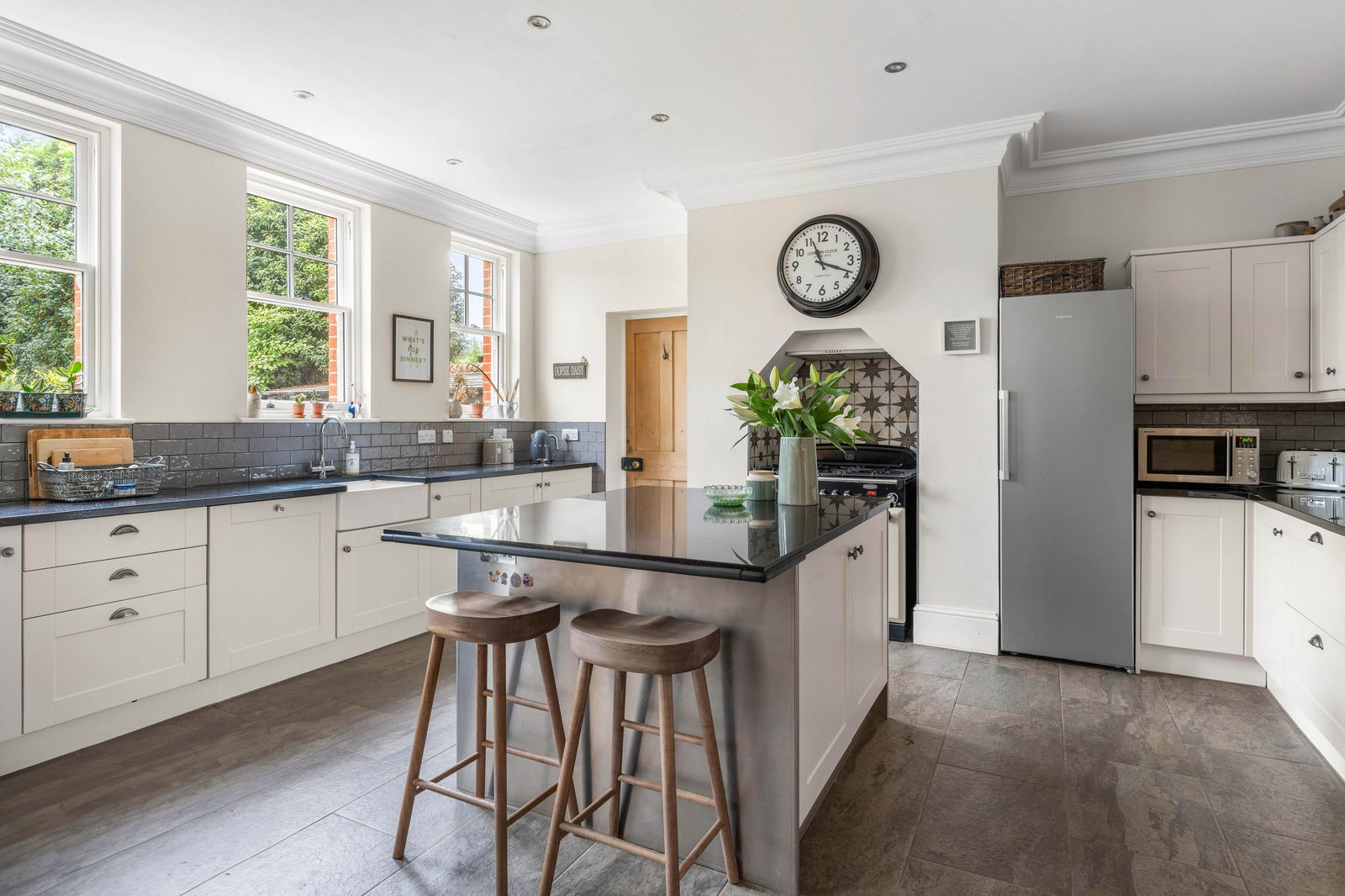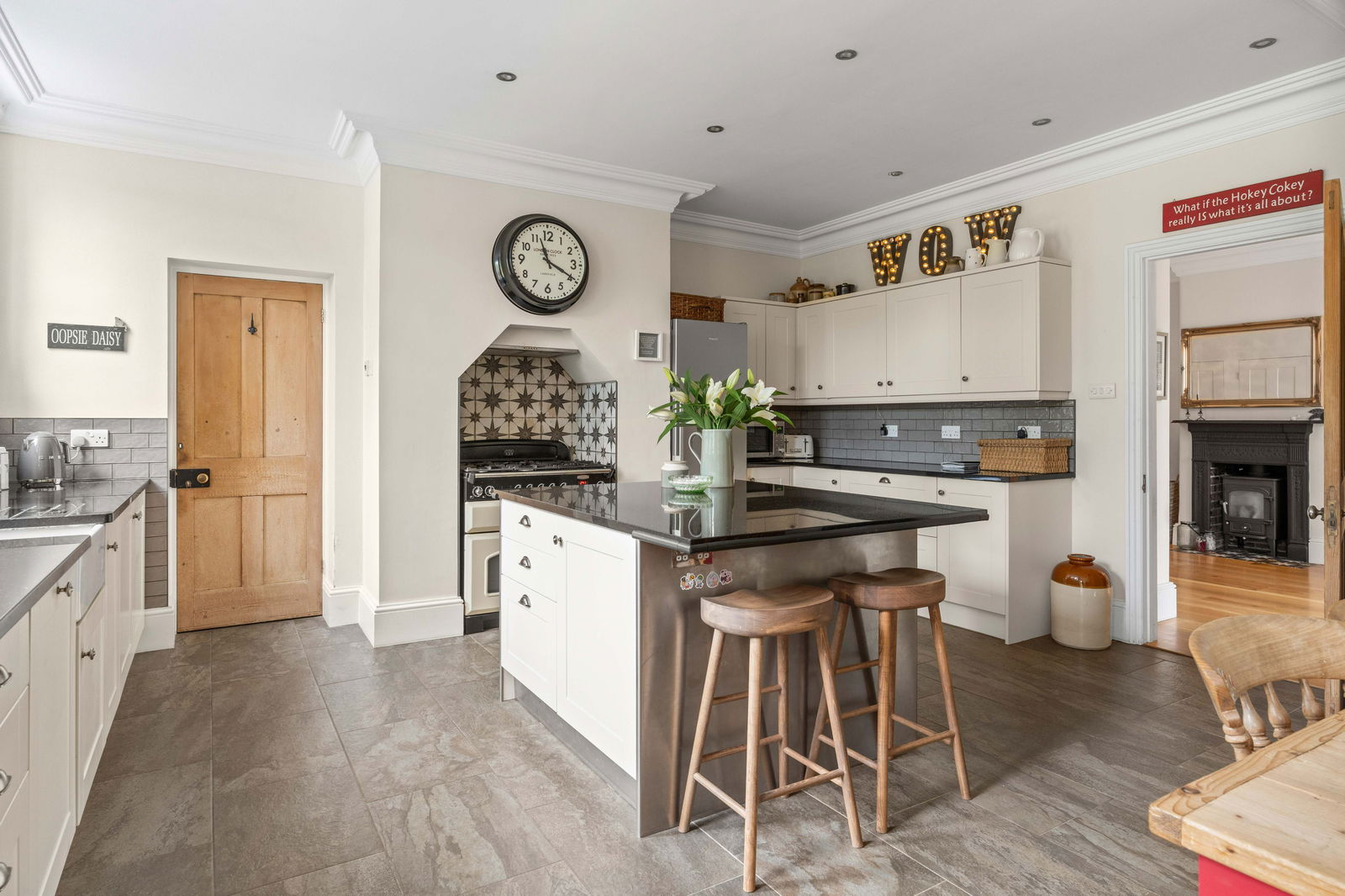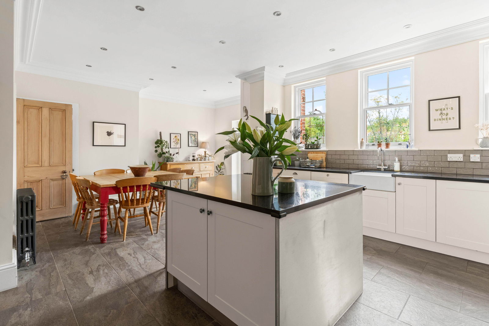 There is a delightful sitting room to the front of the property with original picture rail, stunning fireplace and sash windows overlooking the formal grounds at the front of the house and a separate study for working from home and appreciating the grounds.