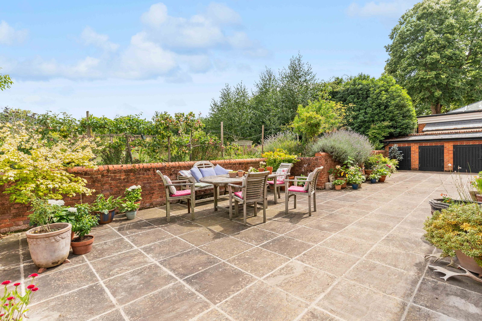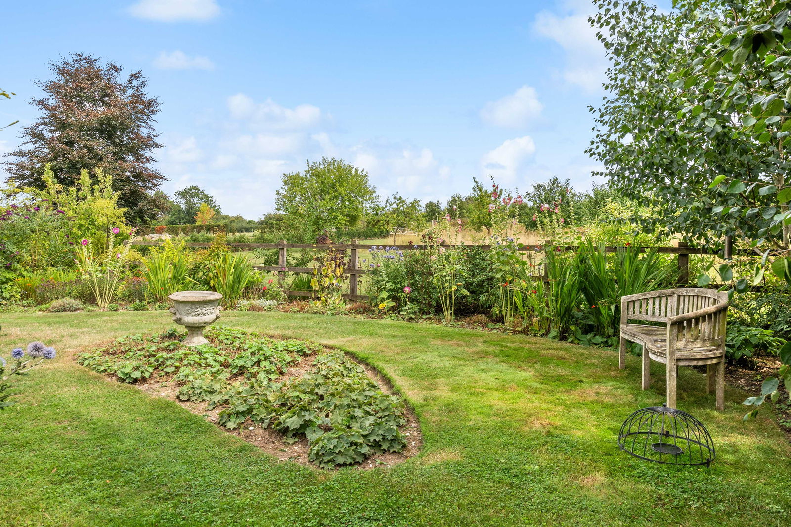 The remainder of the garden is lawn with meadow areas of long grass and seating areas to sit and enjoy while looking back at this stunning home. The garden and total plot is approximately 1 acre and backs on to fields.
