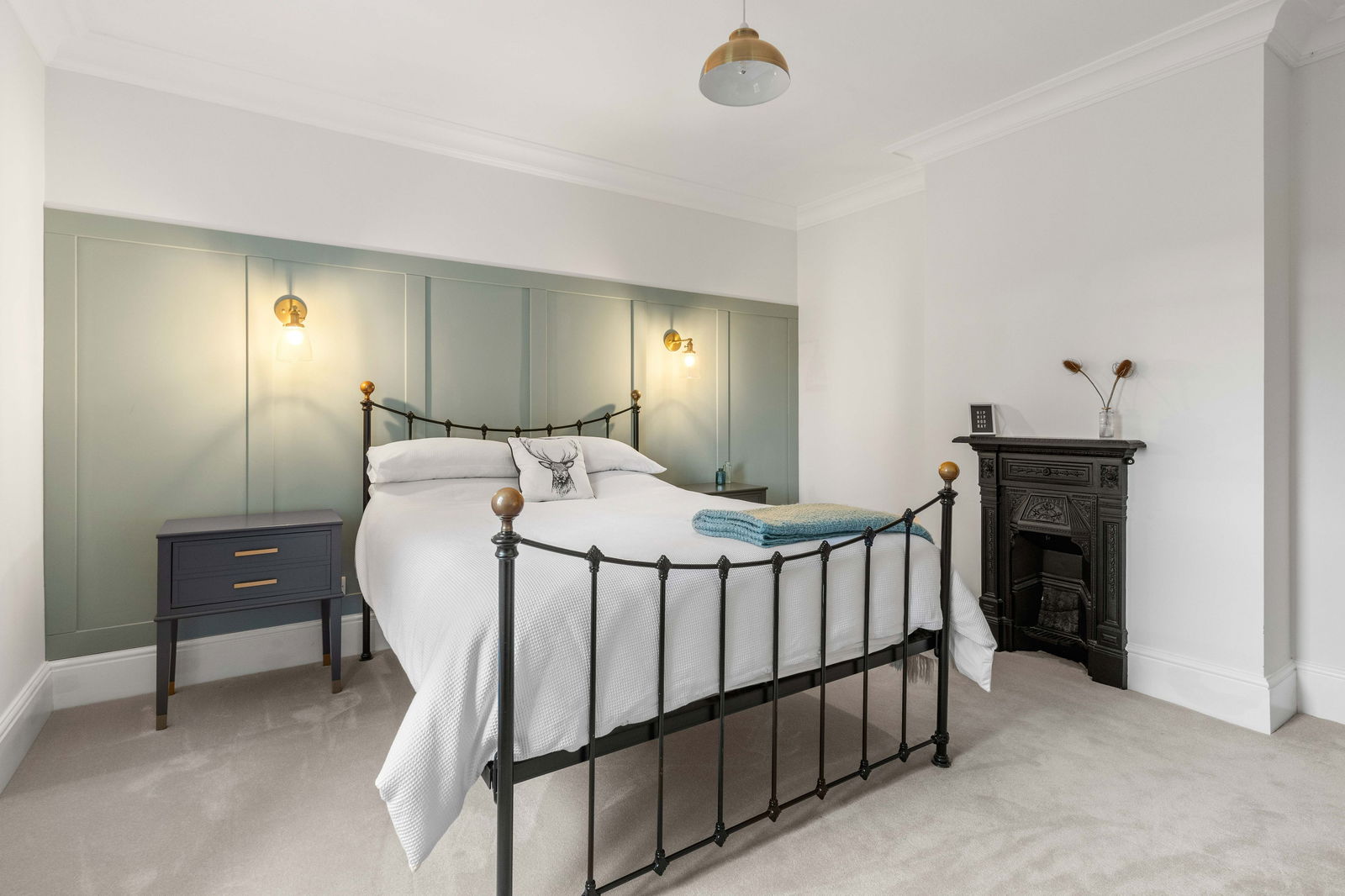 On the first floor there is a large principal bedroom with walk in dressing room and modern contemporary shower room. There are three further double bedrooms on the first floor, all with beautiful, featured fireplaces and large sash windows and an ensuite to the front bedroom.