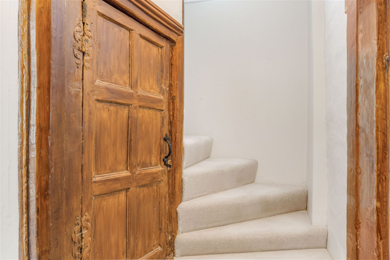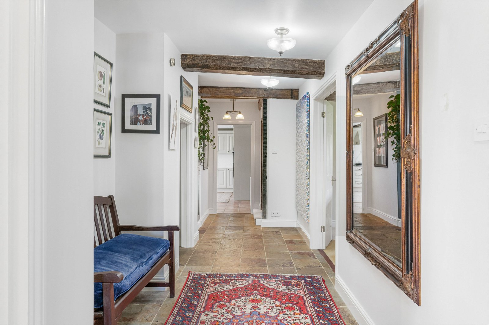 Through the stunning porch into a delightful central hallway, there are two staircases leading to the above floors. To the right there is a cloakroom and family room with open fireplace, exposed beams and