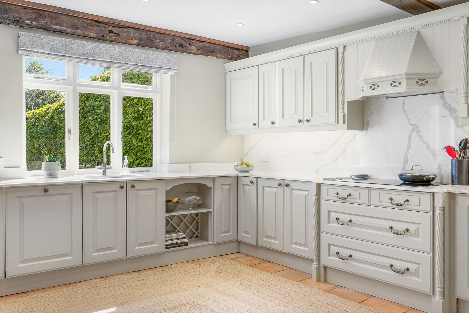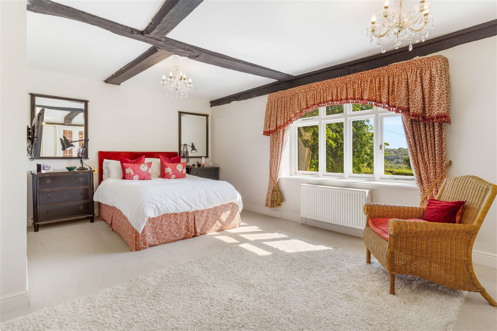 side a generous utility room which complements the kitchen design. The drawing room/dining room flows from the kitchen, another wonderful entertaining space to relax and dine. The central impressive first-floor landing is spacious and bright. The master bedroom straight ahead has fitted wardrobes and ensuite bathroom, amazing views over the gardens and farmland as far as the eye can see. The second bedroom also with ensuite bathroom and a further two generous bedrooms with family bathroom. There is a second small staircase leading up to the loft room / bedroom five with further access to a