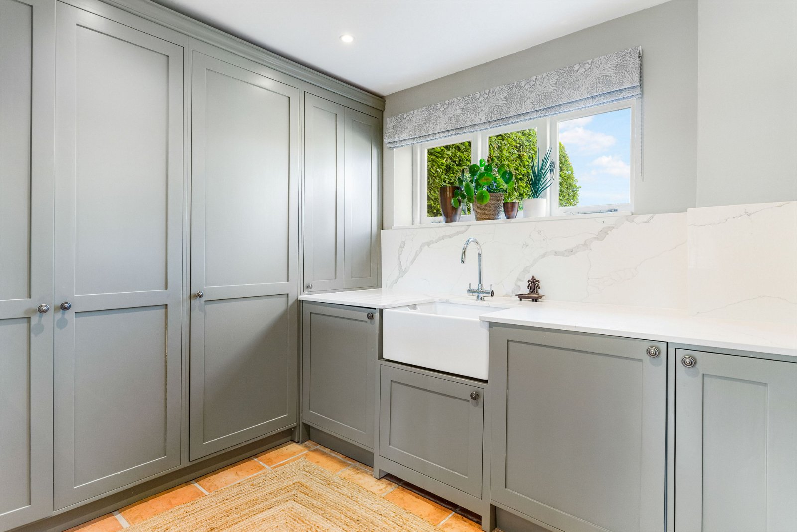 with access to the private front garden. At the end of the hallway, the heart of the home is the inviting kitchen breakfast room with space for the family to gather again with access to the gardens. Just to the