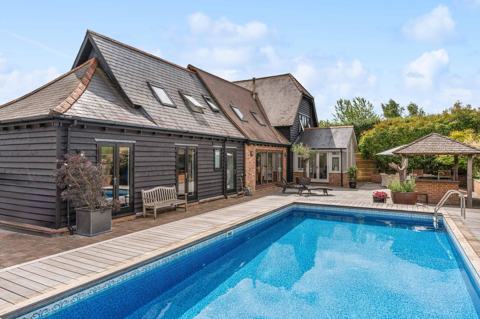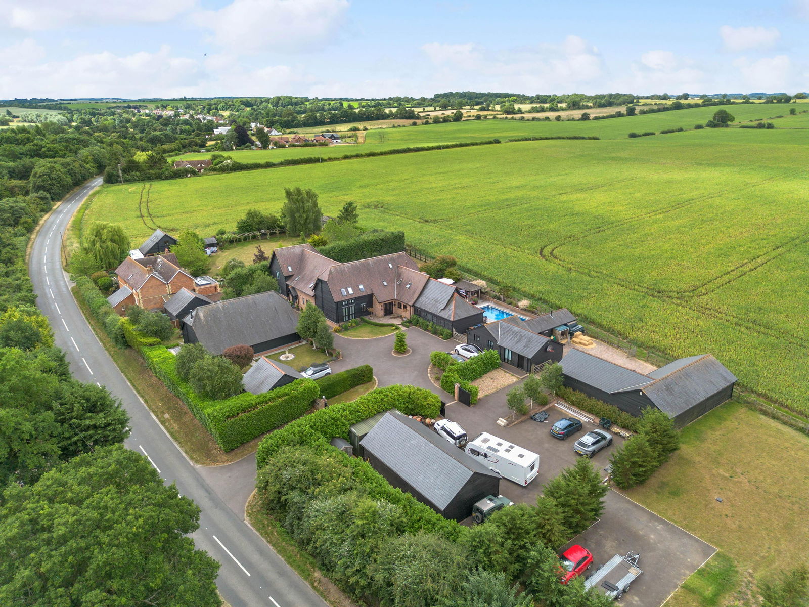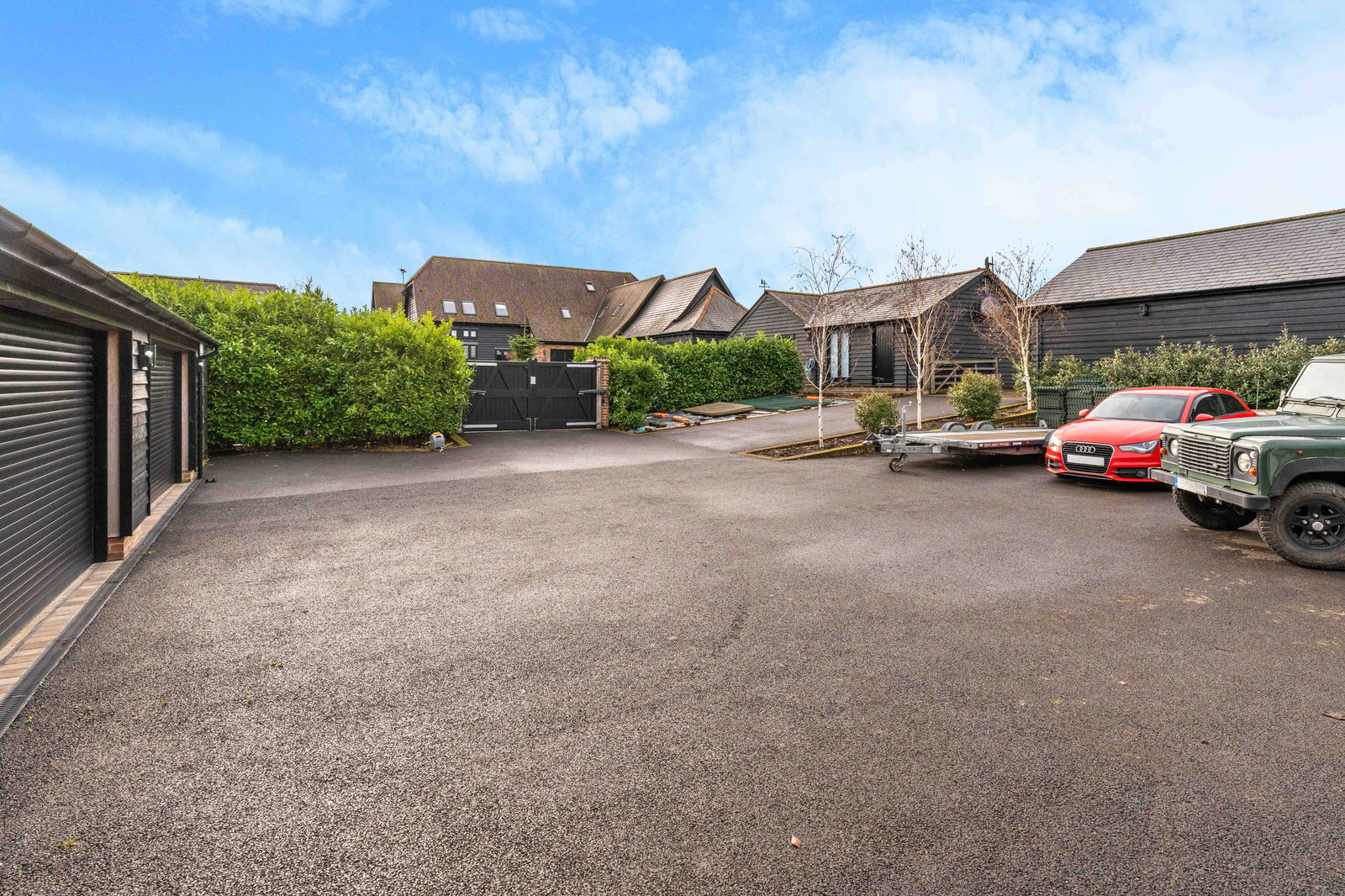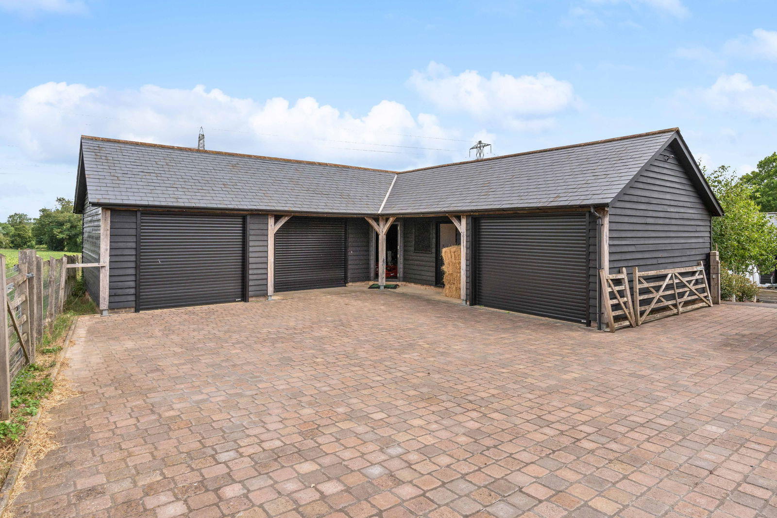 A stunning Six-bedroom barn style property built in 2009 and set within a gated development of three properties. Situated in Hare Street, Buntingford and backing onto farmland. This family home has been built in mind for multi-generational living with a self-contained annex and many outbuildings, golf studio and garages that can easily be converted subject to planning permission. There is plenty of parking for a large family, a gym and swimming pool. There is approximately 6568 sq. Ft of floor area including the garages and set within approximately 1.4 acres. There is oil heating, a shared sewerage plant system, EPC band D, council tax band G and no onward chain.