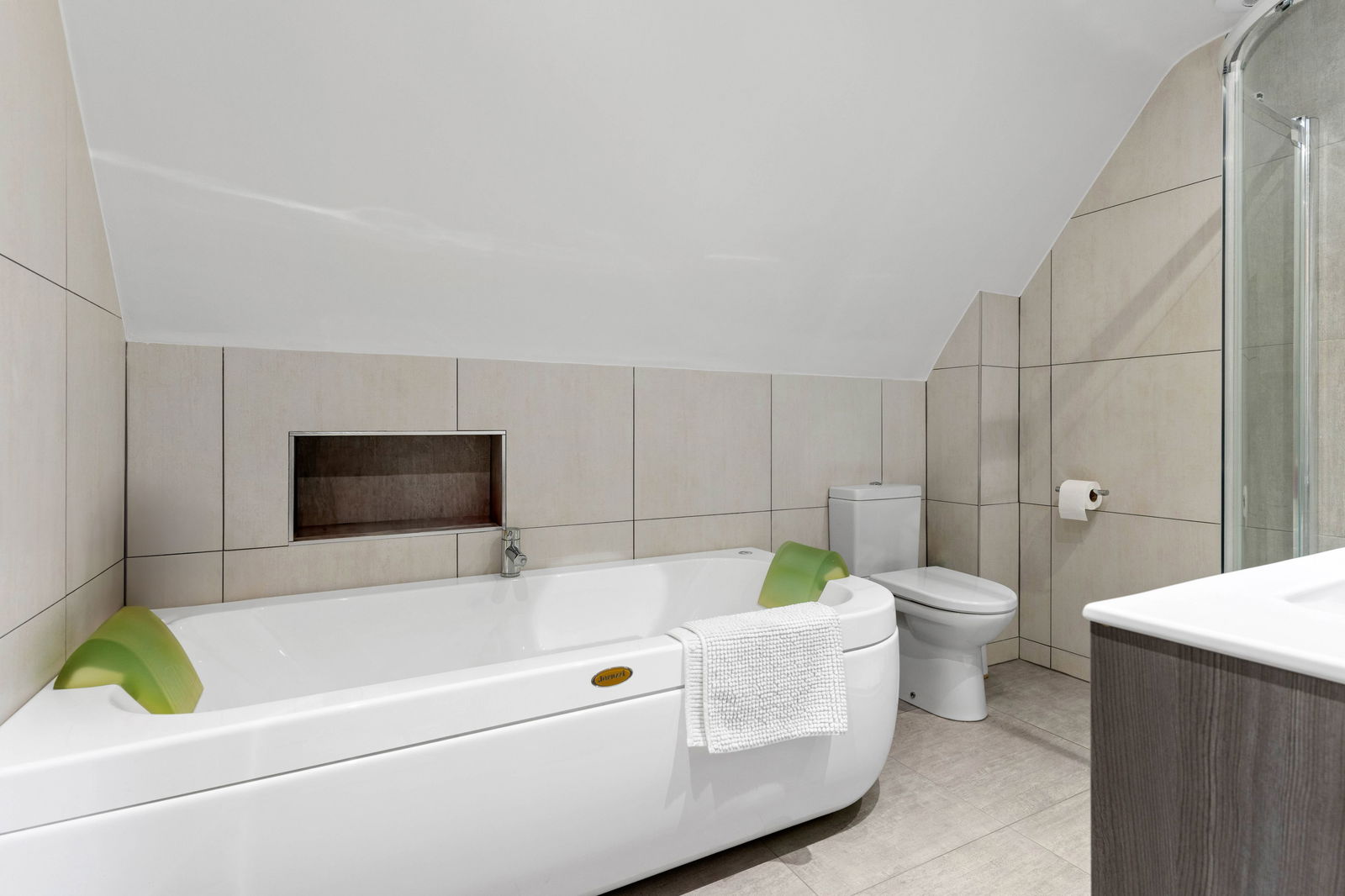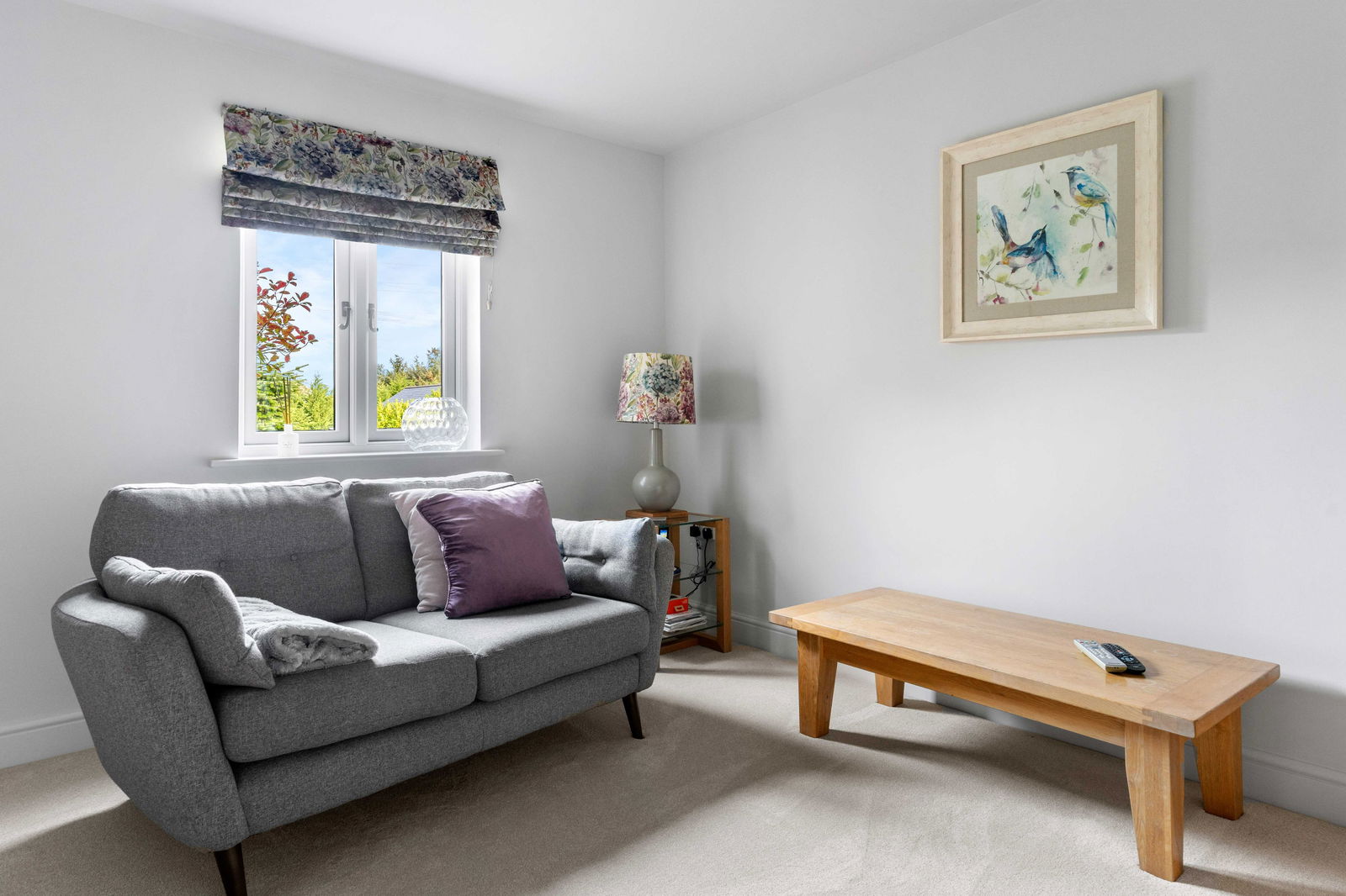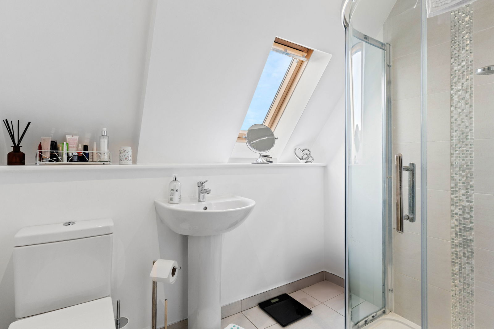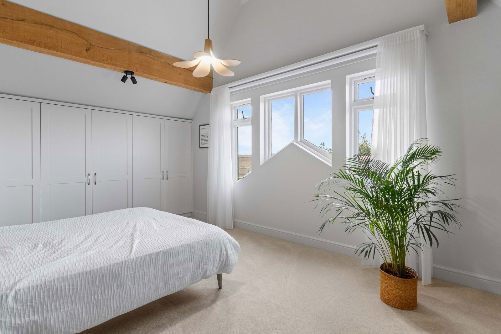On the first floor a delightful master bedroom with vaulted ceiling, plenty of built in storage and a walk-in wardrobe. There is a feature apex window with amazing views to wake up to every morning. A creative staircase leads you up to the ensuite shower room.