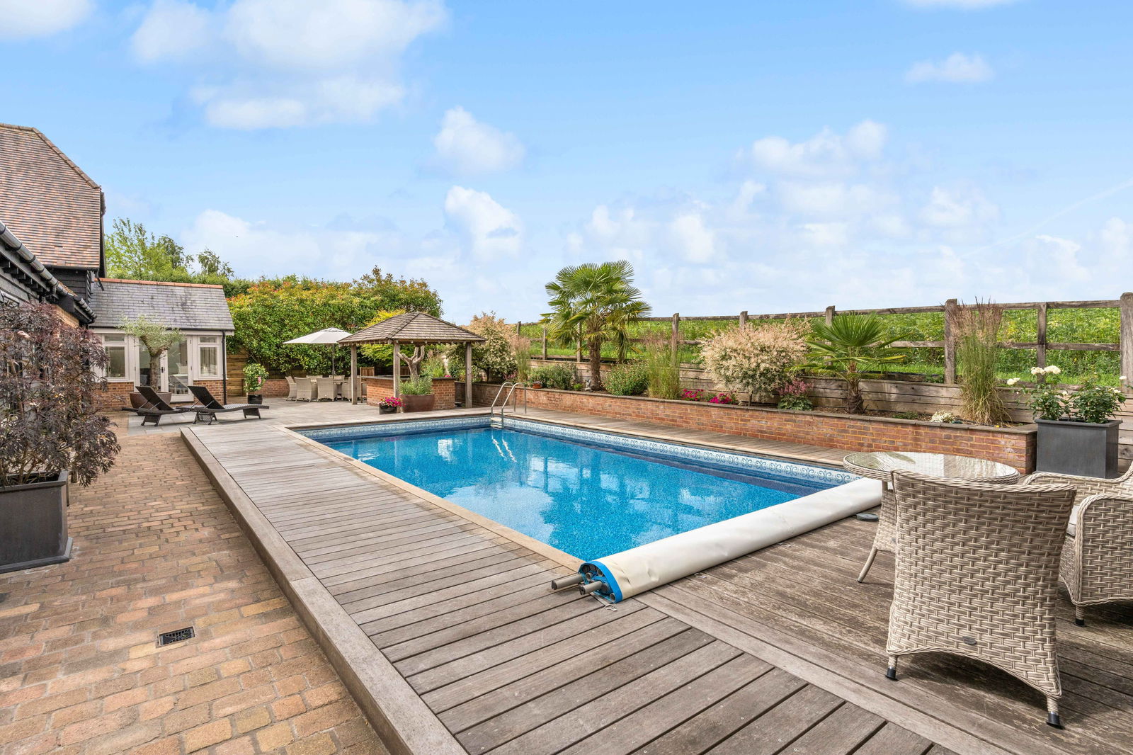 The gardens are well maintained in the communal area and the private rear garden offers a large patio area with BBQ kitchen area, heated pool and a pool house and pump room with storage area and under cover seating area.