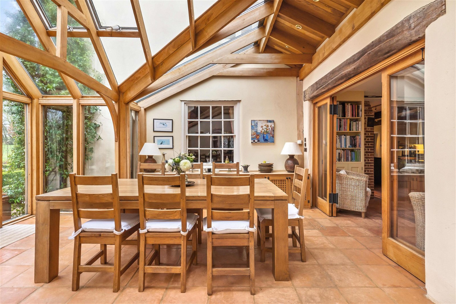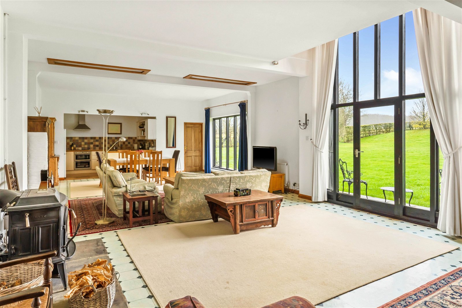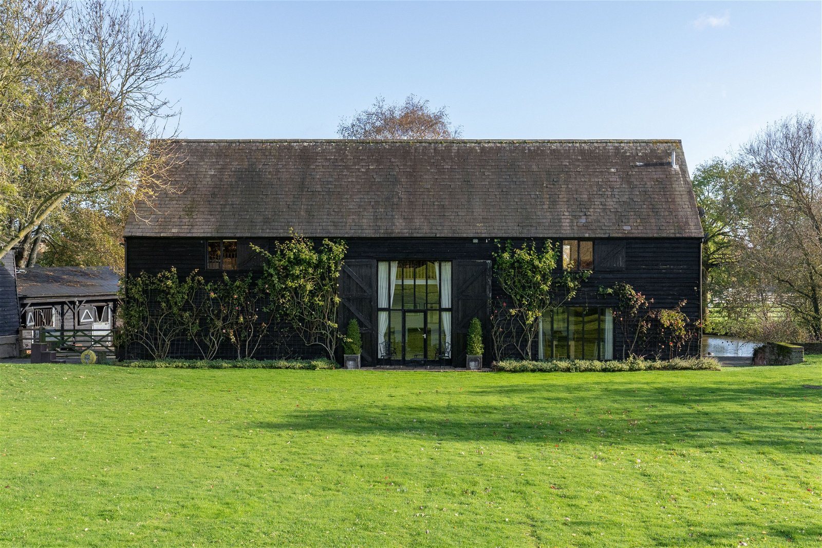 As you arrive, the driveway is neat, well-kept and flows perfectly to where one parks in front of the high barn and absorb this hidden gem. The farmhouse is positioned centrally within around 3.5 acres of formal gardens which are beautifully cared for, mature, private and a reflection of the owners passion for their home. There is a heated outdoor pool with summer/pool house with excellent views of the neighbouring fields and paddocks. For the equestrian enthusiast there are four stables and a tack room and a further 11 acres of paddocks with a menage. In addition there is a natural pond/lake. Independent of the house there is the main barn, the high barn and the agricultural barn, all of which have been nurtured and cared for by the owners. The main barn is substantial in size and lends itself perfectly to multi-generational living. The high barn is of timber frame construction and offers a double car port, masses of storage and an excellent workshop.