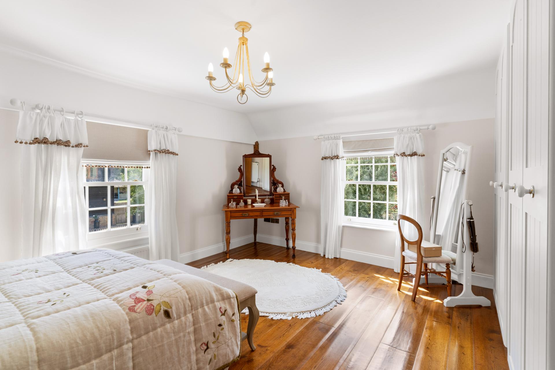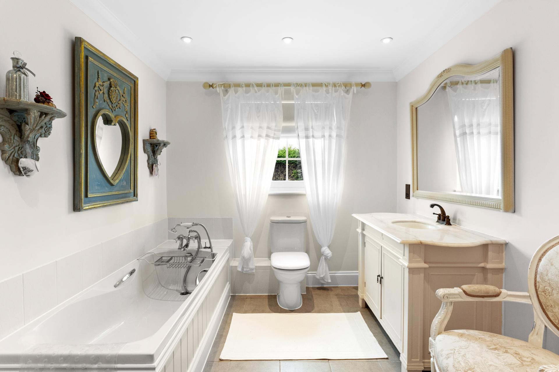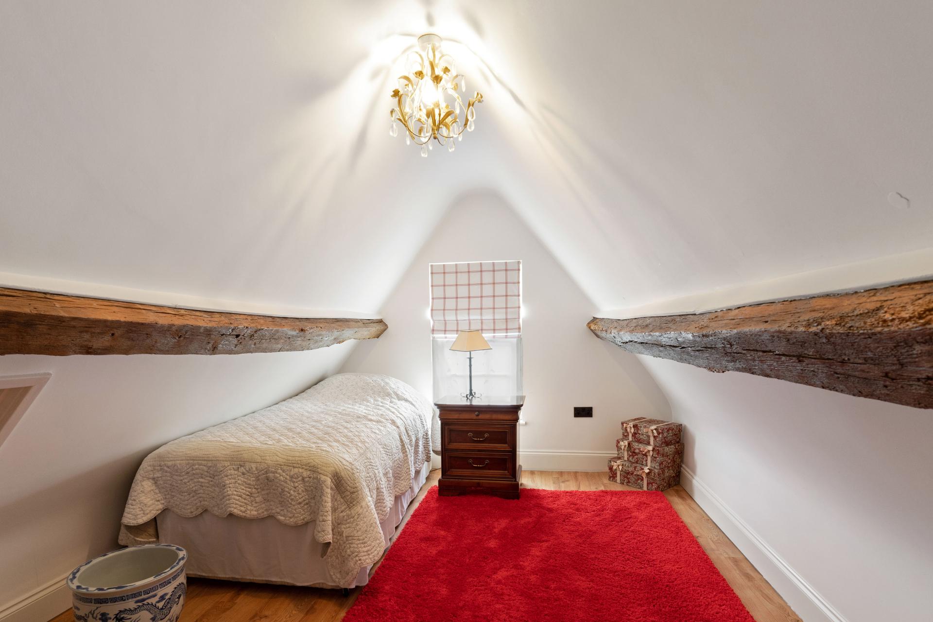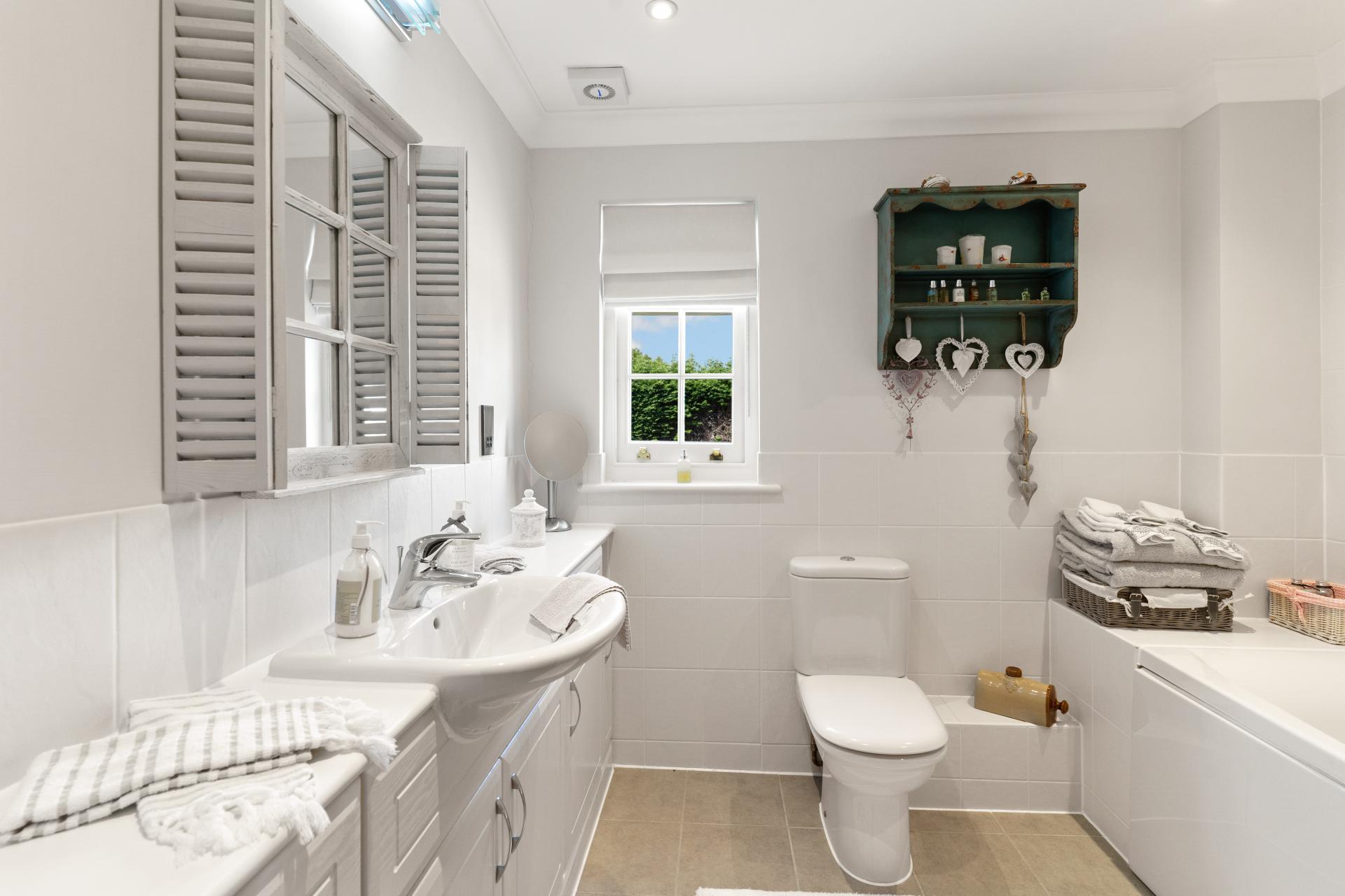 Upstairs, on the first floor there are three double bedrooms and a family bathroom. the principal bedroom enjoys an en suite and fitted wardrobes. The guest/ 2nd bedroom also benefits from fitted wardrobes and is double aspect with views over the paddocks and countryside.. On the top/attic floor are two further bedrooms and a separate wash room/WC, that are built into the eaves. Ideal teenagers rooms.
