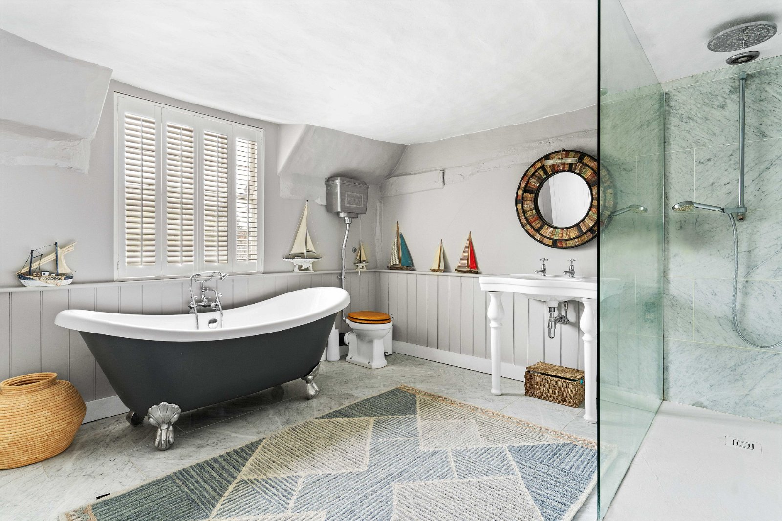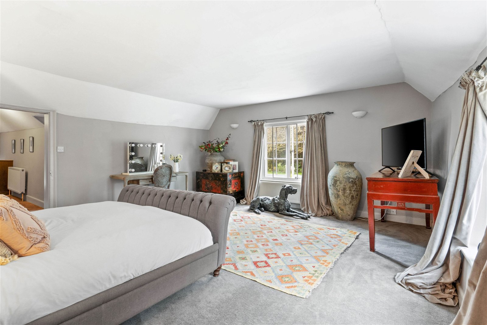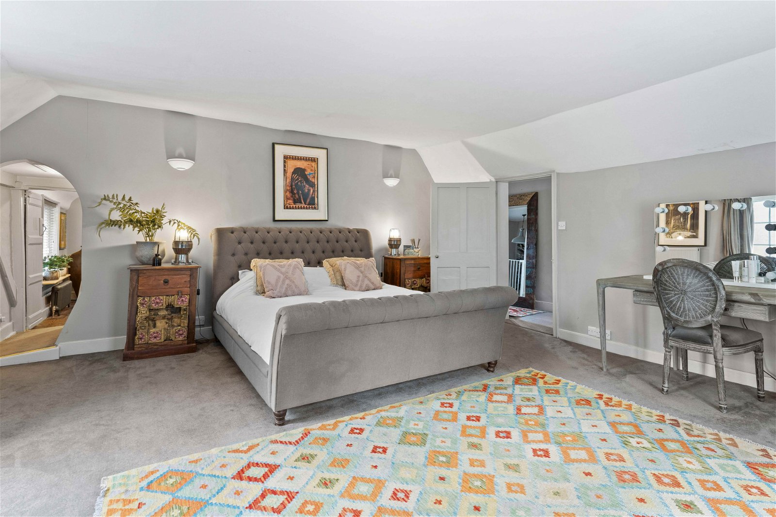 The Master bedroom is light and airy with dual aspect windows, a superb ensuite bathroom with rolled top bath, walk in shower and dressing room. From the master bedroom the landing leads to the second staircase so feels very private from the rest of the house.