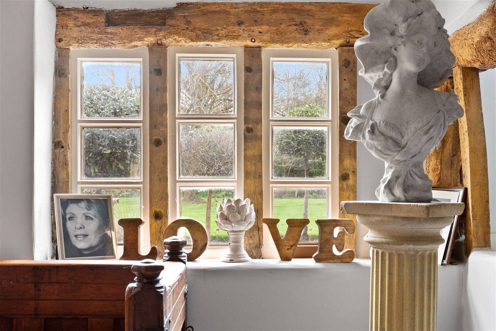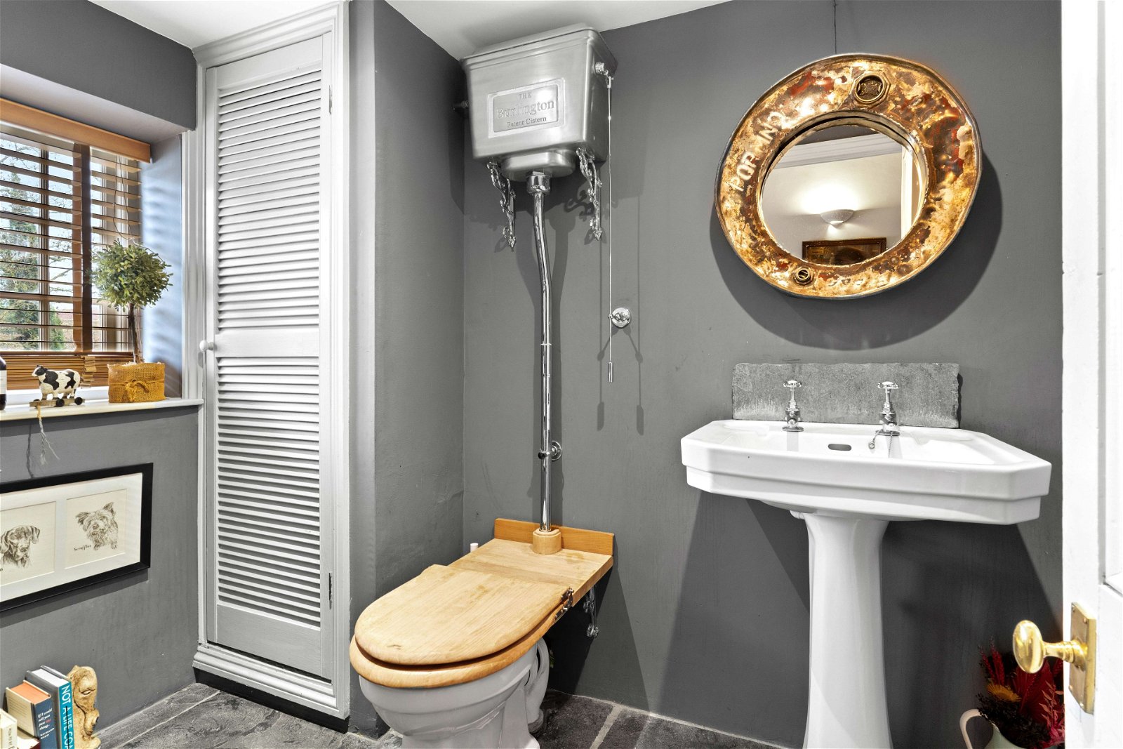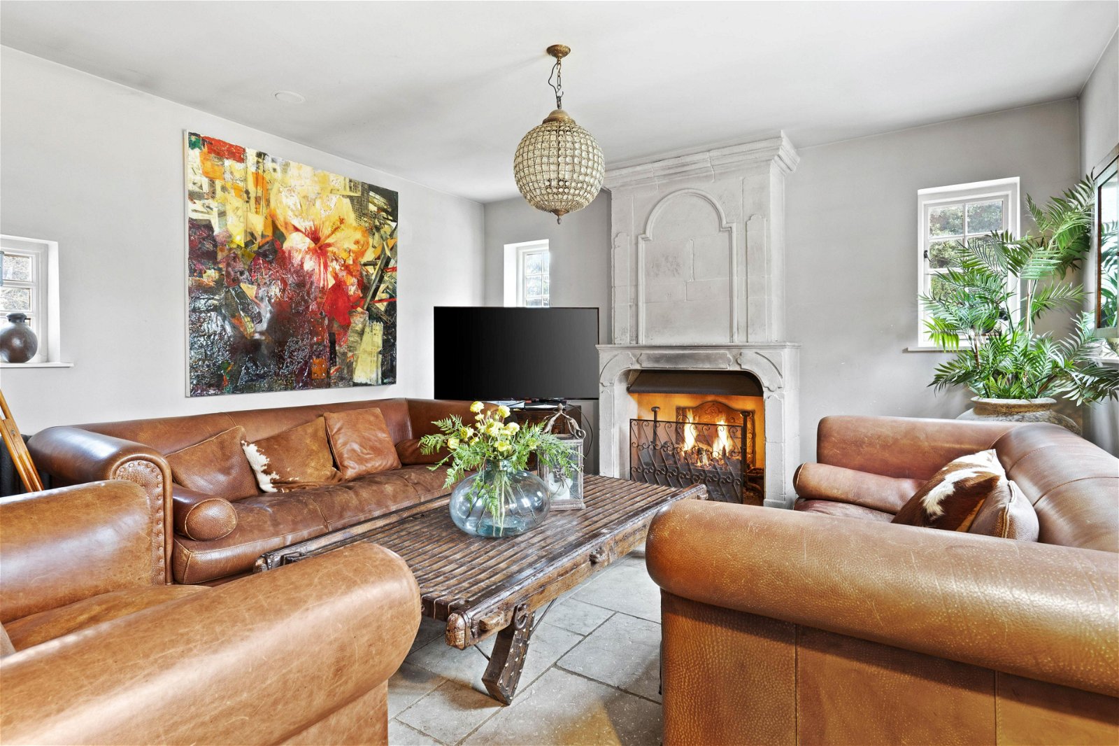 A stunning solid double wooden feature door leads you into the heart of the home, an inviting farmhouse styled kitchen with exposed beams, Aga and slate flooring. The rear views are amazing of the formal rear gardens. There is a delightful dining area with a feature open brick fireplace, French doors, and a separate utility room.