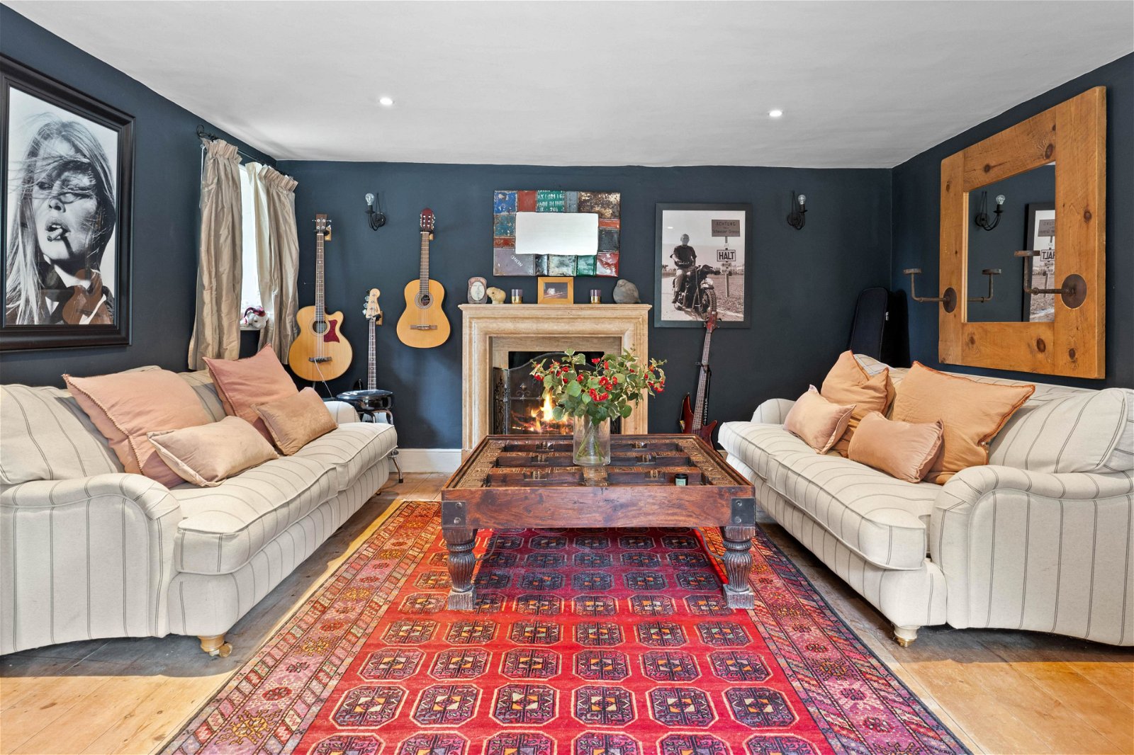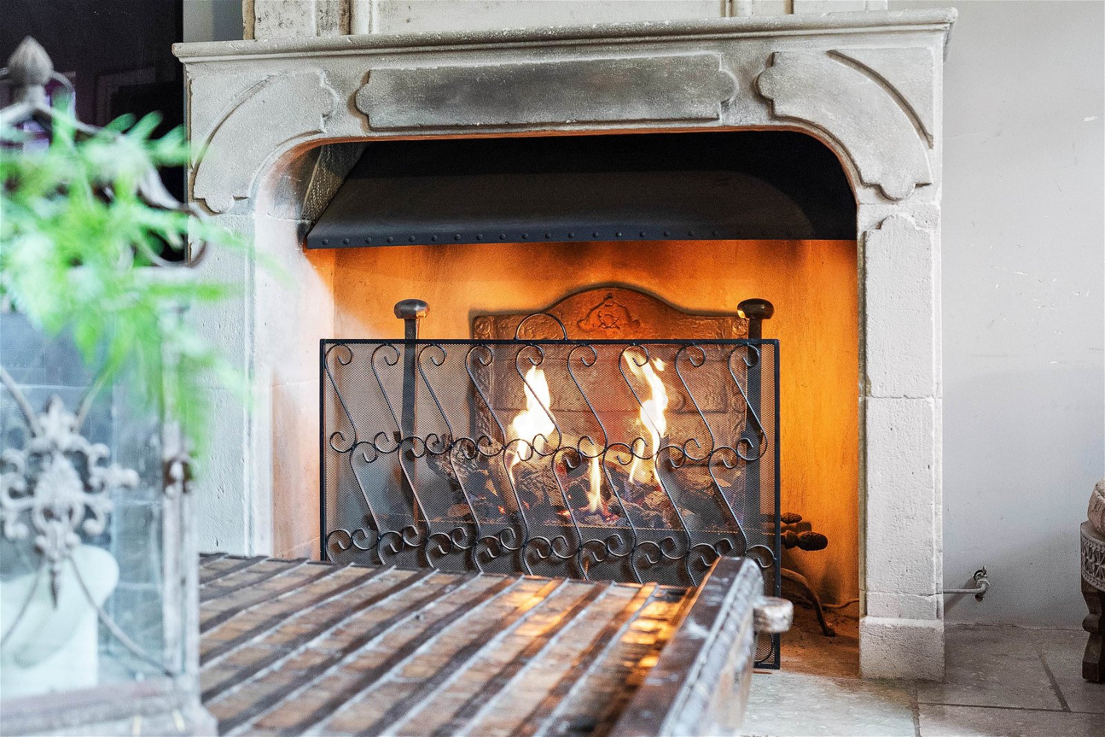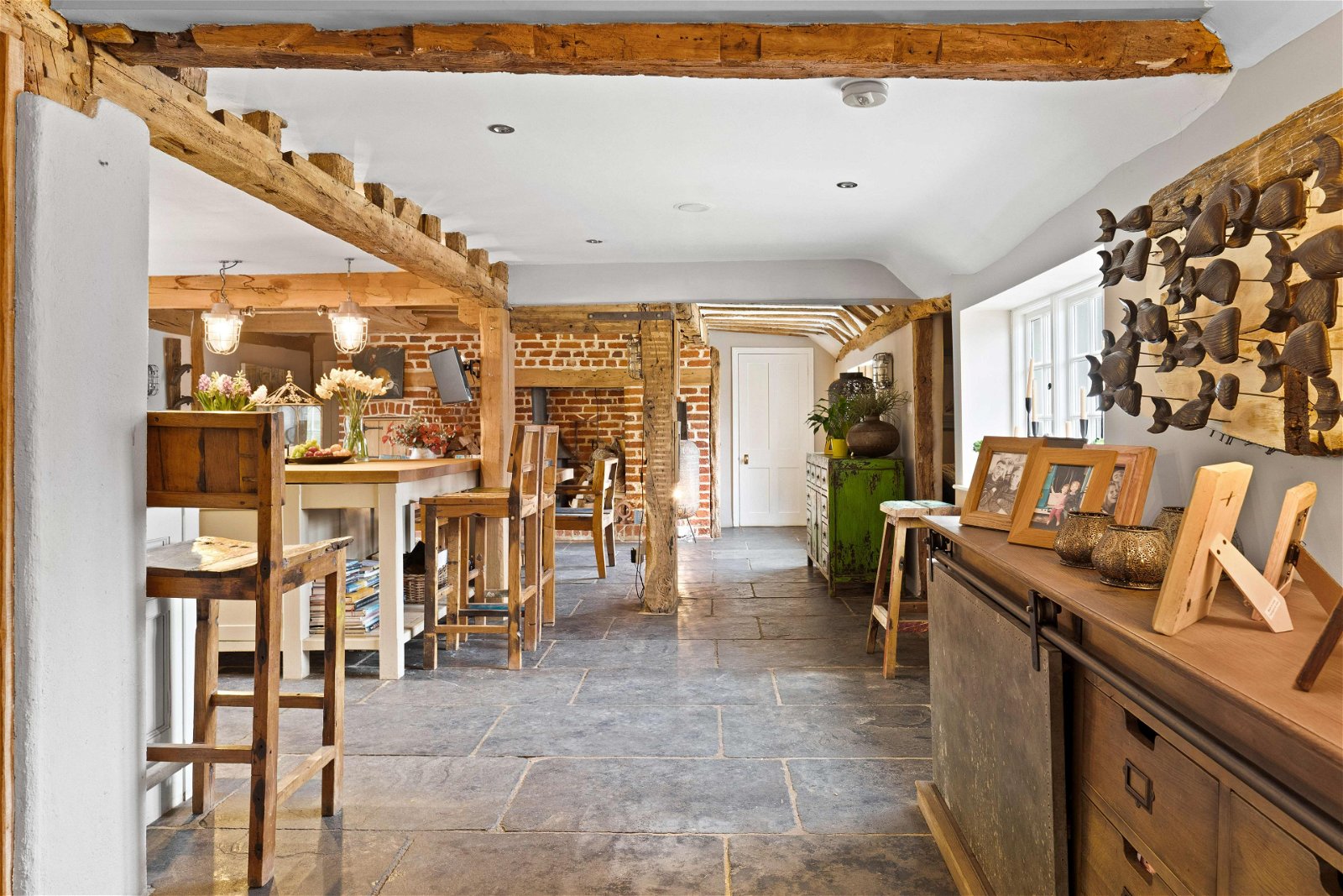 - Open fire places and exposed beams