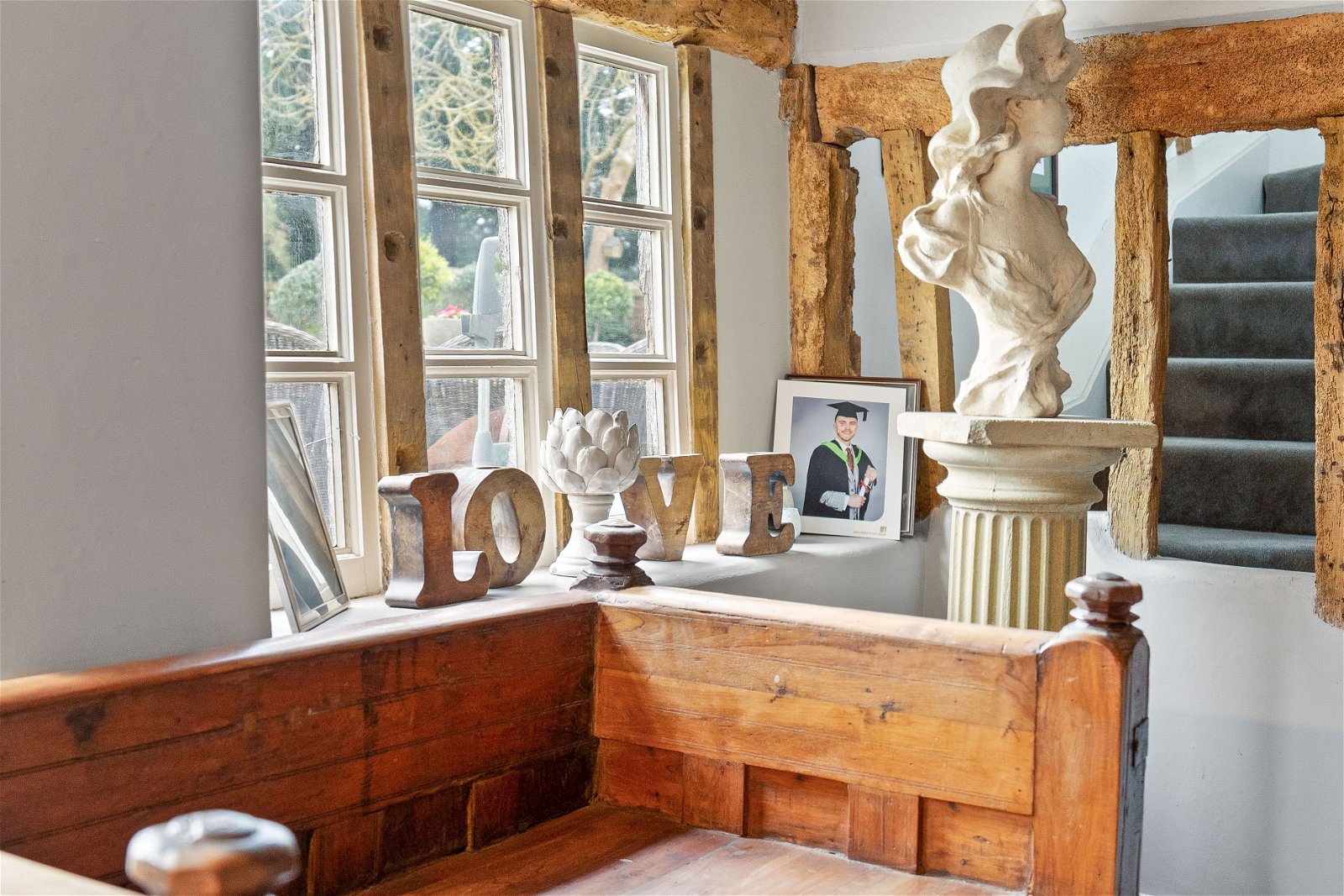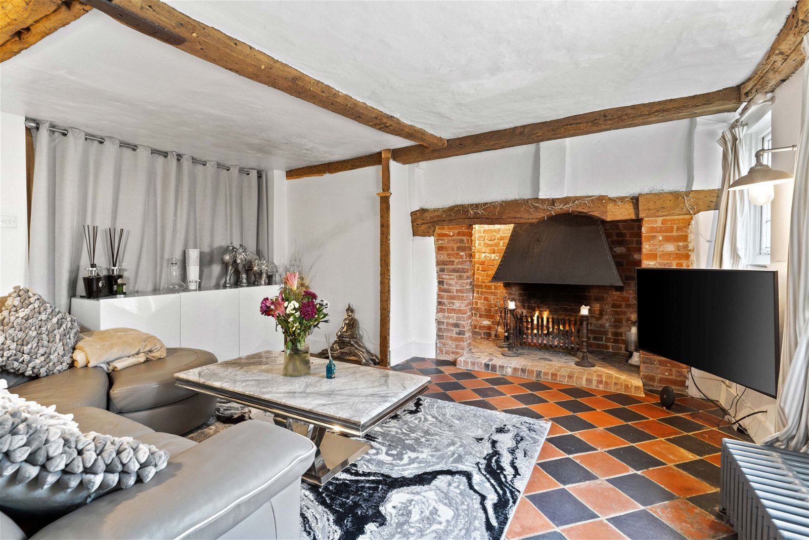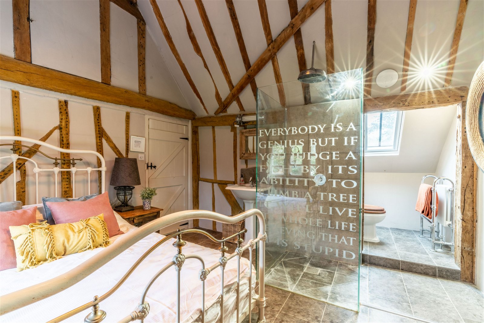 - Open fire places and exposed beams