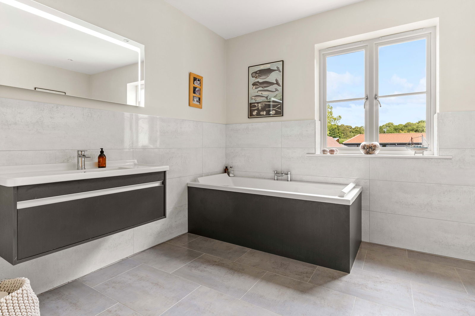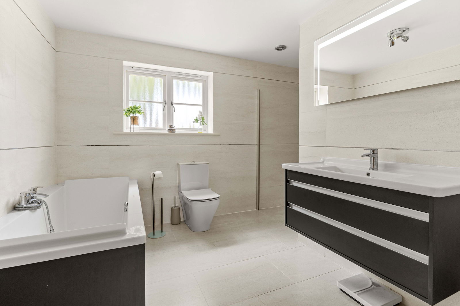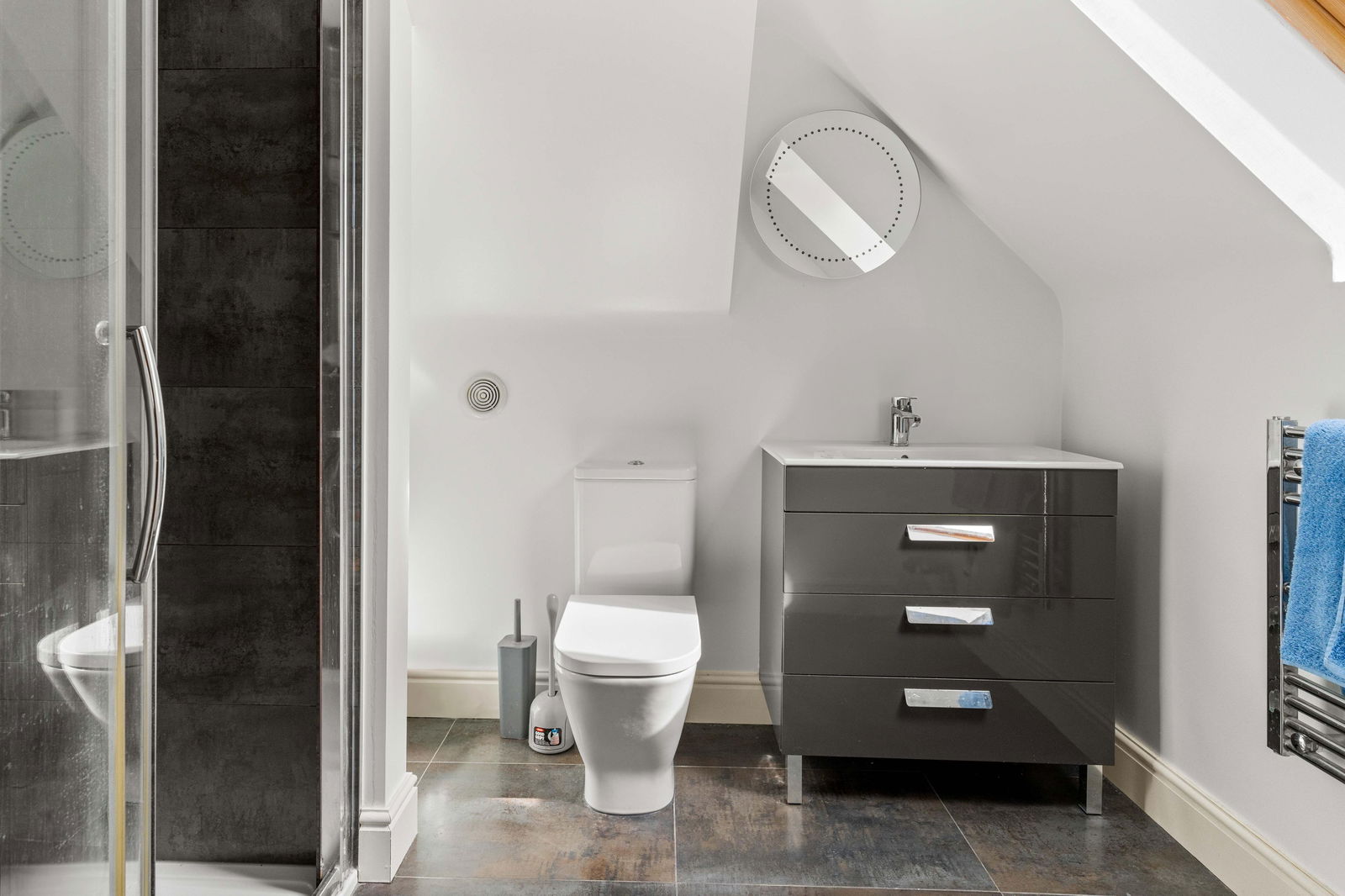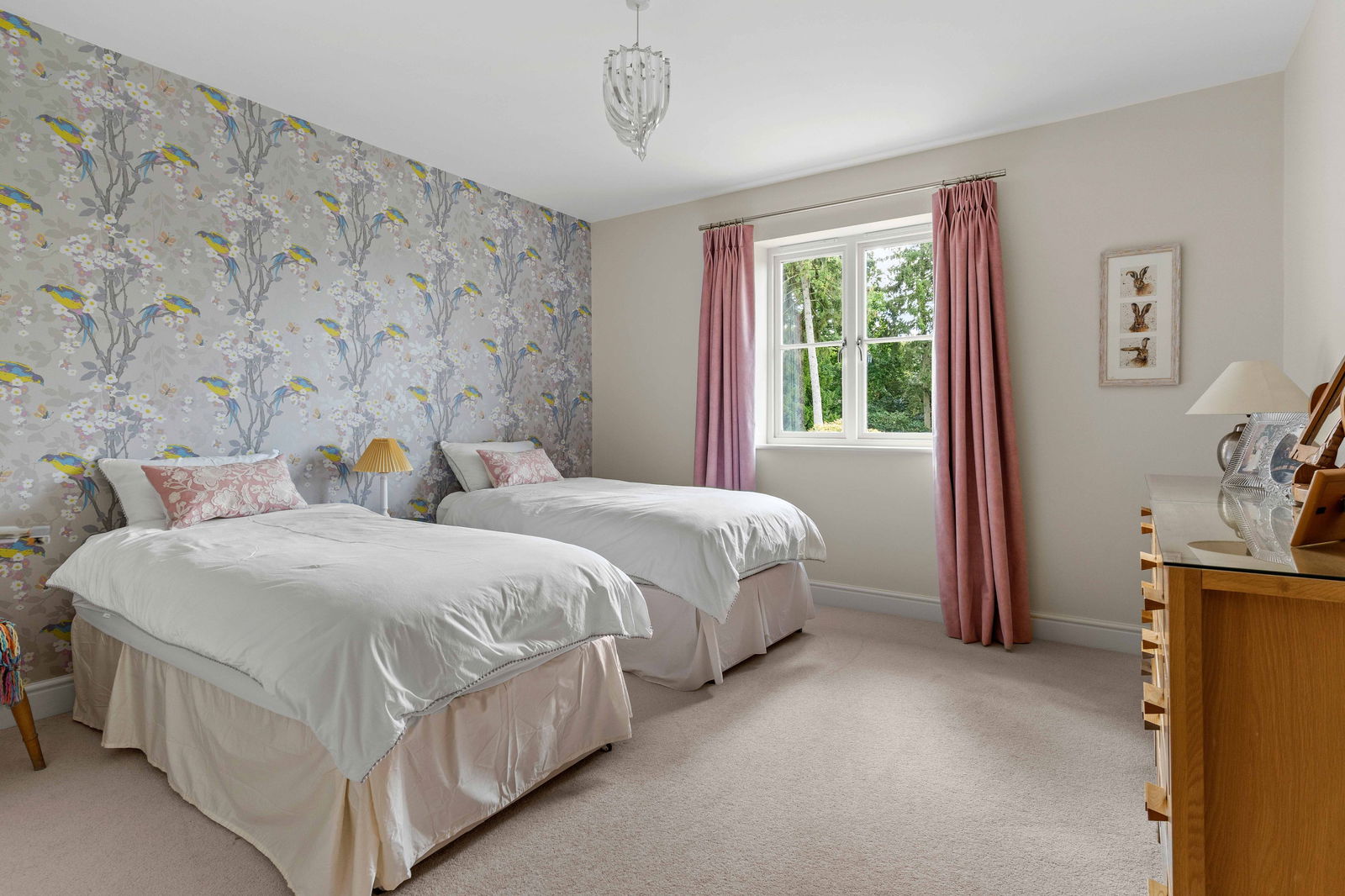 Climbing the elegant winding staircase, you’re immediately bathed in natural light from the striking picture window above the landing, creating a bright and airy transition to the first floor. This level offers three generous double bedrooms, each thoughtfully positioned to make the most of the space and light. The principal bedroom is a true retreat, complete with a spacious walk-through dressing room featuring fitted wardrobes, and a stylish en suite shower room with high-end finishes. Across the landing, the middle bedroom enjoys easy access to the beautifully appointed family bathroom, which boasts both a large bathtub and a separate walk-in shower—ideal for busy family mornings or relaxing evenings. At the far end of the landing is the guest suite, mirroring the layout of the principal bedroom. It includes a private dressing room—offering ample space for freestanding storage—and a contemporary en suite shower room, making it perfect for visiting family or long-stay guests. Continuing to the second floor, you’ll find a large double bedroom with its own en suite shower room, along with a smaller yet comfortable double bedroom on the opposite side of the landing. Both top-floor bedrooms are heated by modern electric heaters, offering flexible and efficient warmth tailored to your needs.
