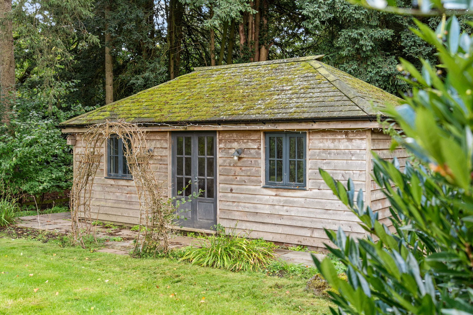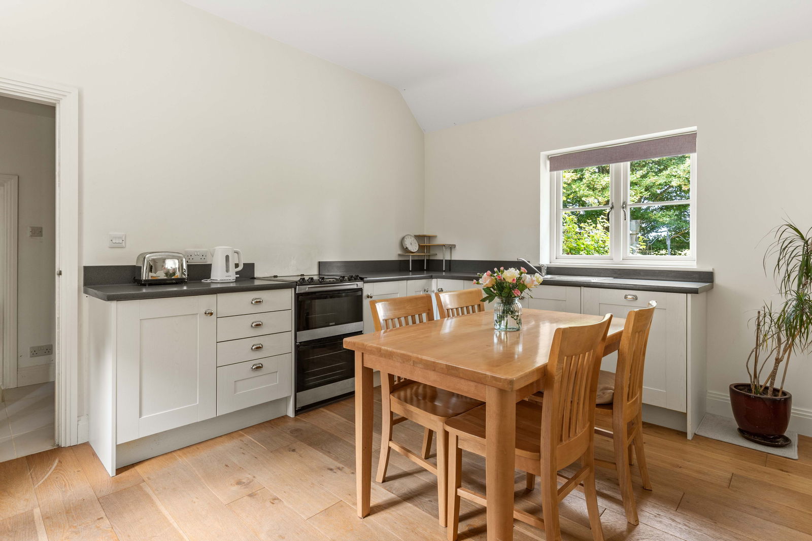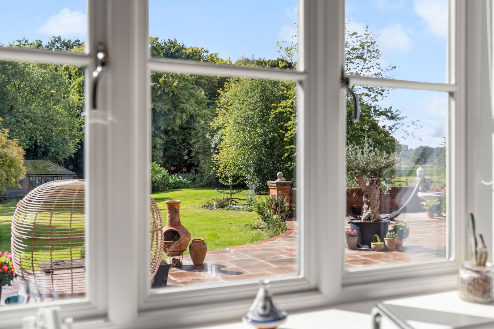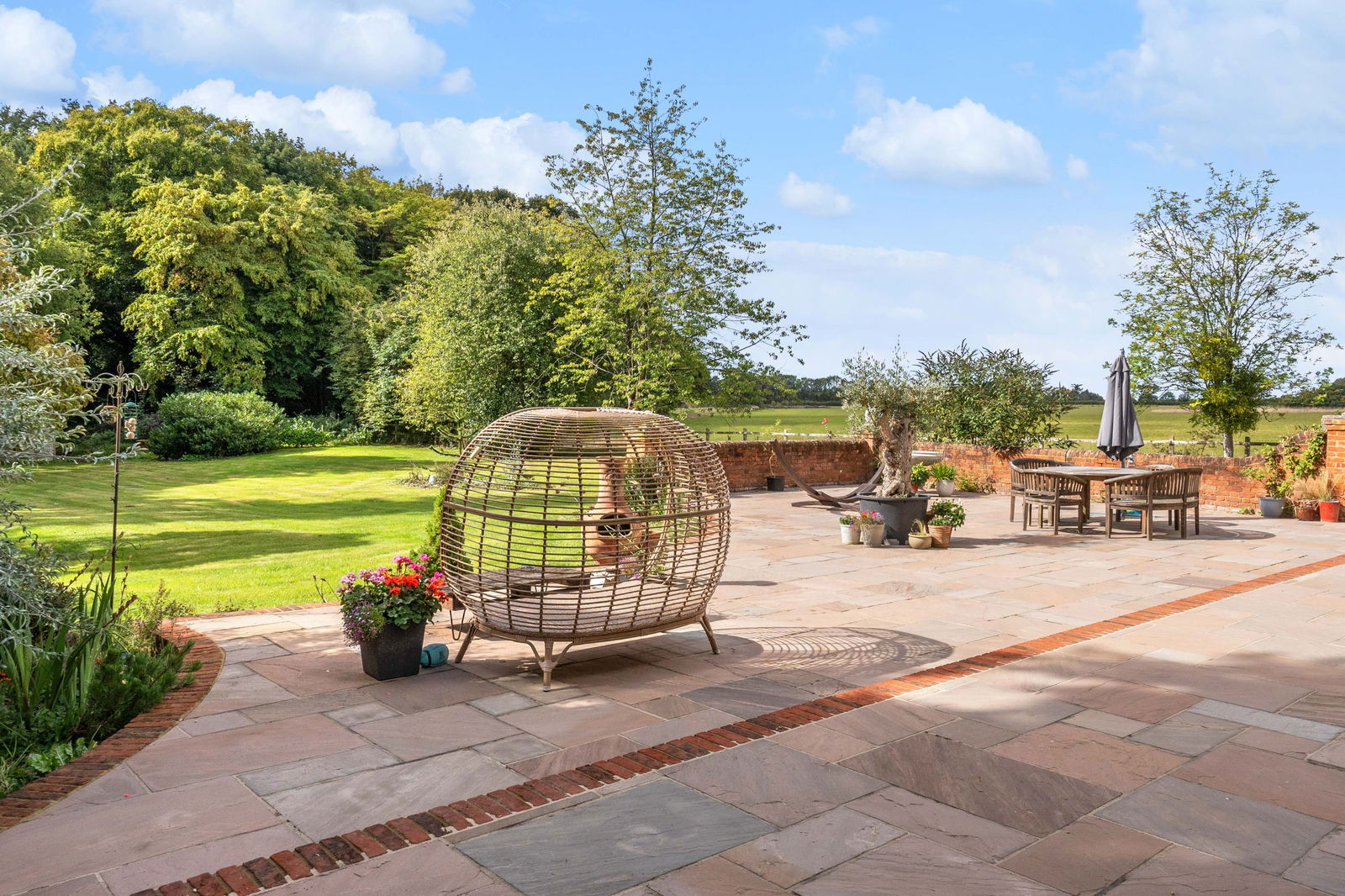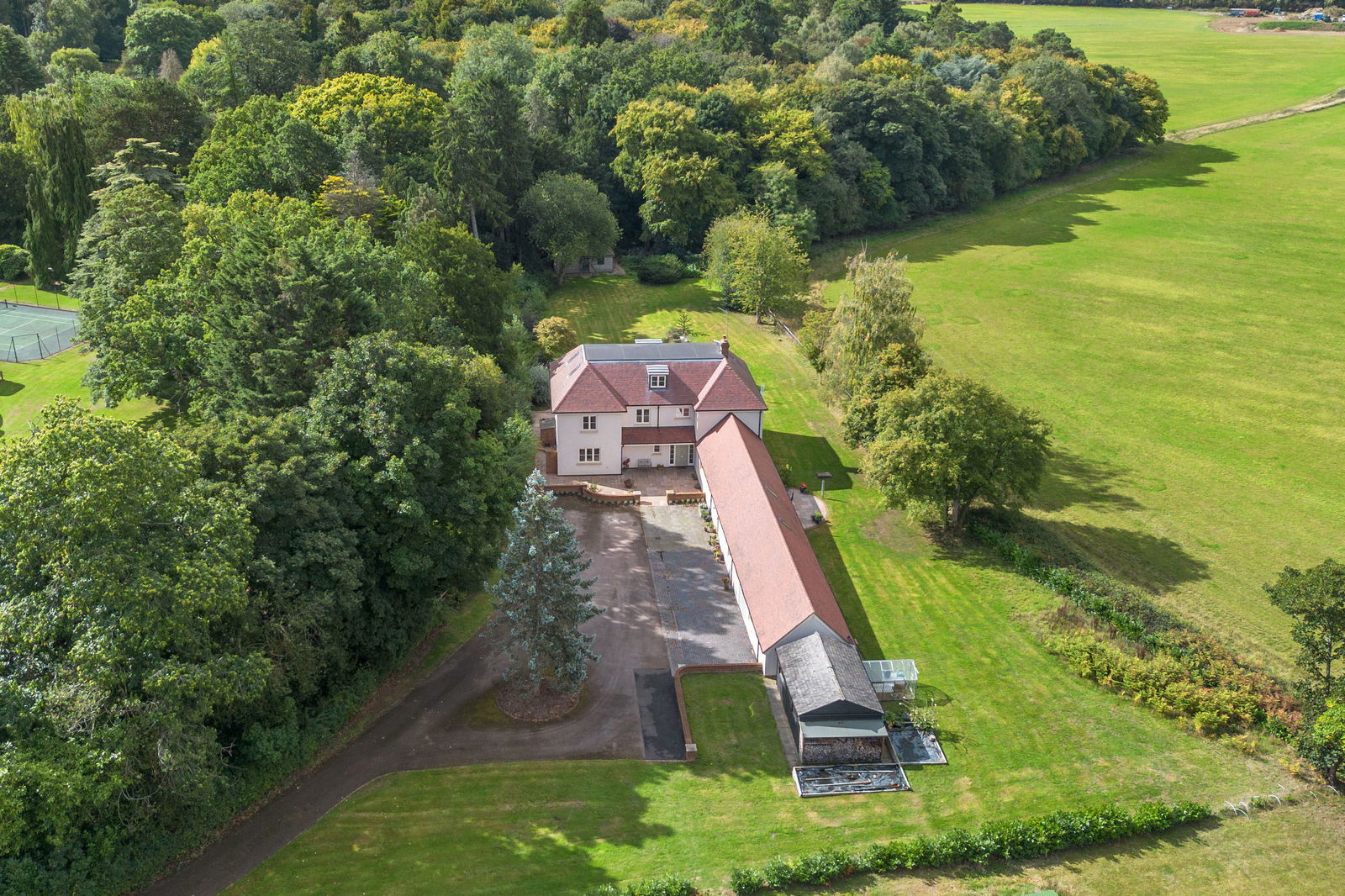 Bradley Springs occupies a prime position in the south-west corner of Node Park, a historic country estate once centred around a grand Georgian mansion built in 1815. Known as "The Node", the original house has recently been converted into luxury apartments, while the surrounding estate buildings have been thoughtfully transformed into impressive residential properties, blending period charm with modern comfort. Accessed through a walled entrance with electric gates, the journey into Node Park is an experience in itself. The tree-lined avenue, flanked by mature woodland, winds gently through the estate before reaching Bradley Springs, tucked away at the rear for maximum privacy. A private driveway leads you into a charming courtyard parking area, where a majestic pine tree stands at its centre. To your left sits the main house, while the annex and double garage extend to the right, creating a balanced and welcoming arrival. The cobblestone parking bays are a respectful nod to the estate’s history, marking the area where the original stable block once stood. Beside the garage, on a raised level, sits a generous storage shed, log store, and greenhouse, all positioned for convenience and practicality. From here, your gaze is drawn toward open countryside views, framed by a post-and-rail wooden fence and dotted with mature trees along the boundary. The lawn stretches past the annex, where a small patio area offers a quiet retreat, and continues along the side of the main house before opening into a substantial main lawn, bordered by mature woodland at the rear and side. Tucked into a shady, secluded corner of the garden is the charming summerhouse—a versatile outbuilding that currently houses a pool table enjoyed by all family members. With power, lighting, and portable electric heating, it’s usable year-round and, with some updates, could just as easily serve as a home office, studio, or hobby space. From the summerhouse, there’s a lovely rear view of Bradley Springs, leading up to a large, full-width patio directly behind the house, which is edged by a characterful low wall. This provides shelter from the wind without interrupting the spectacular, private views across the open countryside beyond. The patio is accessed via both the kitchen and lounge, making it ideal for al fresco dining and entertaining. The south-west facing garden enjoys long hours of sunshine and breathtaking sunsets, making this the perfect space for family barbecues, summer parties, or simply enjoying the peace and tranquillity of this truly special setting.