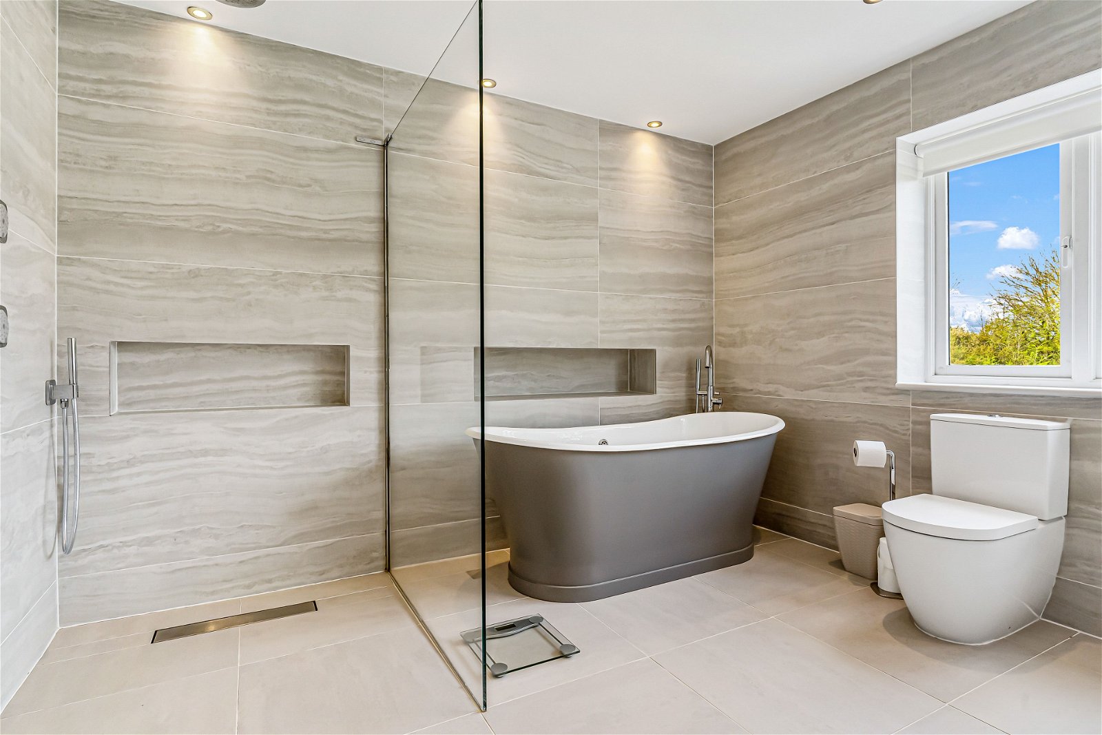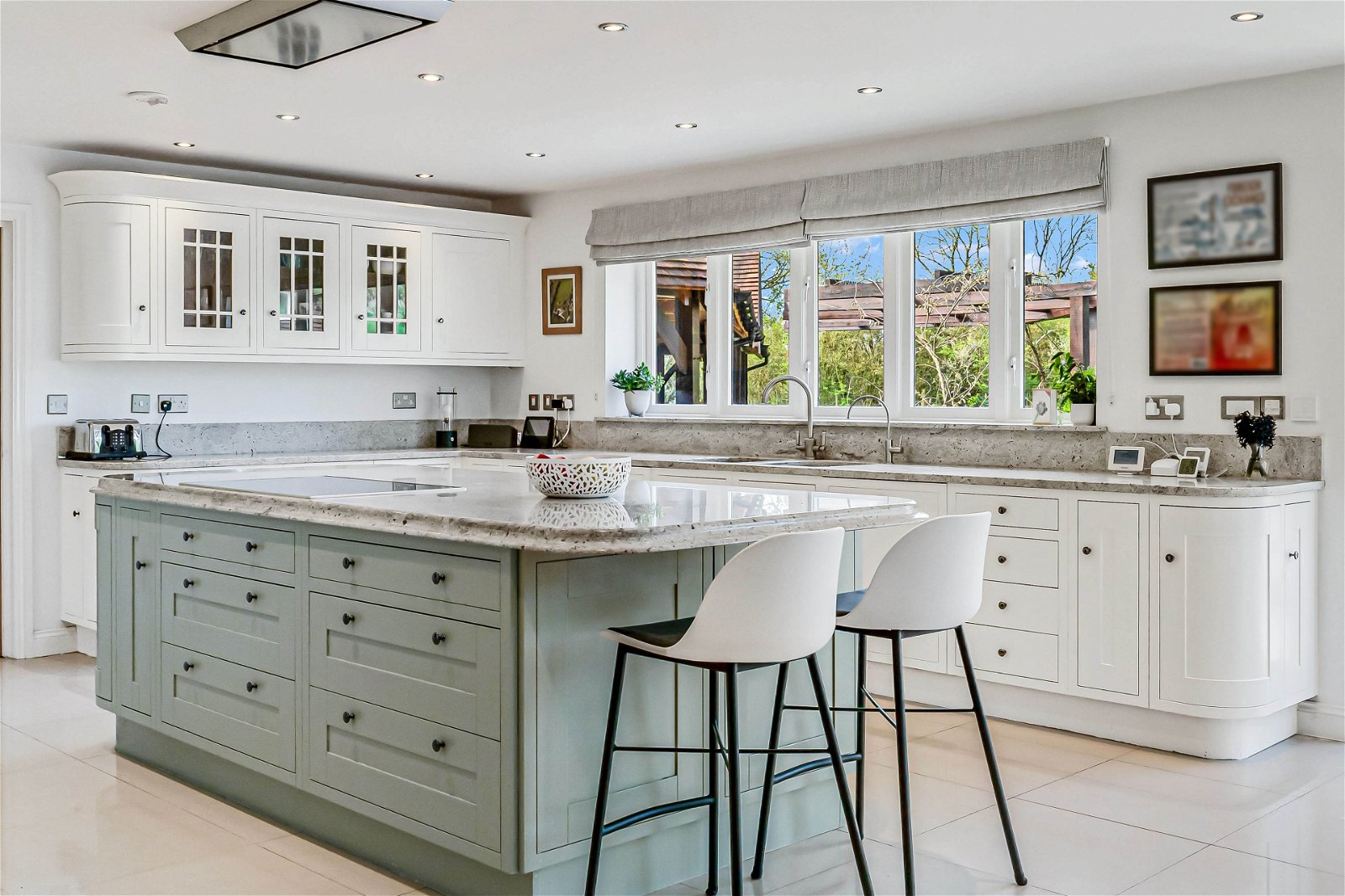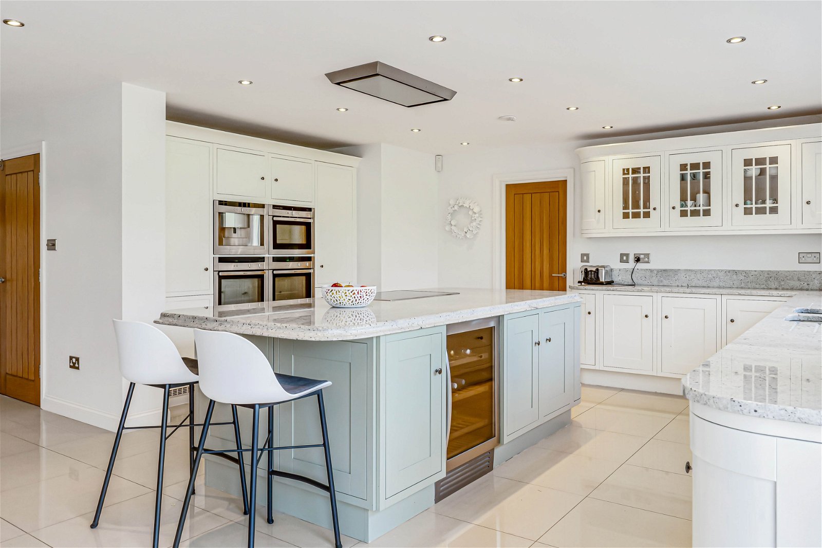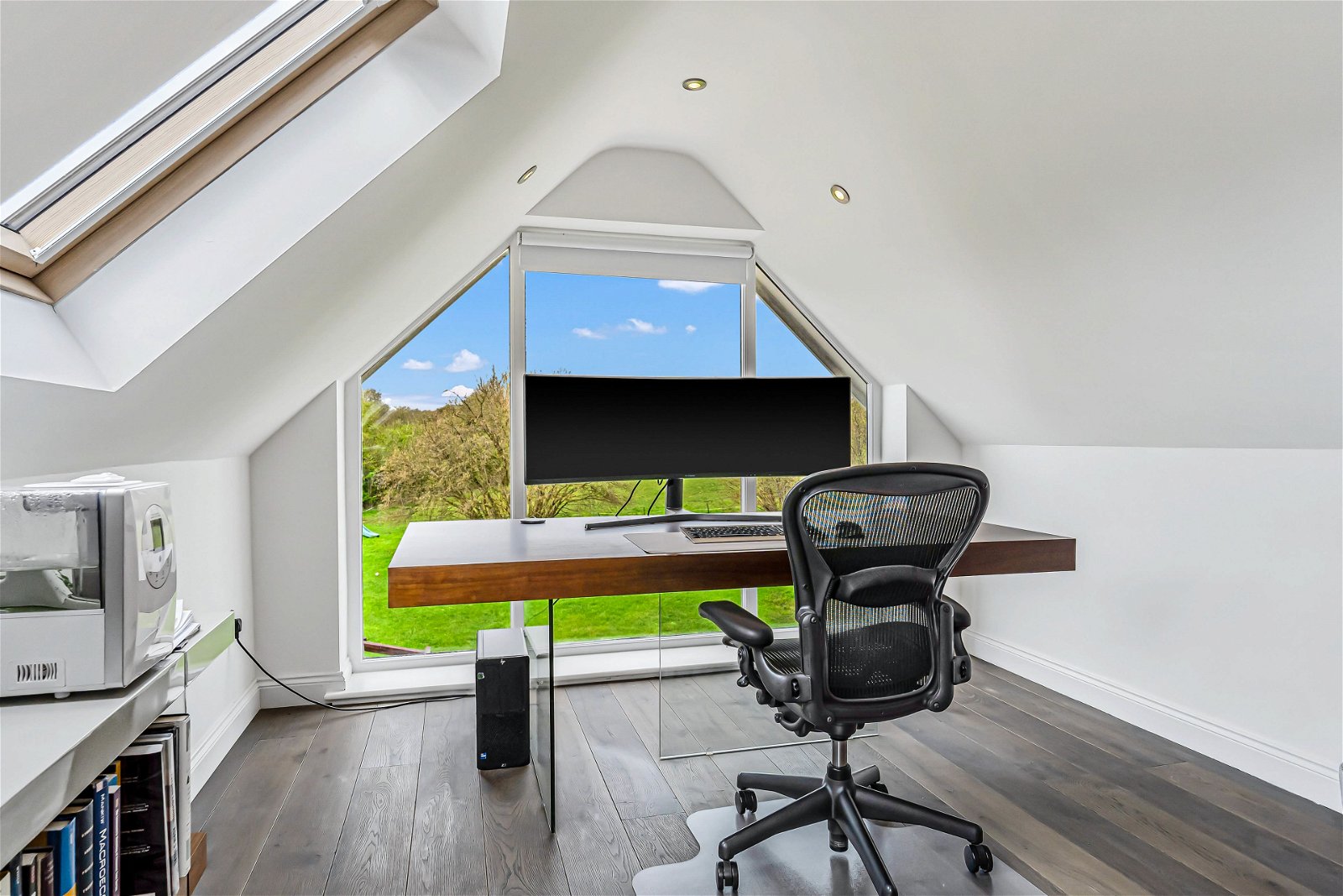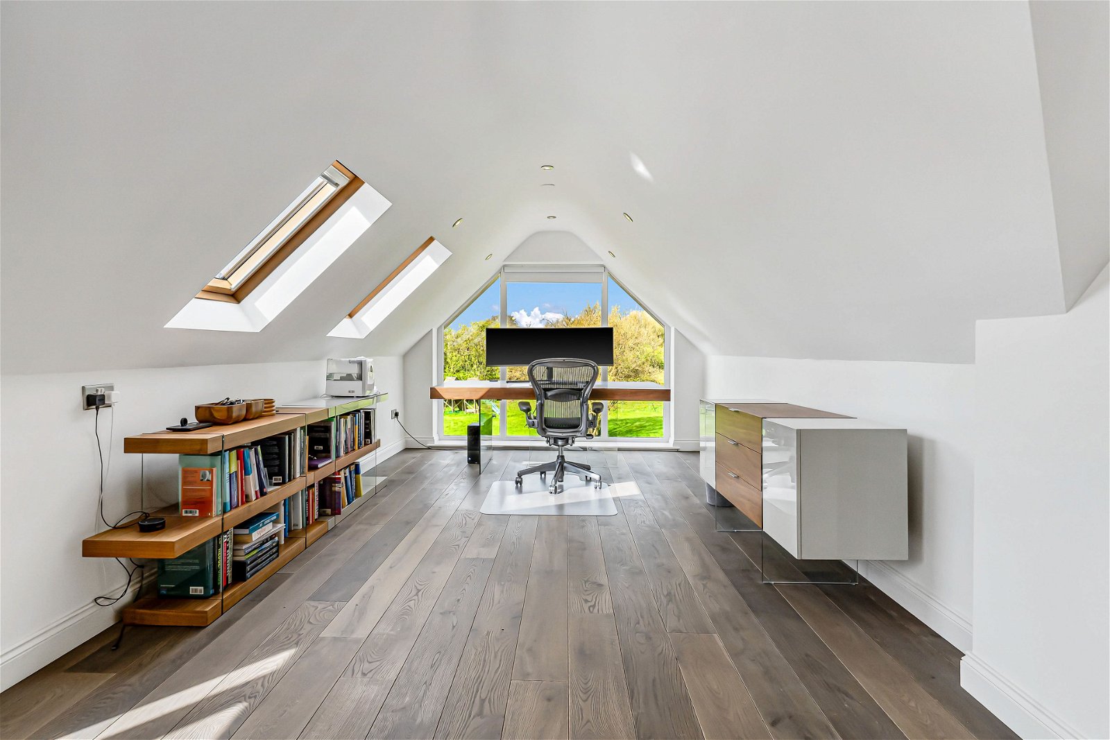 A warm, cosy and inviting entrance hallway sets the standard and scene for the rest of this fine family home. To one’s left is the living room, an excellent size with duel aspect views and ease of access outside, the perfect room for a large family to gather in. Opposite the living room is the playroom and second lounge/snug, both positioned with front views and both proportionally perfect in size. Moving further down the entrance hallway you enter the kitchen diner, this is the stand out room for the ground floor and the heartbeat of the home with amazing views of the rear gardens, a sizable central island is topped with a granite worksurface with plenty of base and wall storage units with a chest height triple oven and built in coffee machine which are all NEFF and there is additional space for a large dining room table, this is a perfect room to entertain, party and to dine in. In addition there is a sizable utility room. The first floor comprises of the master suite which occupies the full width of the house with large en-suite and walk through dressing room. There are two further double rooms and a family bathroom on this floor. The second floor hosts two very long rooms which stretch the width of the house with one having its own en-suite but both having the most incredible rear elevated views of the grounds.