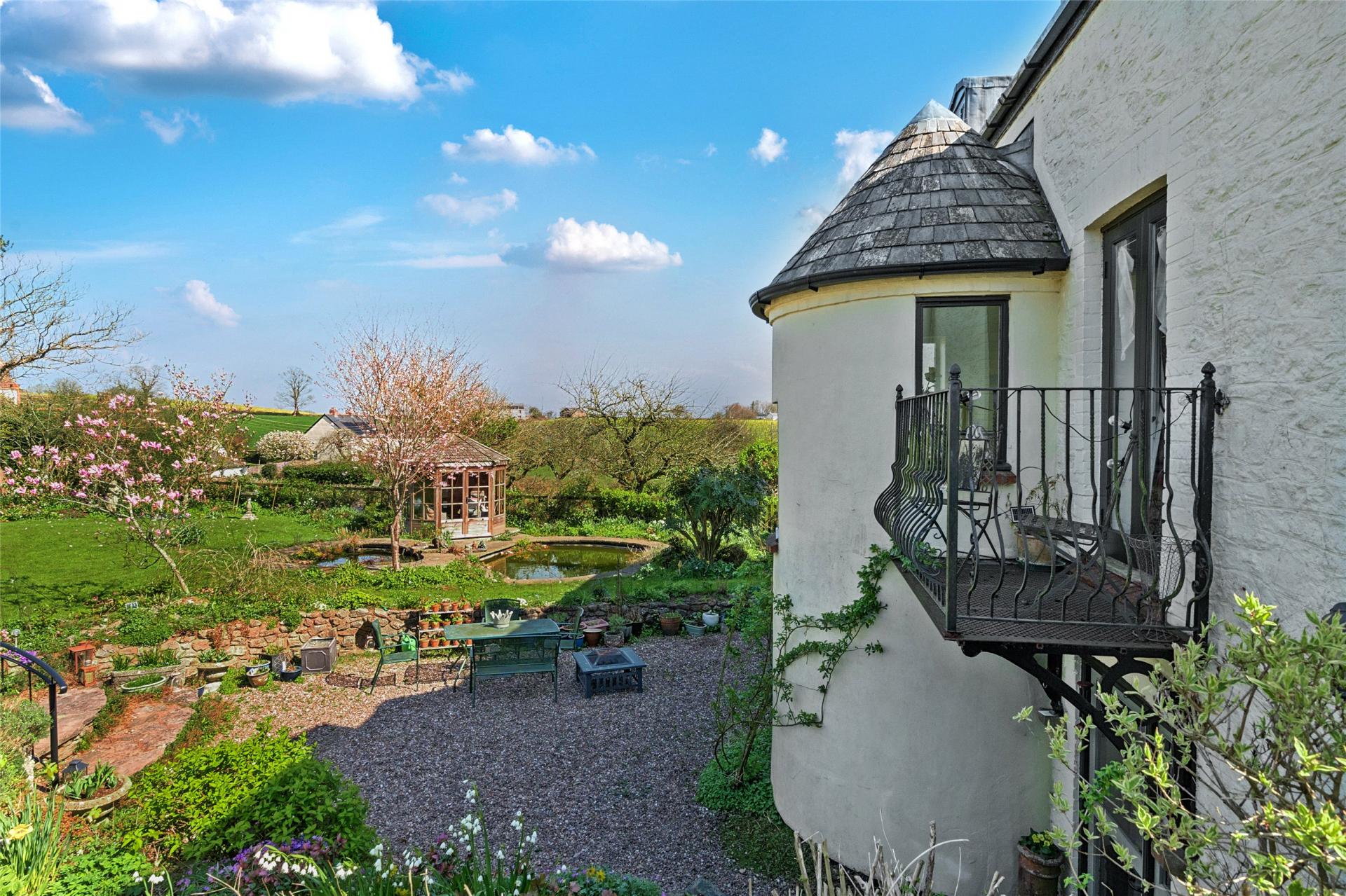 Upstairs from the large bedrooms to the comfortable study/ withdrawal room and wrought iron balcony with stunning views of the garden and surrounding countryside, there is so much character.