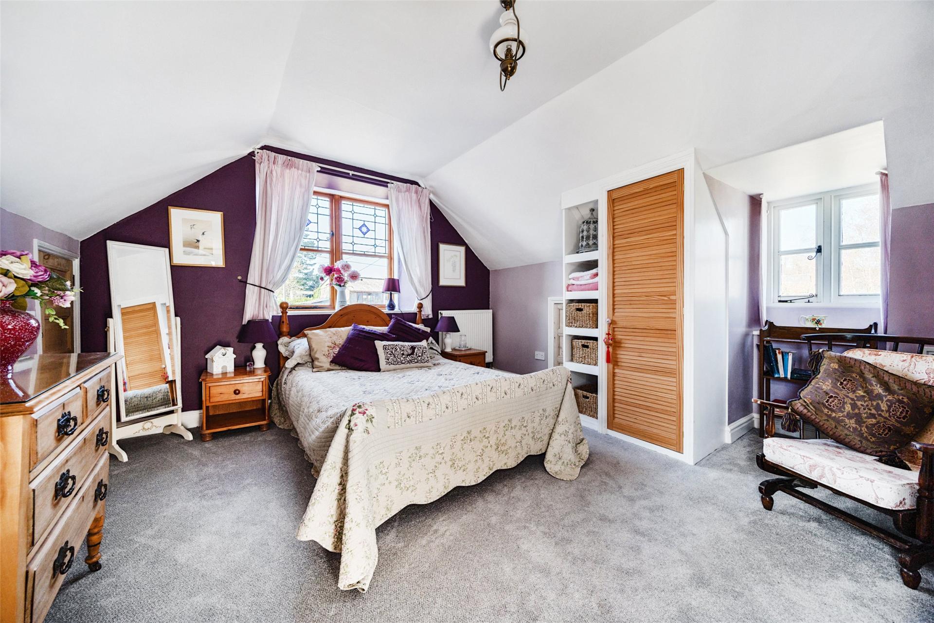 Also on this floor is the principal double bedroom, enjoying countryside views from two aspects, along with a generous en-suite bathroom. A walk-in wardrobe cupboard is conveniently located off the landing, adding further practicality to this well-designed space.