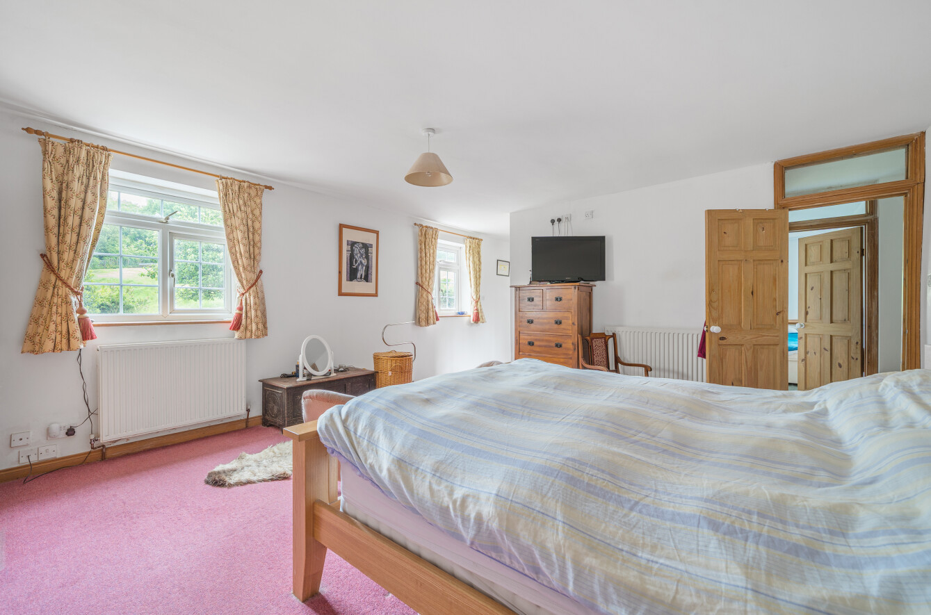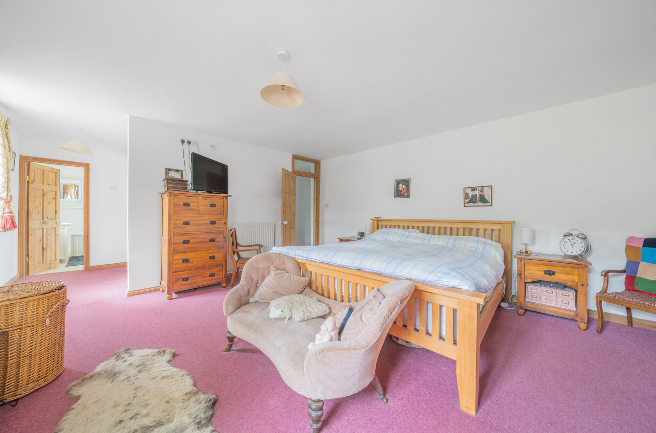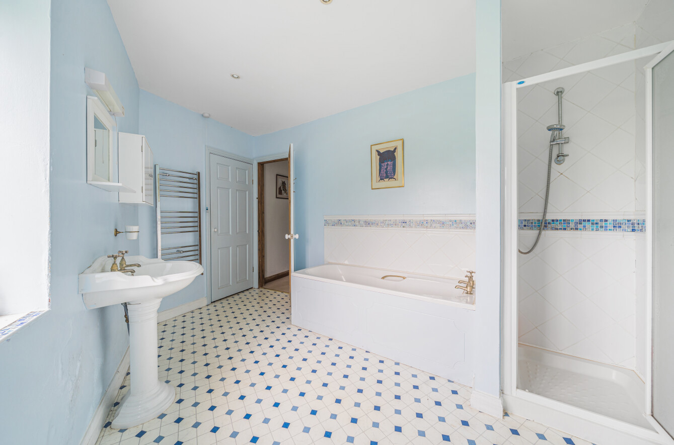 On the first floor, you'll find five bedrooms, each with its own individual charm and all enjoying wonderful views across the surrounding countryside. The principal bedroom benefits from its own en-suite and a useful dressing area, creating a peaceful and private retreat. A further well-appointed family bathroom serves the remaining rooms and includes both a separate bath and a walk-in shower, ideal for busy mornings or relaxing evenings.