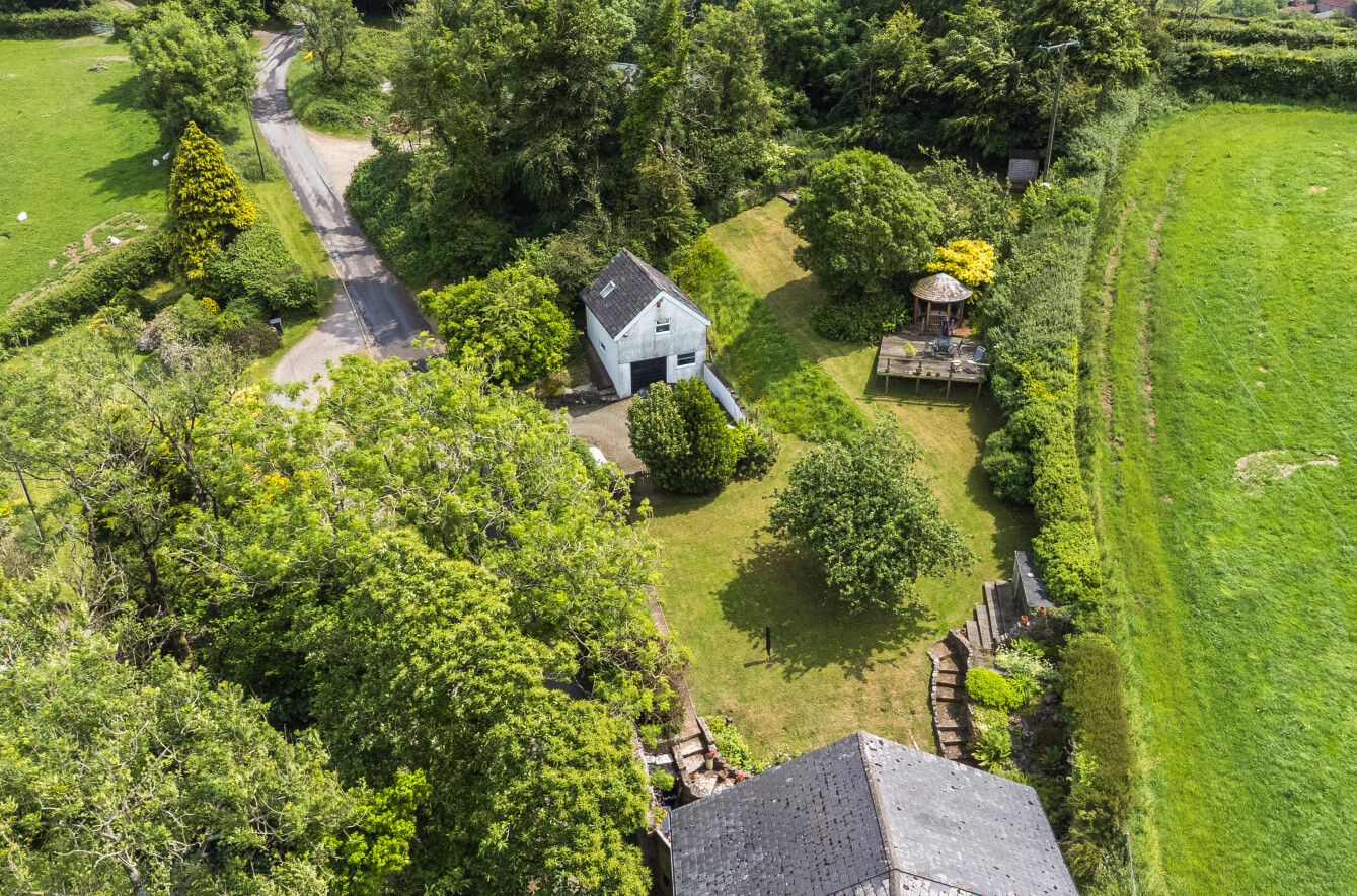 An elevated summer house with a decked terrace provides the perfect spot to unwind with an evening drink and take in the sunset. The further up the garden you go, the more breath-taking the views become. The detached garage and workshop also feature a separate studio/living space above, deal for guests, working from home, or potential income with open work/living space and en-suite shower room.