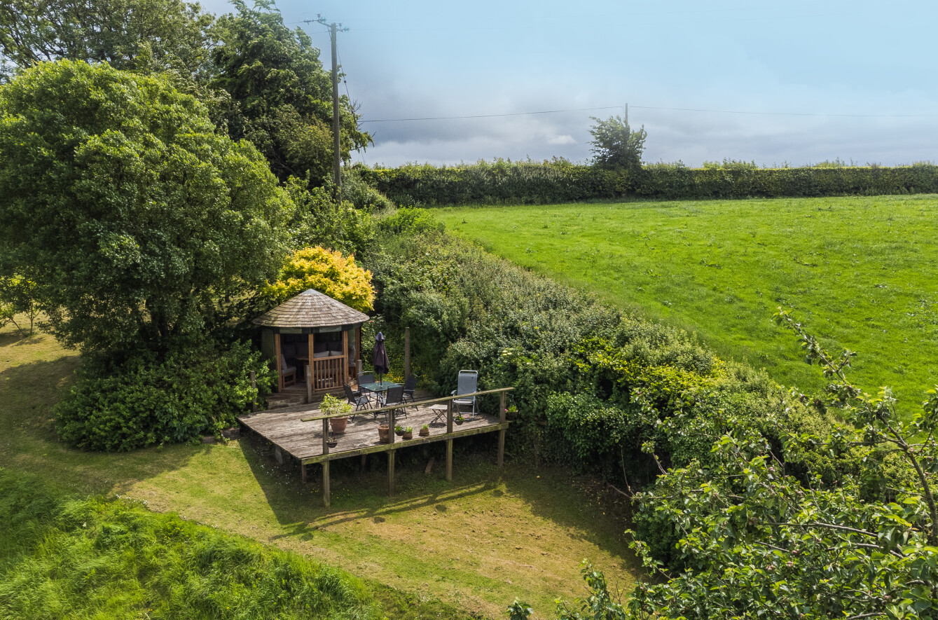 - Total plot of around 0.33 acres with suntrap garden, elevated deck, and summerhouse