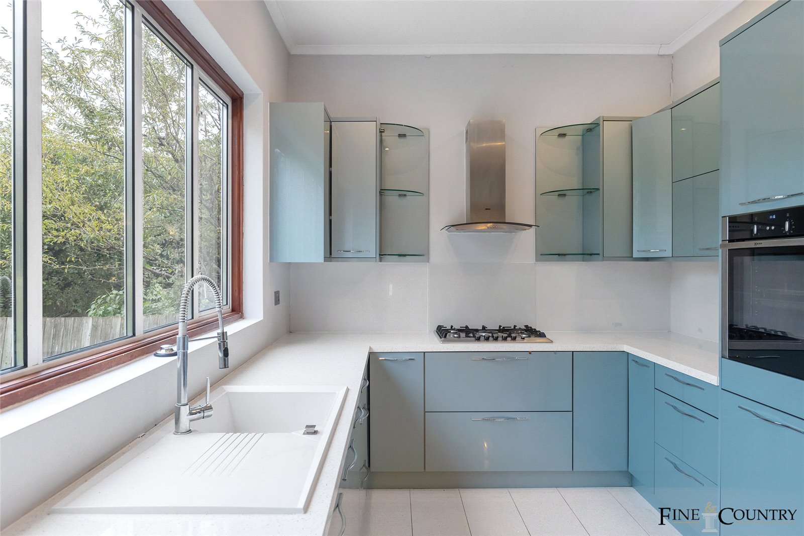 The journey continues into the fully modernized kitchen, boasting sleek cabinetry and state-of-the-art appliances. Ample natural light streams in through large windows, overlooking the serene garden, ensuring every cooking experience is both a delight and an interaction with the outdoors. The kitchen's design maximizes both functionality and aesthetic appeal, with clean lines and a spacious layout that caters to both culinary enthusiasts and casual cooks alike.