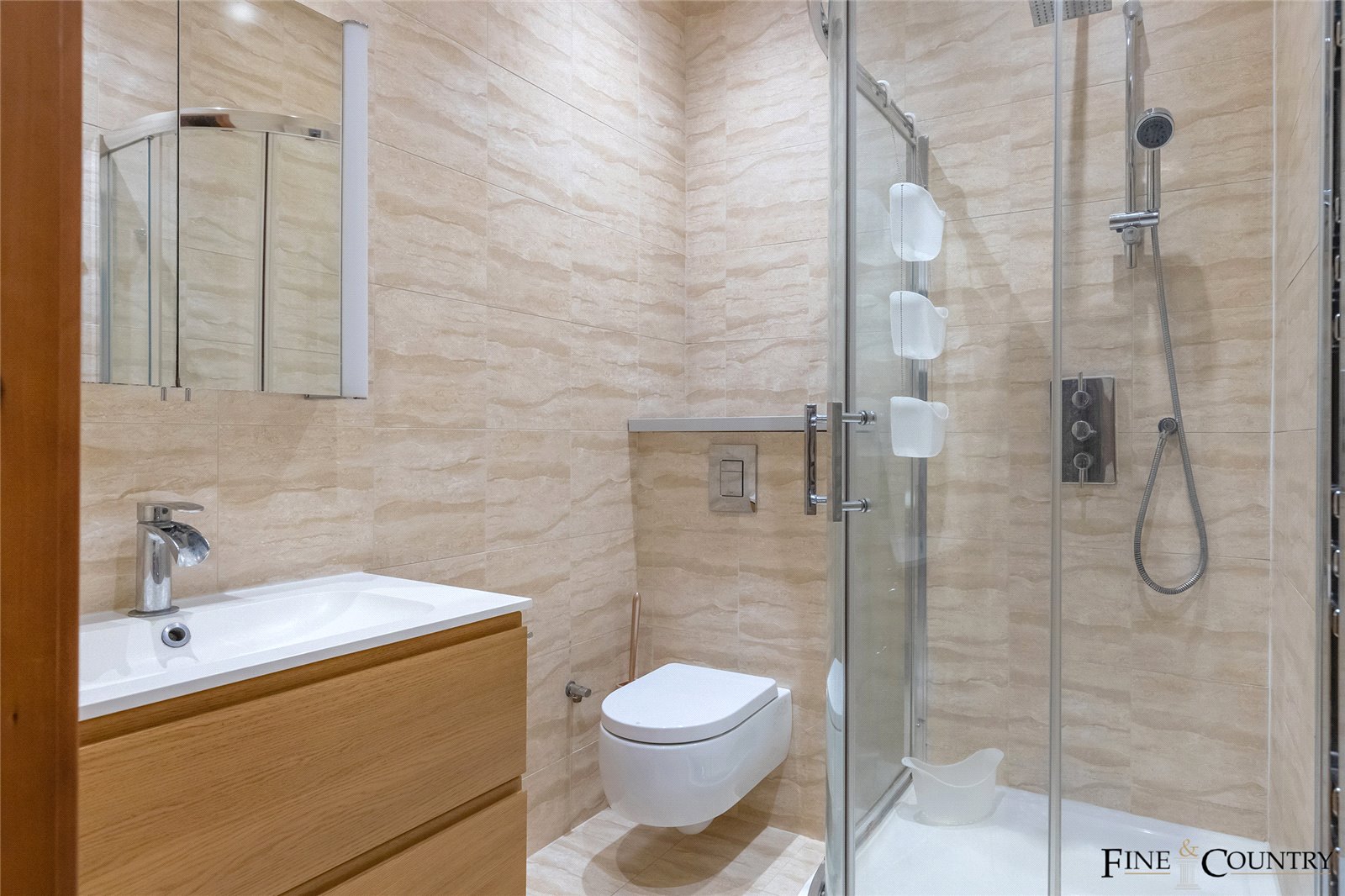 Each bedroom in this exquisite flat offers its own unique charm, with the master bedroom featuring an en-suite bathroom and a walk-in wardrobe, providing a private retreat for relaxation and personal care. Each bedroom is designed with comfort in mind, are bathed in natural light and feature plush carpets and neutral décor to suit any taste. The additional bathrooms echo the home's theme of modern elegance, equipped with high-end fixtures, and finishes that turn routine into a luxurious experience.