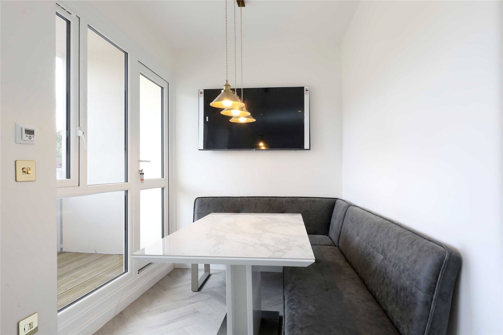 The expansive kitchen, complete with a seating area, is fitted with premium appliances and underfloor heating. The apartment also features a stylish family bathroom with a luxurious his-and-her basin, alongside a separate WC for added convenience. TVs are installed in every room, including the bathroom, providing the ultimate modern living experience.