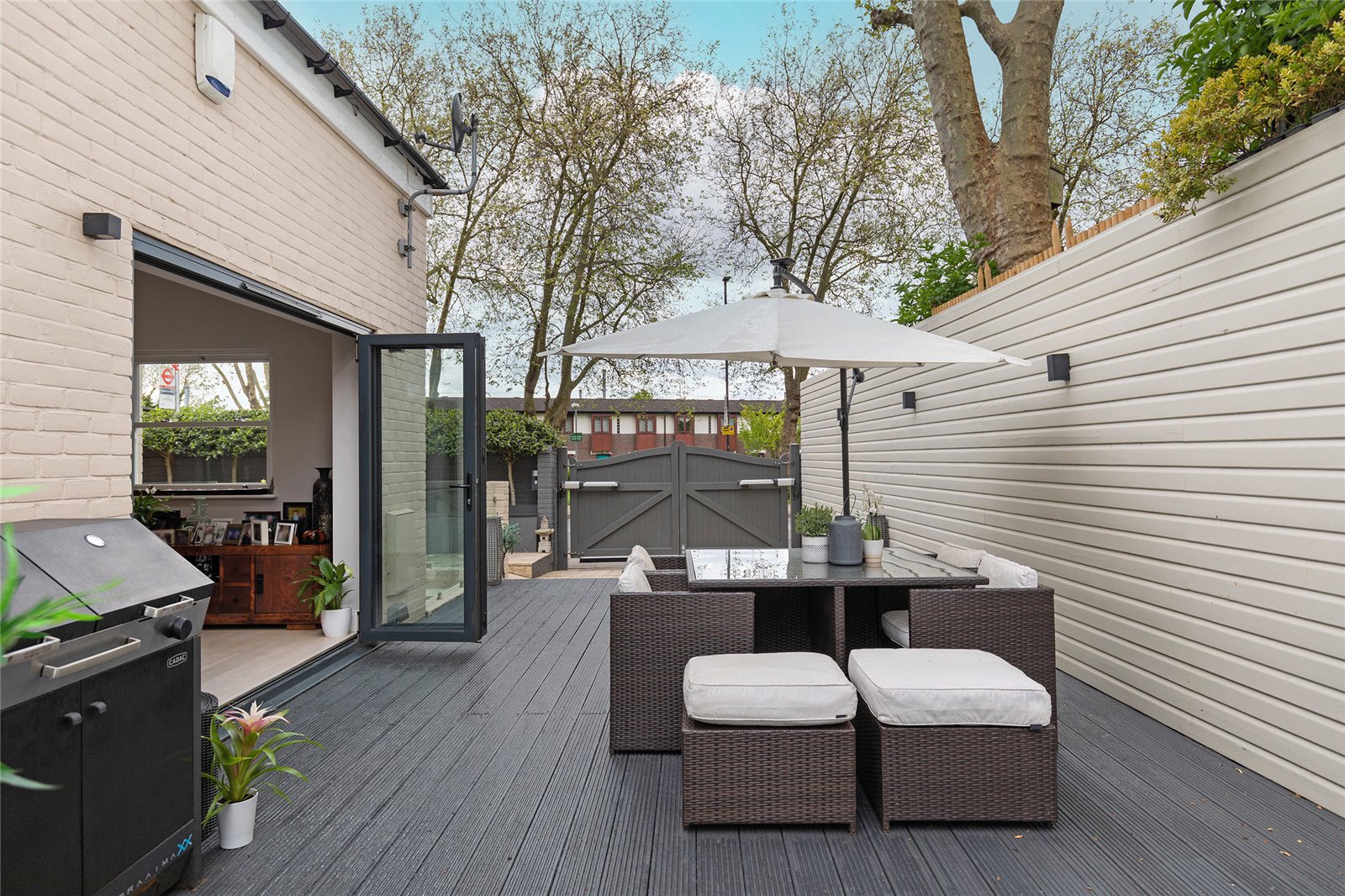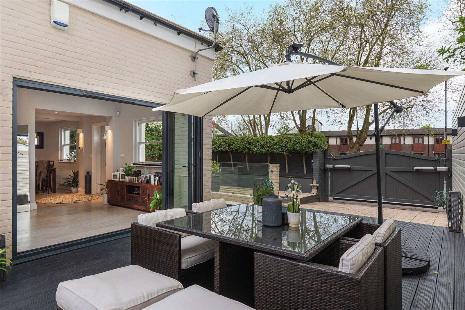 Wrapping around the side and rear of the property, the decked garden extends over an impressive 53 feet, combining durability and sustainability with minimal maintenance requirements. This outdoor oasis provides the perfect setting for al fresco dining and entertaining.