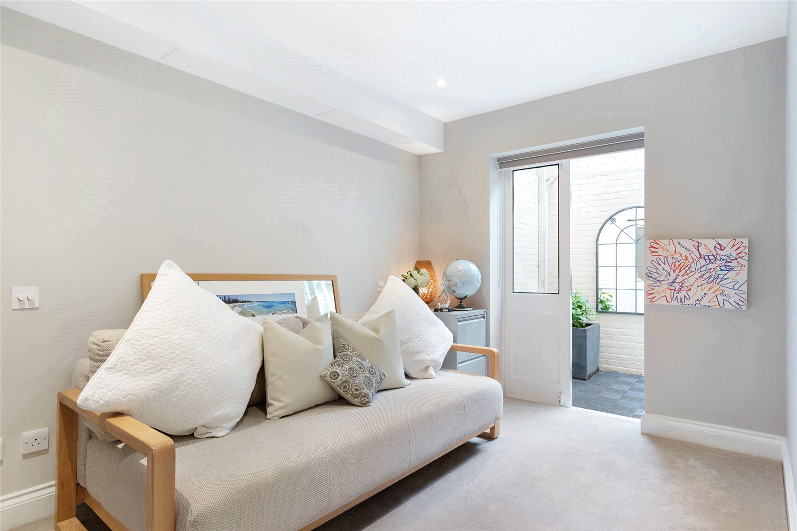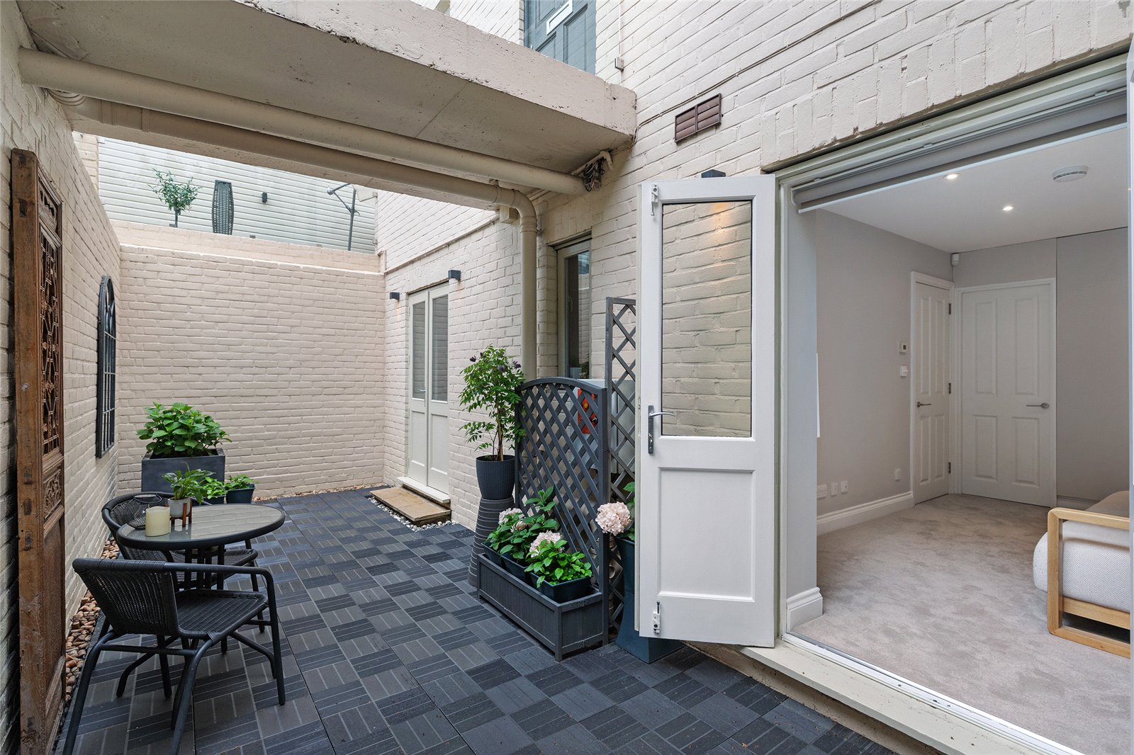 Descend to the lower ground floor, encompassing over 450 square feet, where two double bedrooms await, accompanied by two beautifully appointed bathrooms, one of which is an en-suite. Enhanced by plush carpeting underfoot and underfloor heating (by state of the art Warmup), both bedrooms also feature bespoke storage solutions and offer access to the delightful 23-foot courtyard, allowing for natural ventilation and an influx of light, elevating the living experience. This enchanting courtyard becomes a tranquil sanctuary for relaxation, reading, study, or meditation, infusing serenity into daily life.