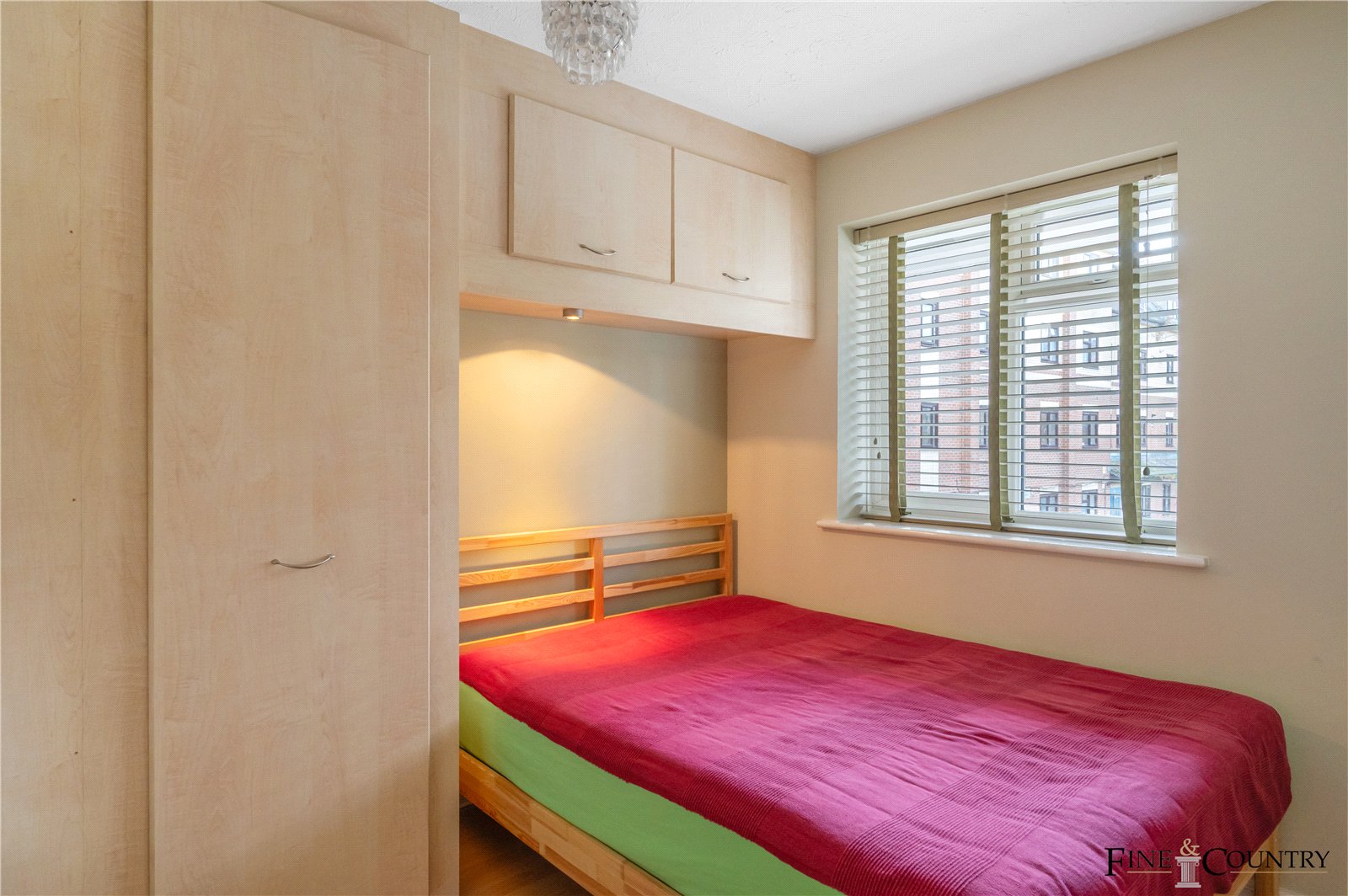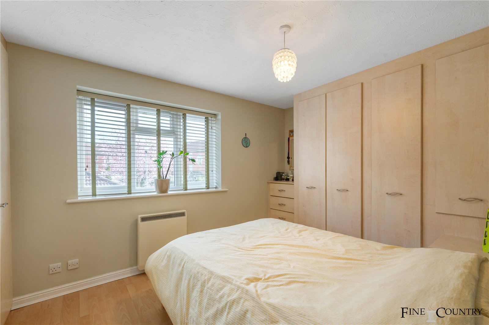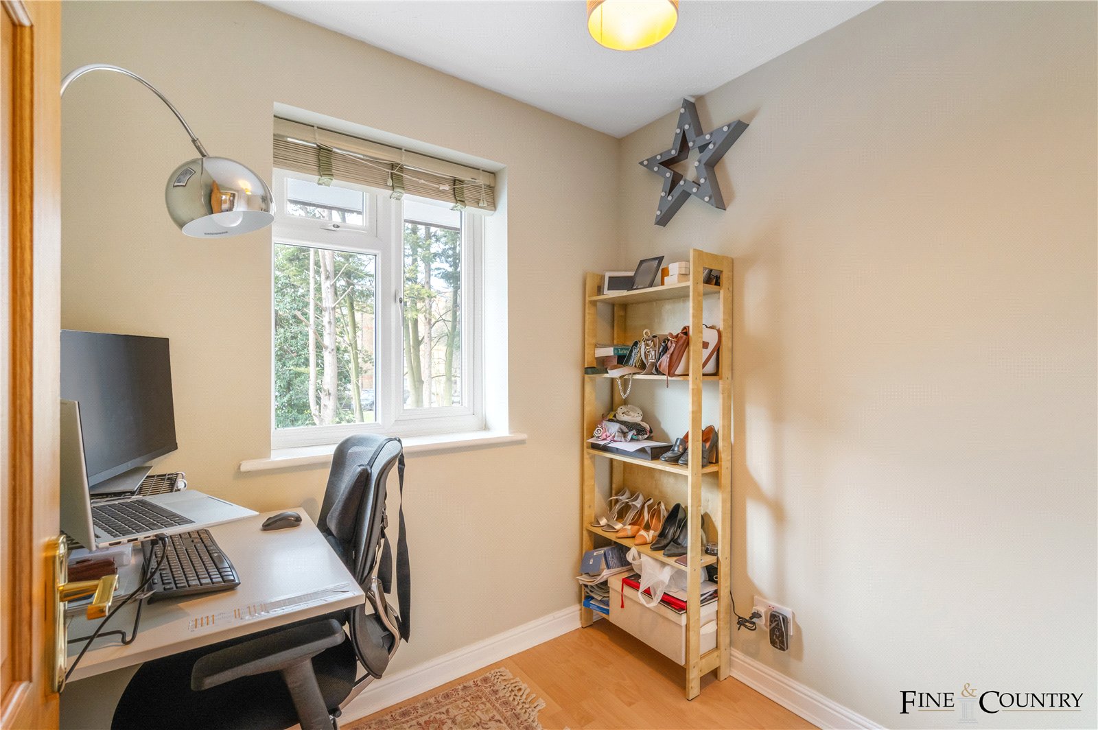 The upper floor which houses two well-proportioned bedrooms alongside a versatile study demonstrates thoughtful design, seamlessly integrating substantial storage solutions without compromising on style or spaciousness. Each room features durable laminate flooring, enhancing the contemporary aesthetic while facilitating maintenance. The built-in storage units, cleverly designed to maximize space, are colour-coordinated with the walls, maintaining a streamlined appearance that complements the overall design theme. Large windows in each bedroom not only allow for ample natural light but are also fitted with new, colour-coordinated Venetian blinds that enhance both privacy and the rooms aesthetic appeal. The largest bedroom is particularly spacious, equipped with extensive built-in wardrobes that offer generous storage without sacrificing the room's airy ambiance.
