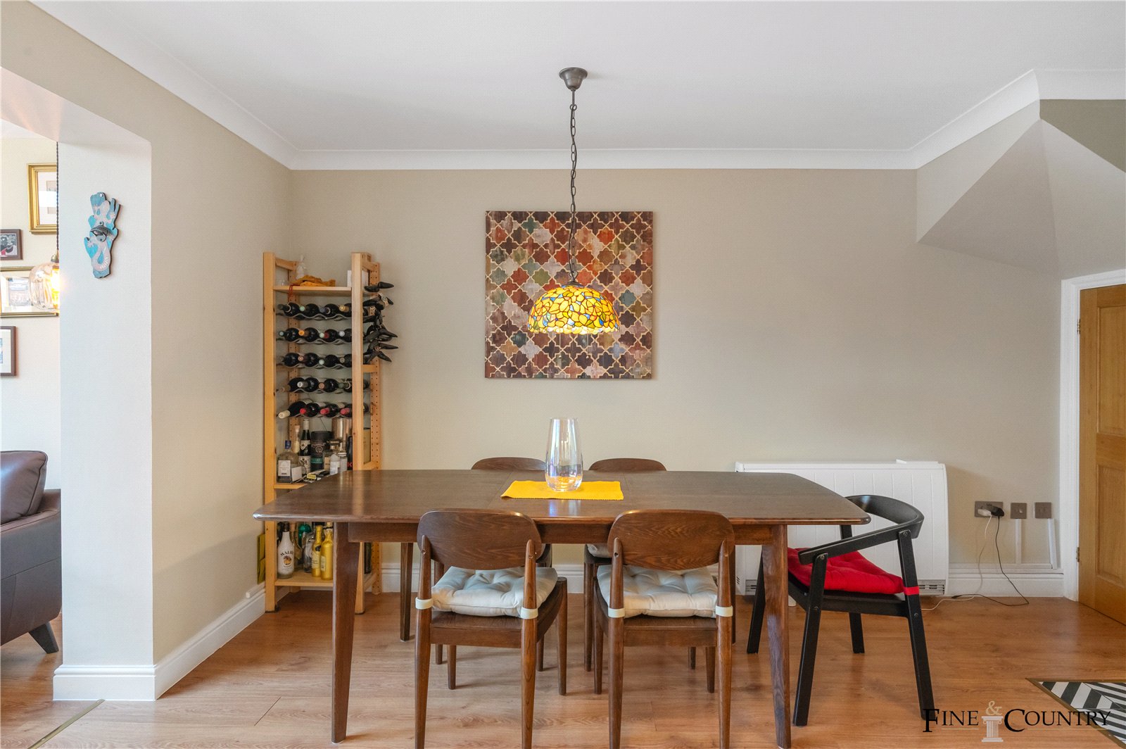 The approach to the home sets a welcoming tone with its conservatory-style porch leading into a sophisticated entrance hall. The exterior facade features a harmonious blend of brickwork and timber accents, with a distinctive slate roof, inviting you into this beautifully maintained property.