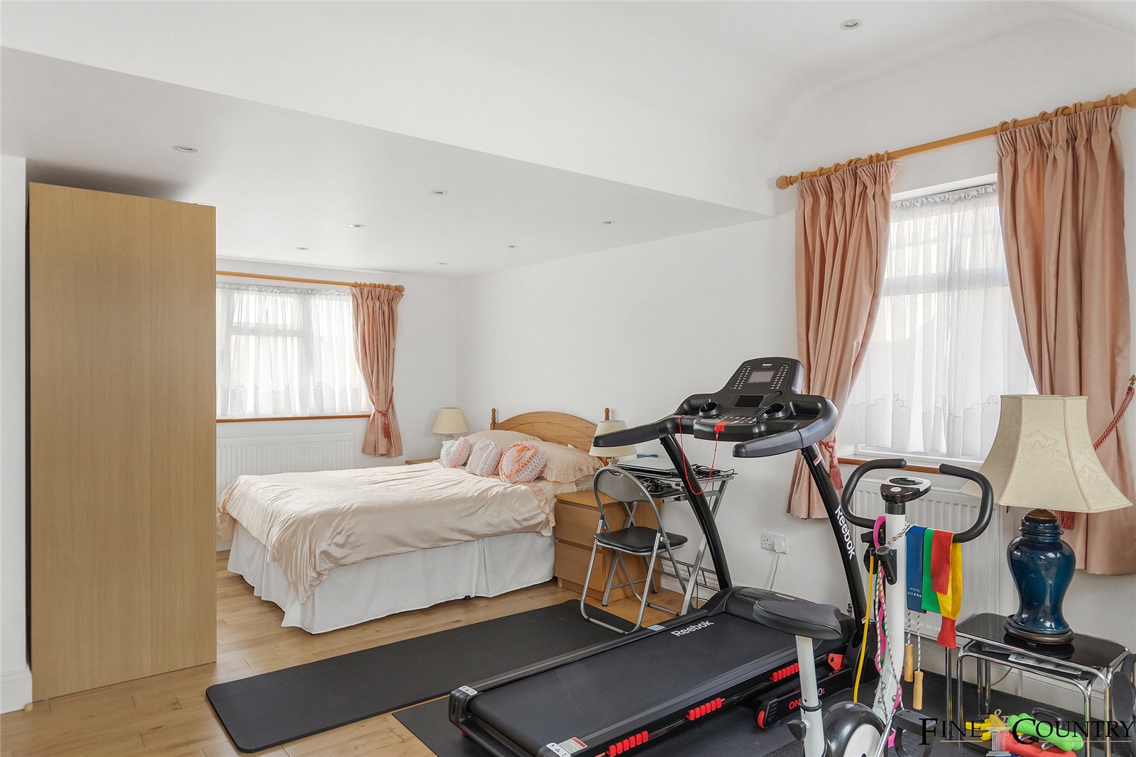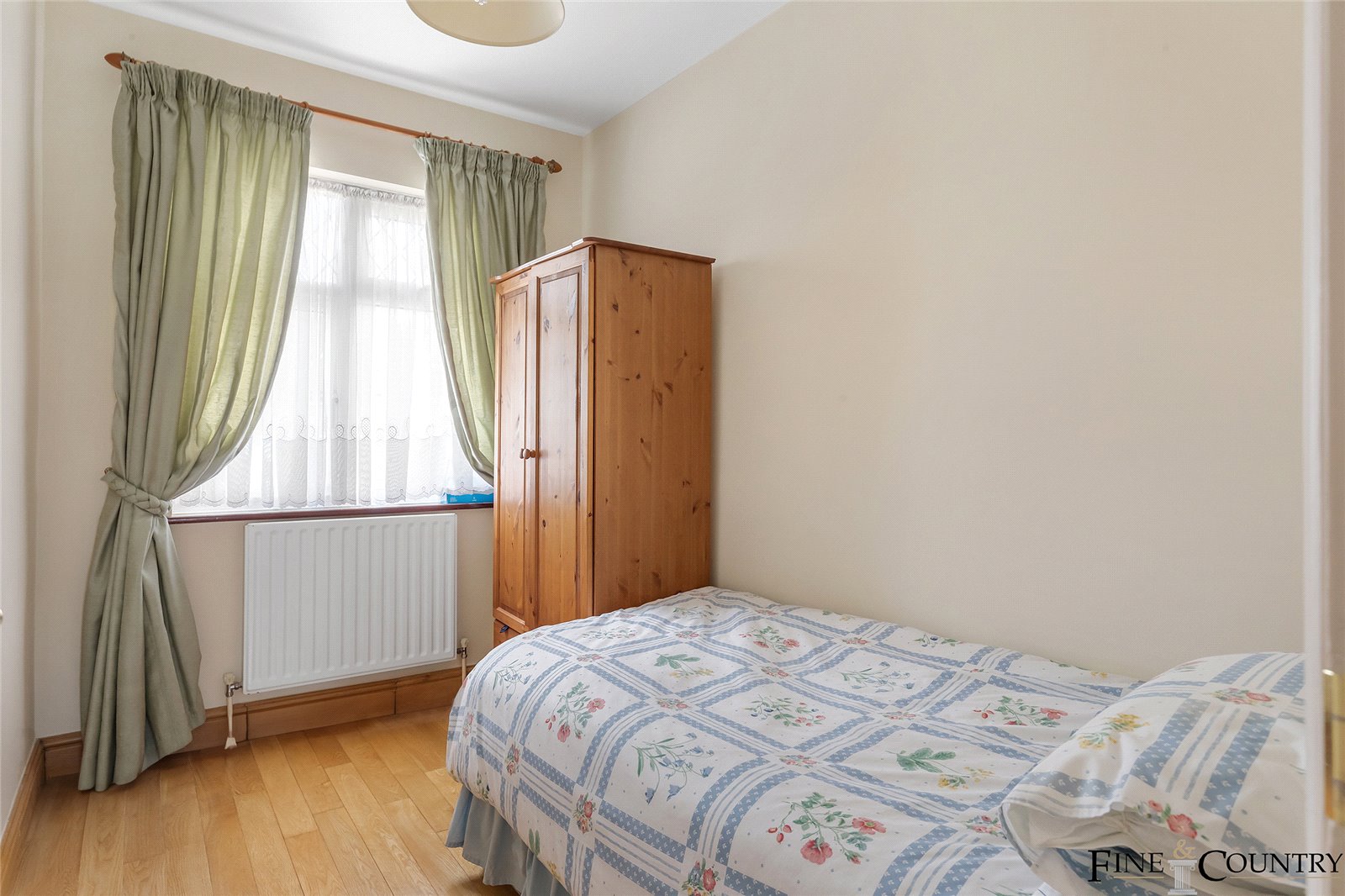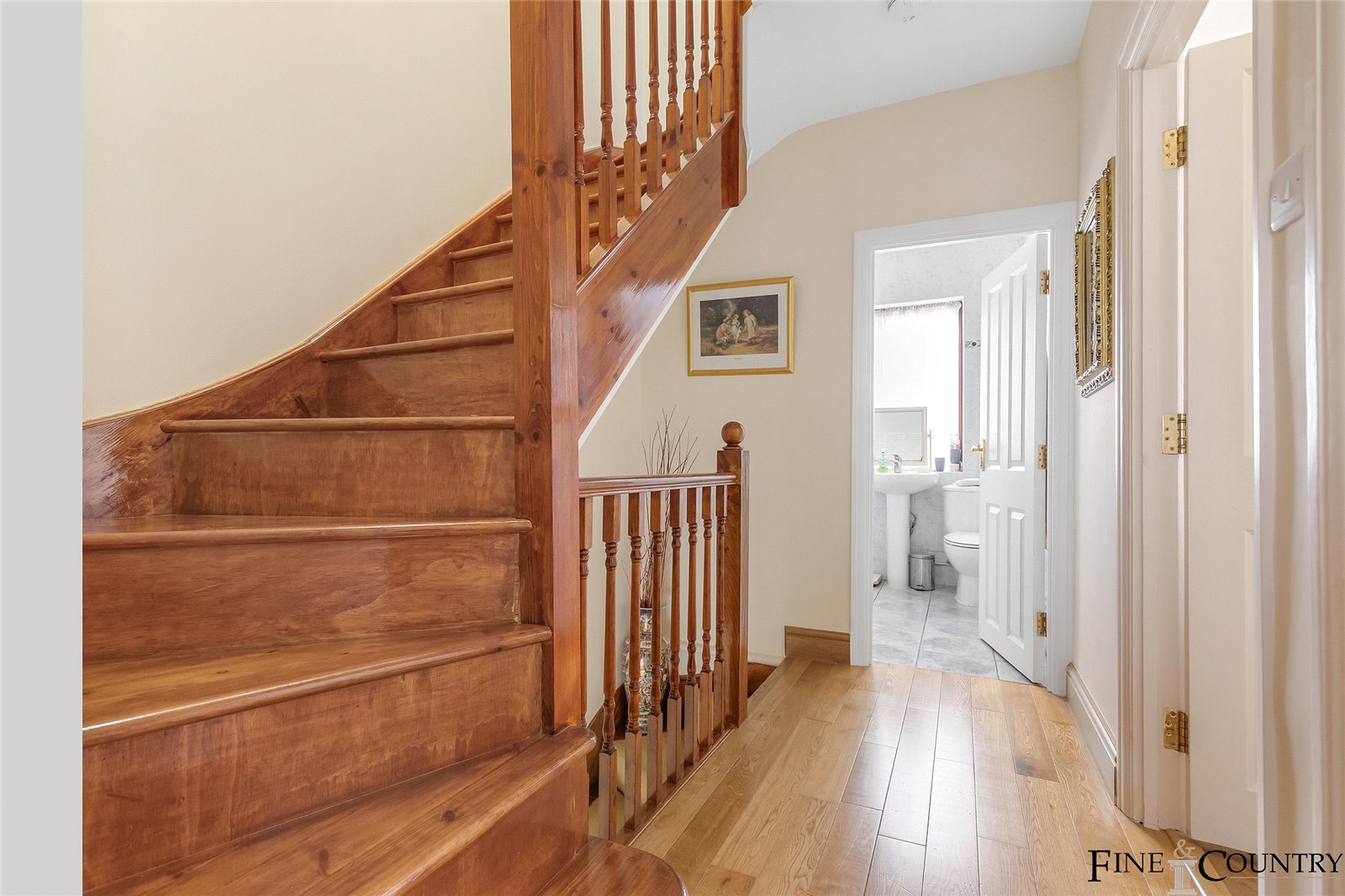 The ground floor unfurls in a choreography of space, beginning with an inviting entrance hallway that ushers you into the realm of this residence. A grand double reception room extending over 29 feet commands attention, adorned with a bay window that draws in a plethora of natural light, while a dining room emerges as an intimate enclave for convivial gatherings. Adjacent, a separate kitchen stands ready to cater to culinary aspirations, leading gracefully to a guest cloakroom that marries functionality with style. This gastronomic symphony extends outdoors to a meticulously kept large private garden, where tranquillity reigns supreme and a detached garage finds its place in the verdant embrace.