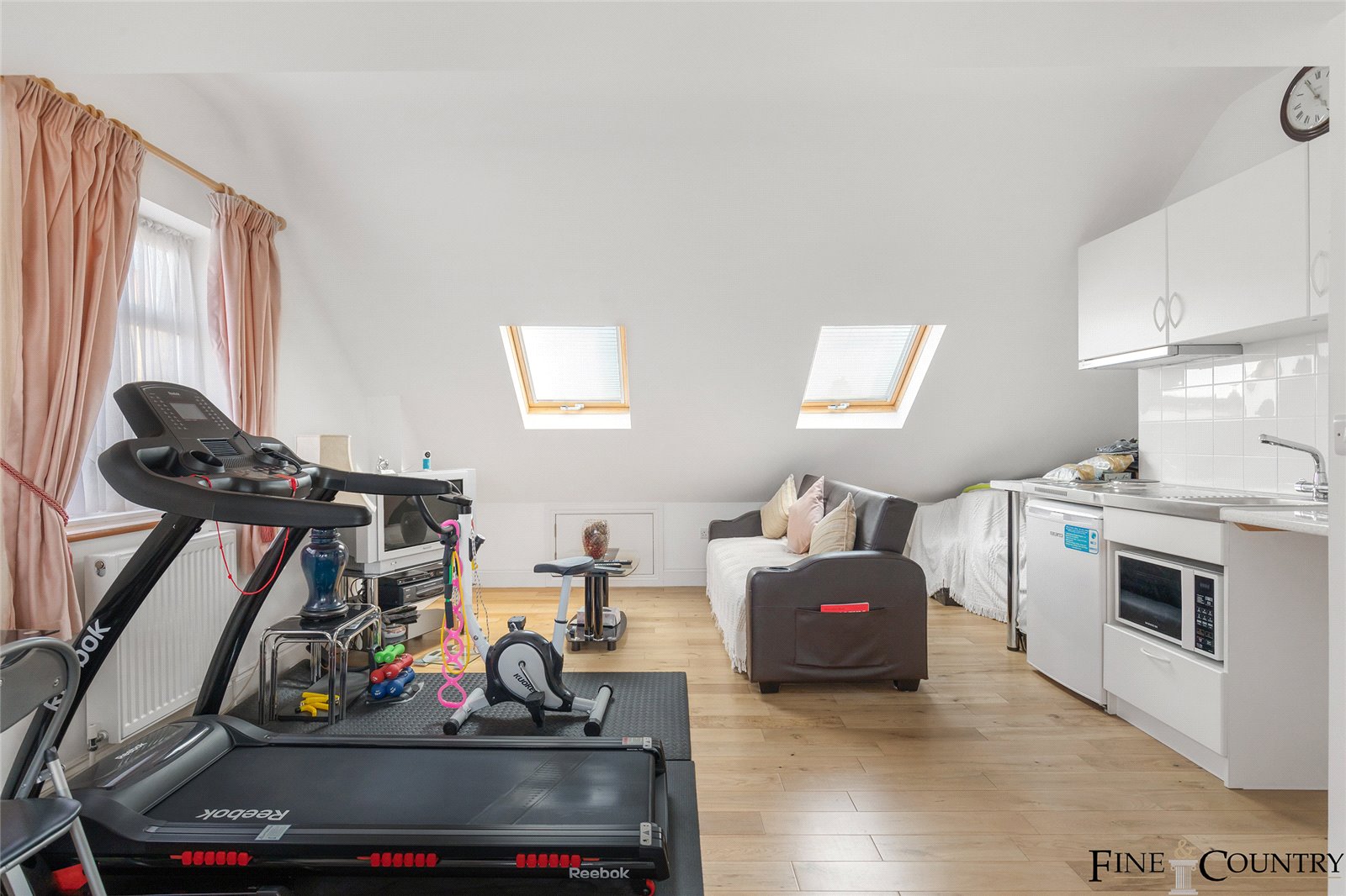 The loft space, thoughtfully extended, unveils a generously proportioned double bedroom that epitomizes comfort. Surplus storage and the addition of the bathroom on this floor ensures convenience in every corner.