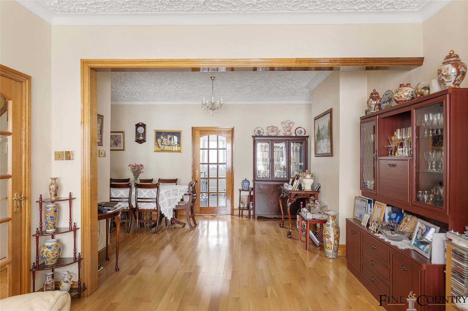 Stepping into the residence, the allure of wooden flooring embraces you, hinting at the timeless elegance that characterizes every facet of this dwelling. Off-street parking and the presence of a garage stand as testaments to the thoughtfulness invested in this home's design, reflecting a commitment to convenience and practicality.