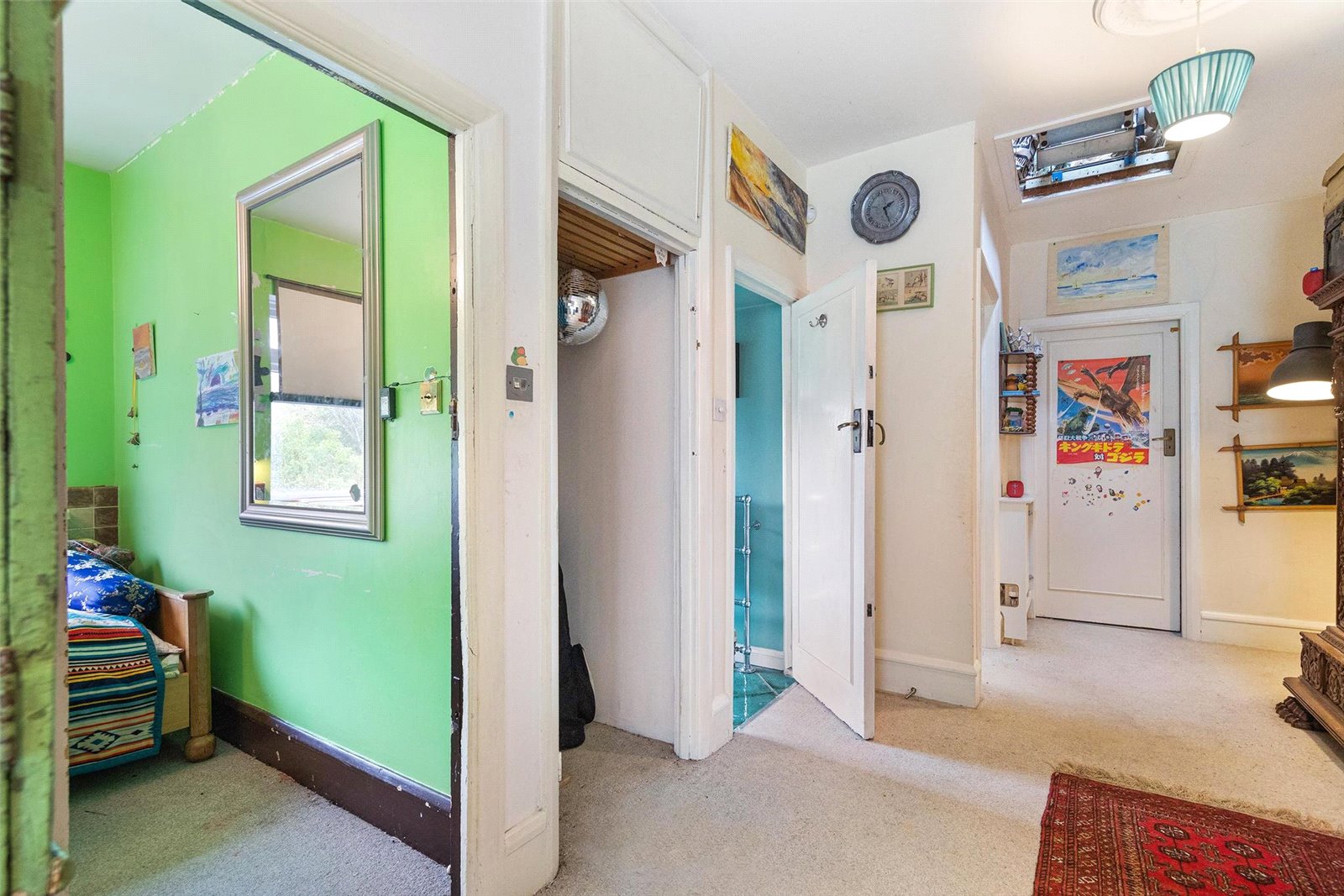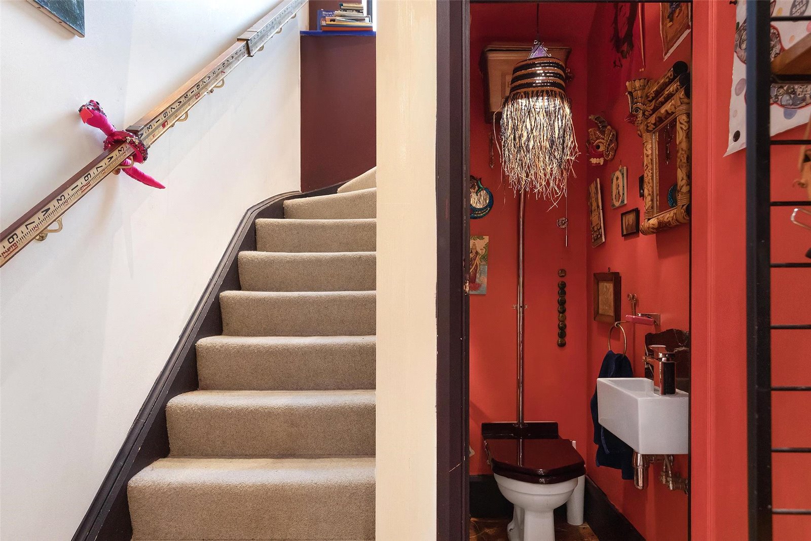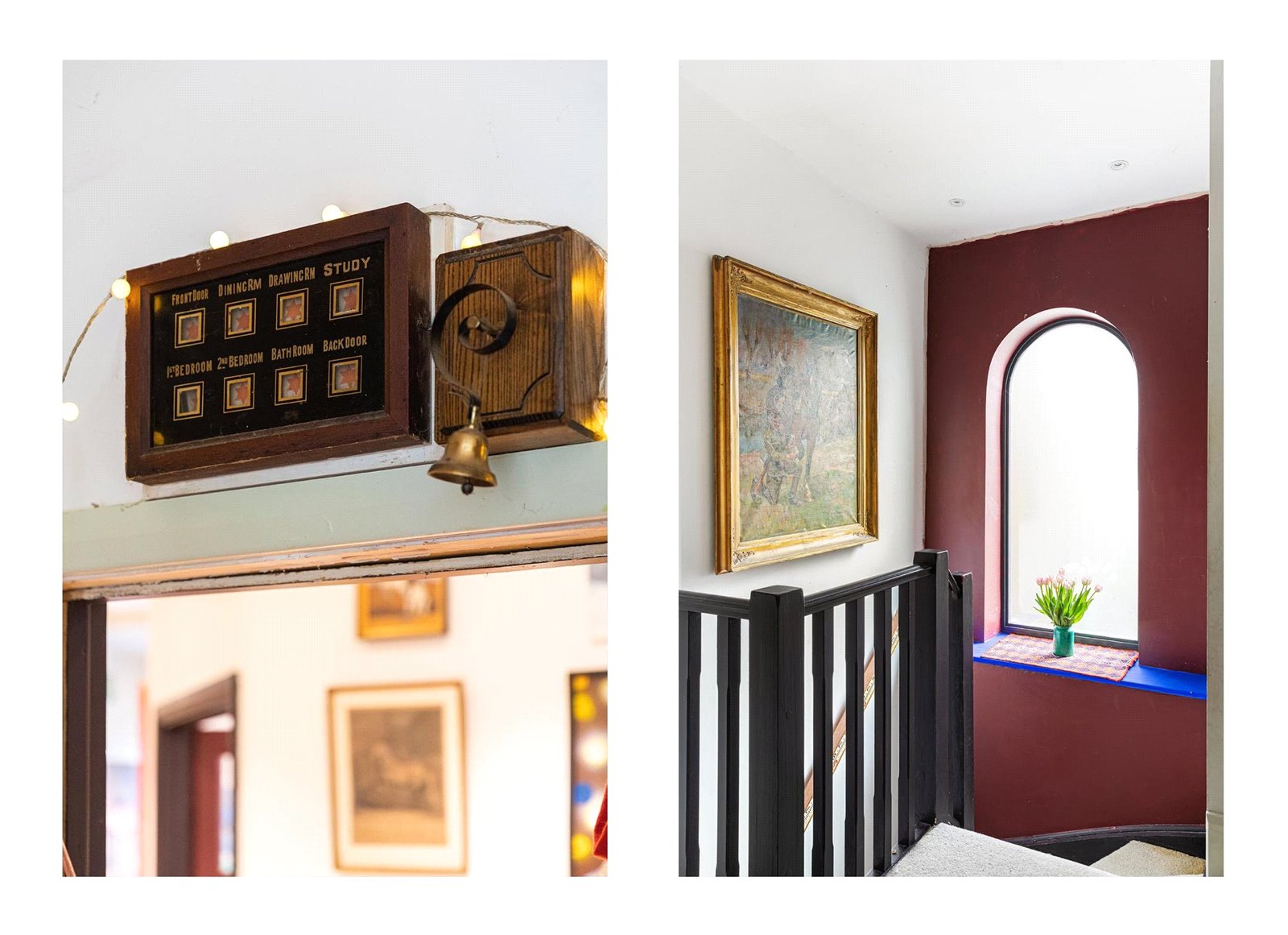 The first floor offers over 980 square feet with four bedrooms and two bathrooms, featuring 100% organic wool carpet, refurbished radiators, Burlington fixtures, and Moroccan tiles by Habibi Interiors. The property includes a fully insulated attic with ample eaves storage.