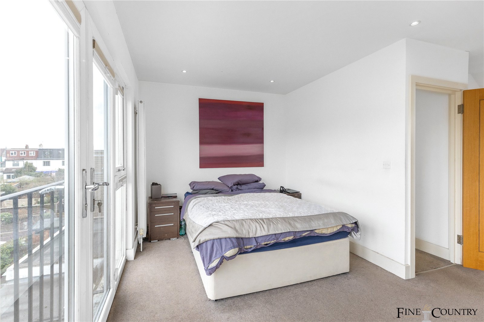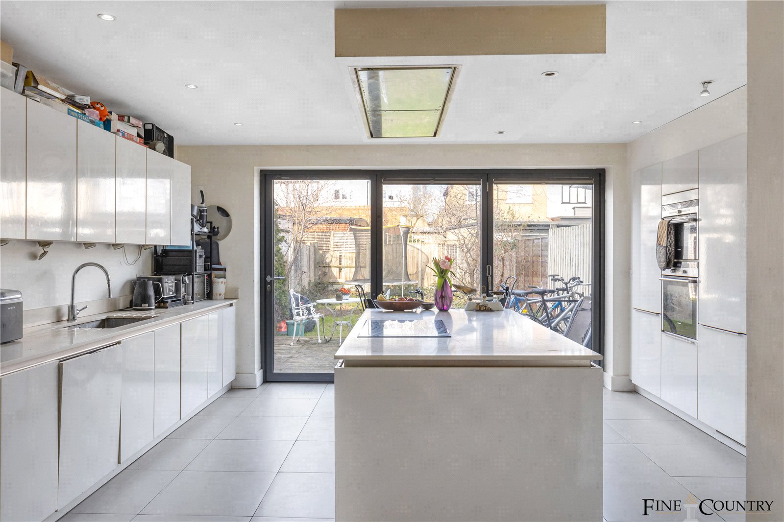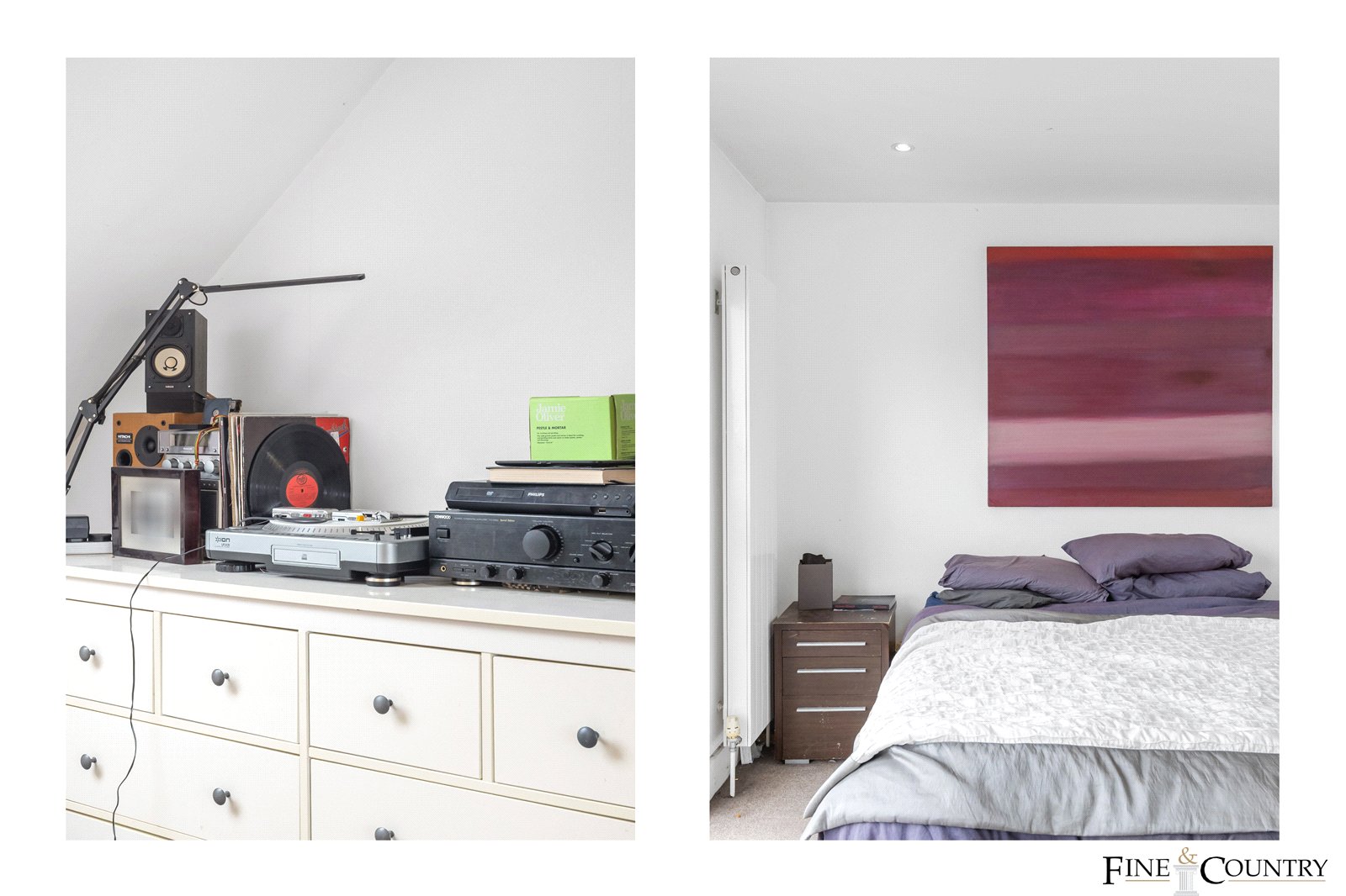 The rear garden is a true extension of the home, with sizeable space enclosed by high fences for privacy. It features a well-maintained lawn and a decking area, perfect for al fresco dining and summer barbecues. Mature planting adds a touch of nature and tranquillity to this urban oasis.