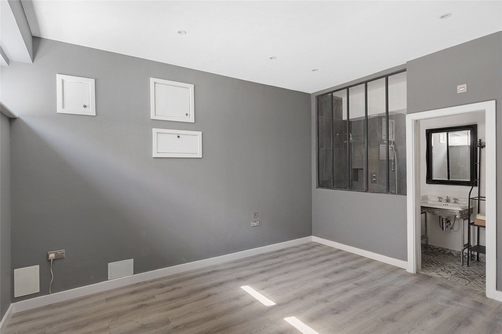 As you step onto the hardwood floors of the ground floor, a world of comfort and convenience unfolds. Hosting a double bedroom with an en-suite bathroom, this level ensures privacy and tranquillity. The lofty ceilings and clerestory windows bathe the space in natural light, showcasing the exquisite craftsmanship that permeates every corner. The generous street-level fenestration pays homage to the workshop unit style commonly found in London mews buildings. Further enhancing the play of natural light and embracing a strong architectural element that blends historical styles, the crittall windows make a striking impact. With their graphic steel frames, they imbue the space with a contemporary and industrial aesthetic.