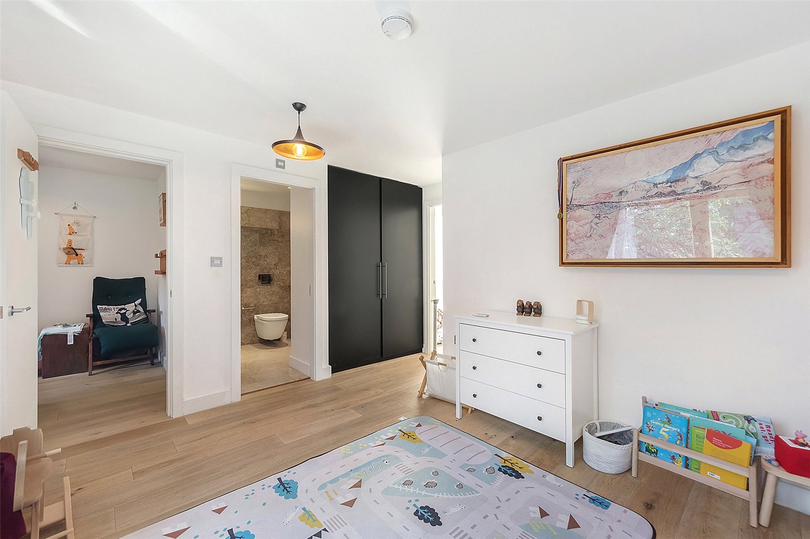 The first floor is home to two sizeable bedrooms. The bedroom at the front of the property enjoys an en-suite bathroom with a nursery room attached. The bedroom at the rear is the principal bedroom, which not only enjoys the benefit of a large en-suite bathroom with a walk-in shower, separate WC, and double basin vanity unit, but also features a walk-in wardrobe and a large, private, south facing decked terrace.