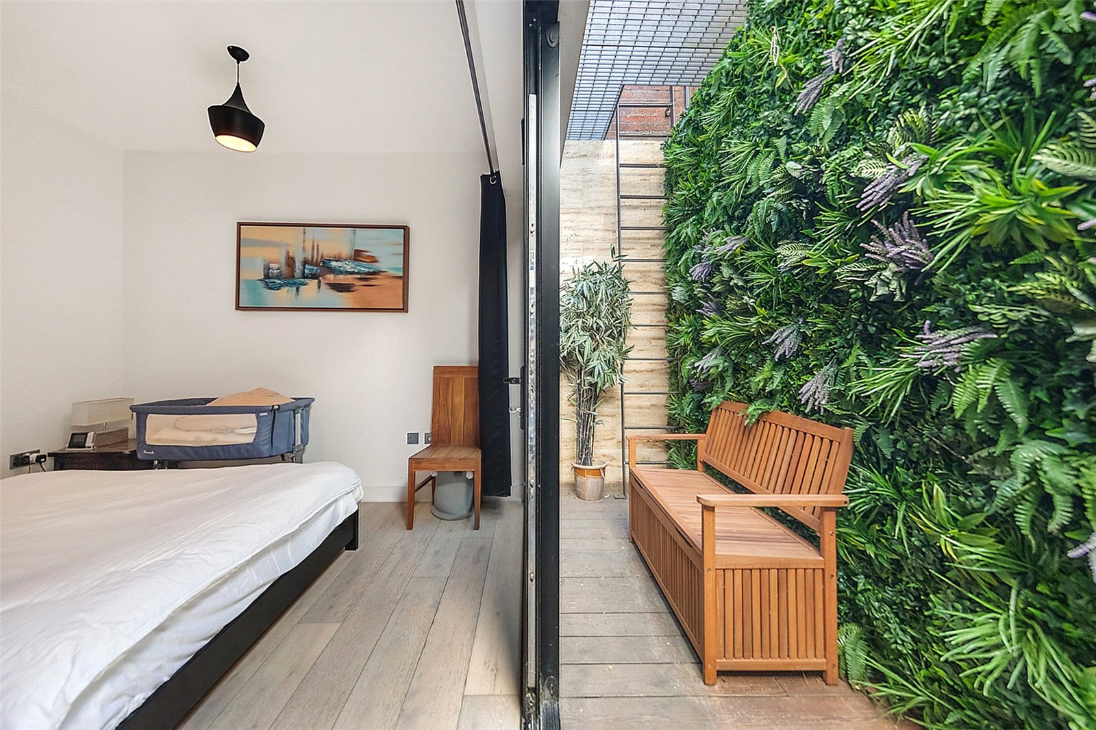 The secluded garden spans over 50 feet in length and features a patio section ideal for al fresco dining, a manicured lawn for relaxing and sunbathing and a versatile sheltered area at the rear, which can be used as a playground or storage.