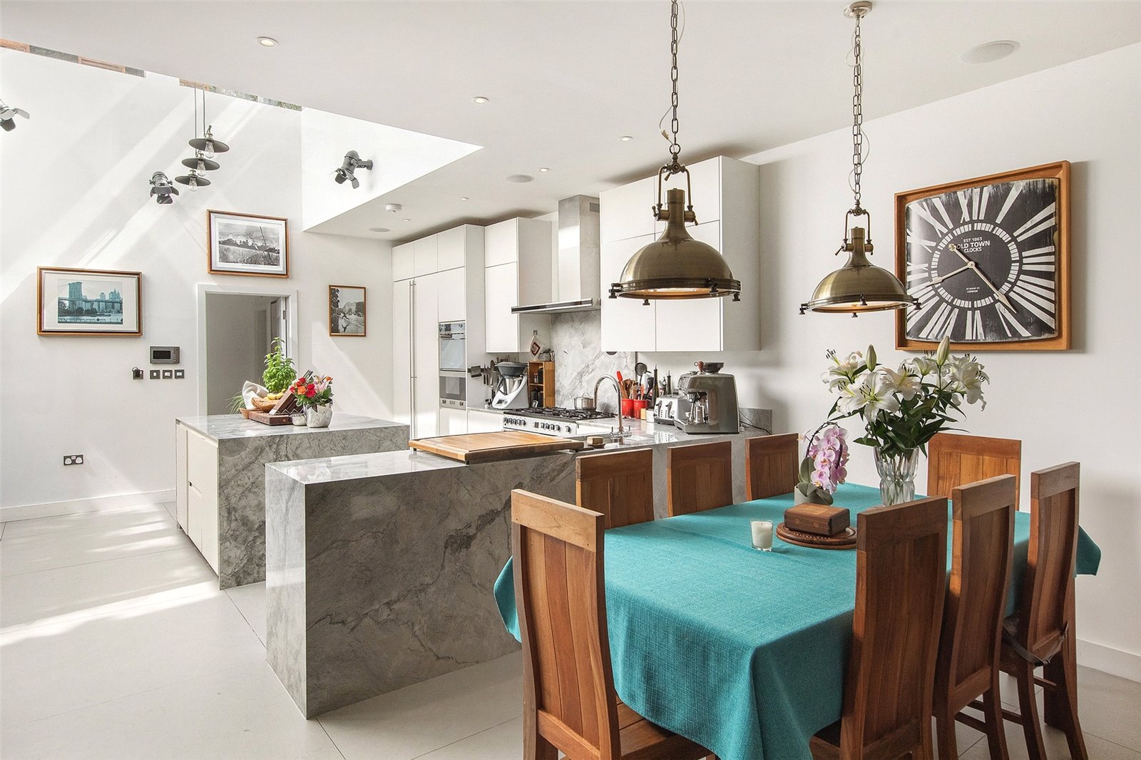 A truly exceptional five-bedroom modern home spanning over 3300 square feet, positioned off a quiet and secluded premier road in West Hampstead. The house has been subject to an impeccable, architecturally designed renovation, coupling meticulous details with careful modern touches. The works saw the addition of a large basement that now hosts an impressive wine cellar, sauna, and gym studio as well as a modern kitchen, flooded with an abundance of natural light. The rear extension provides full views of the garden and a unique feeling of space which needs to be viewed to be truly appreciated.